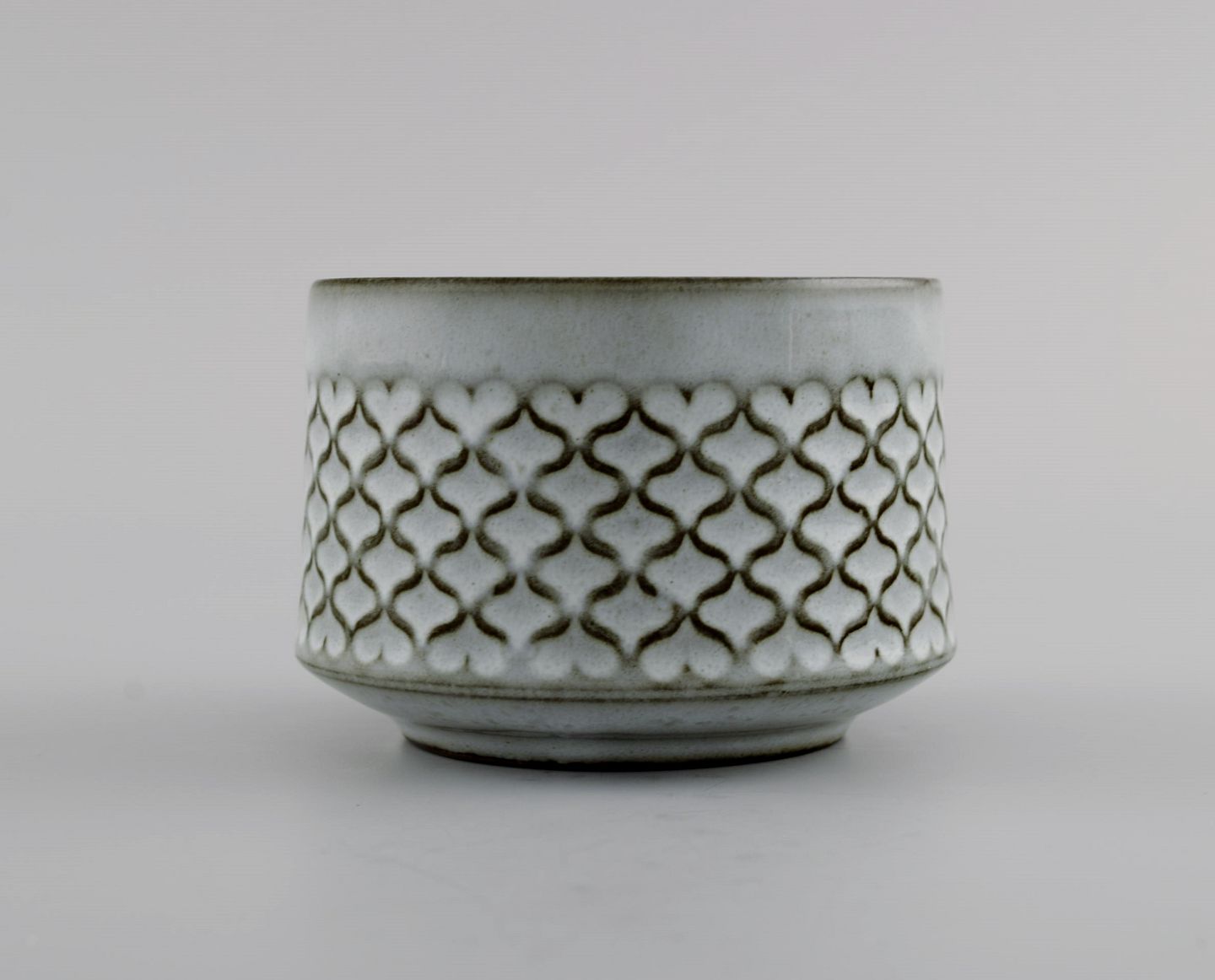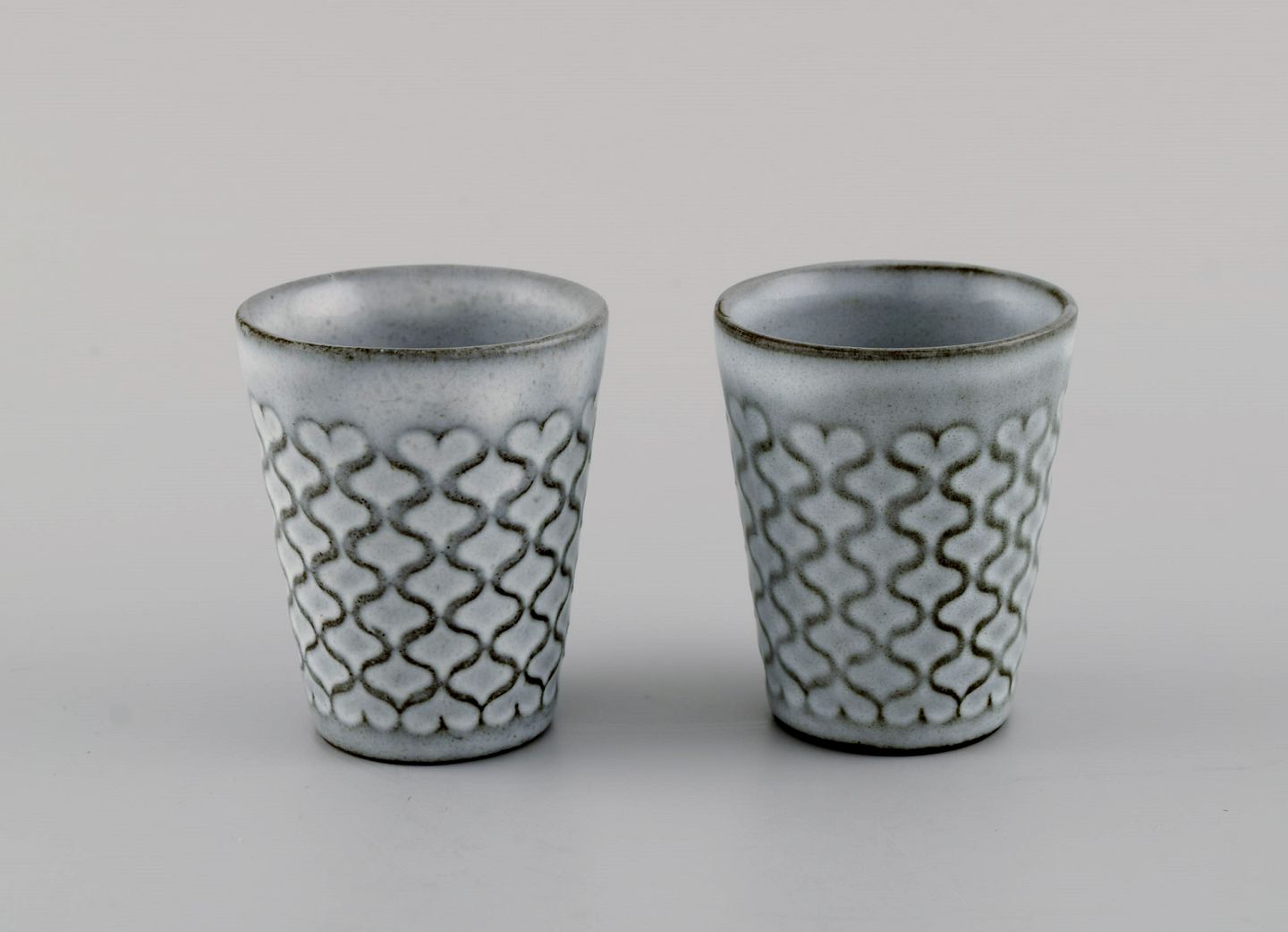 Jens H. Quistgaard (1919-2008) for Bing & Grøndahl / Nissen Kronjyden. Six parts Gray Cordial in glazed stoneware. 1960s.
