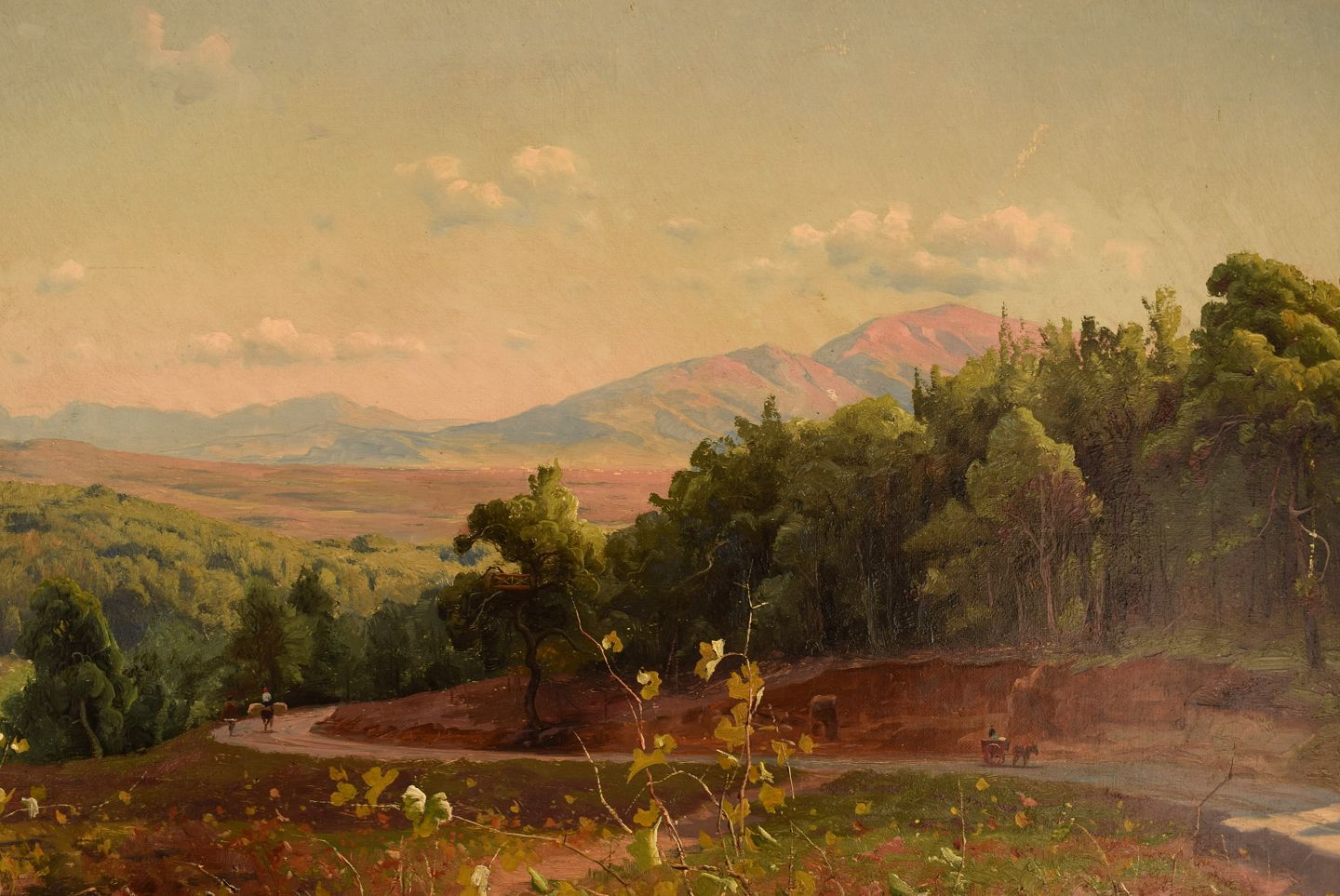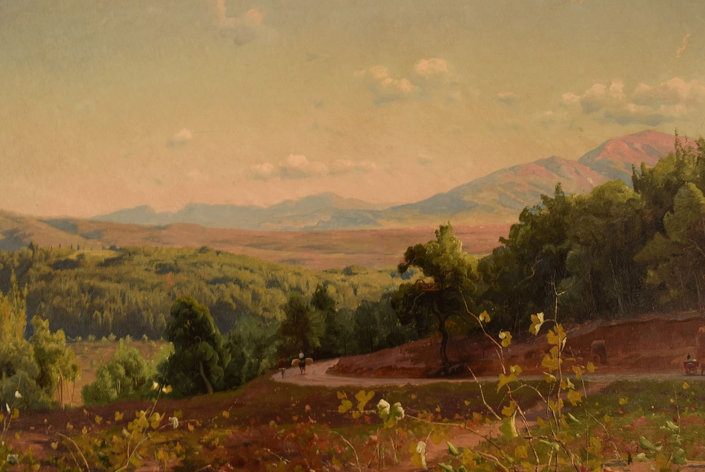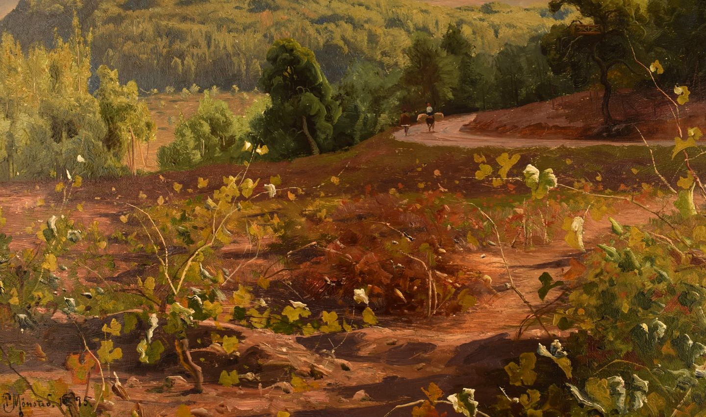 Peder Mörk Mønsted (1859-1941), Danmark. Olie på lærred. Italiensk landskab. Æselkærre på bjergvej. Dateret 1895.