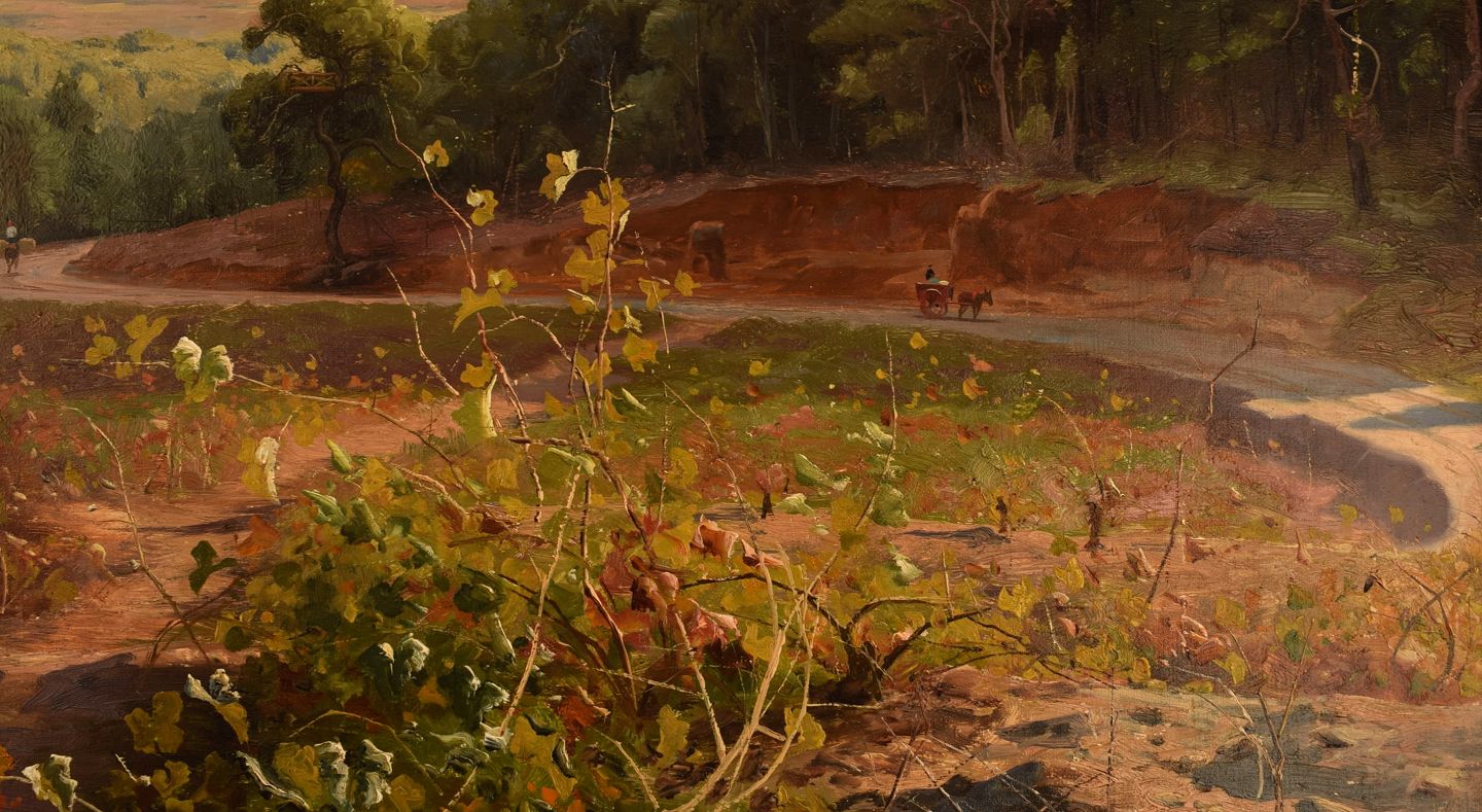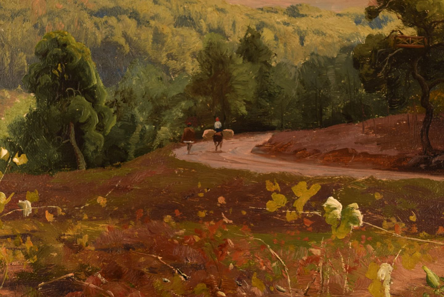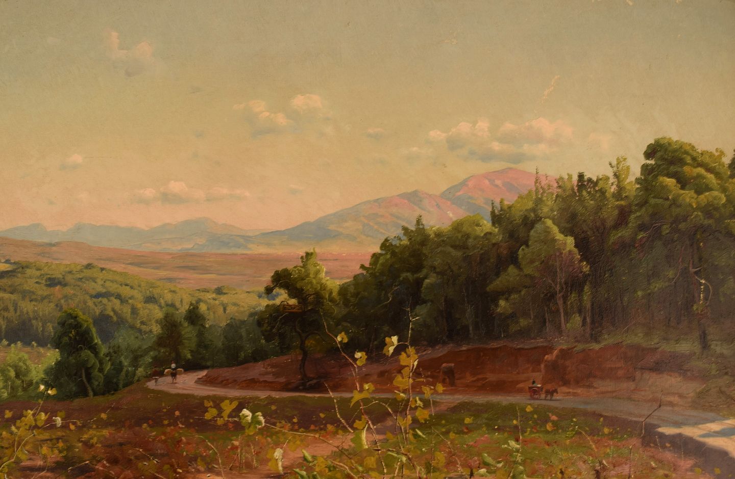 Peder Mörk Mønsted (1859-1941), Danmark. Olie på lærred. Italiensk landskab. Æselkærre på bjergvej. Dateret 1895.