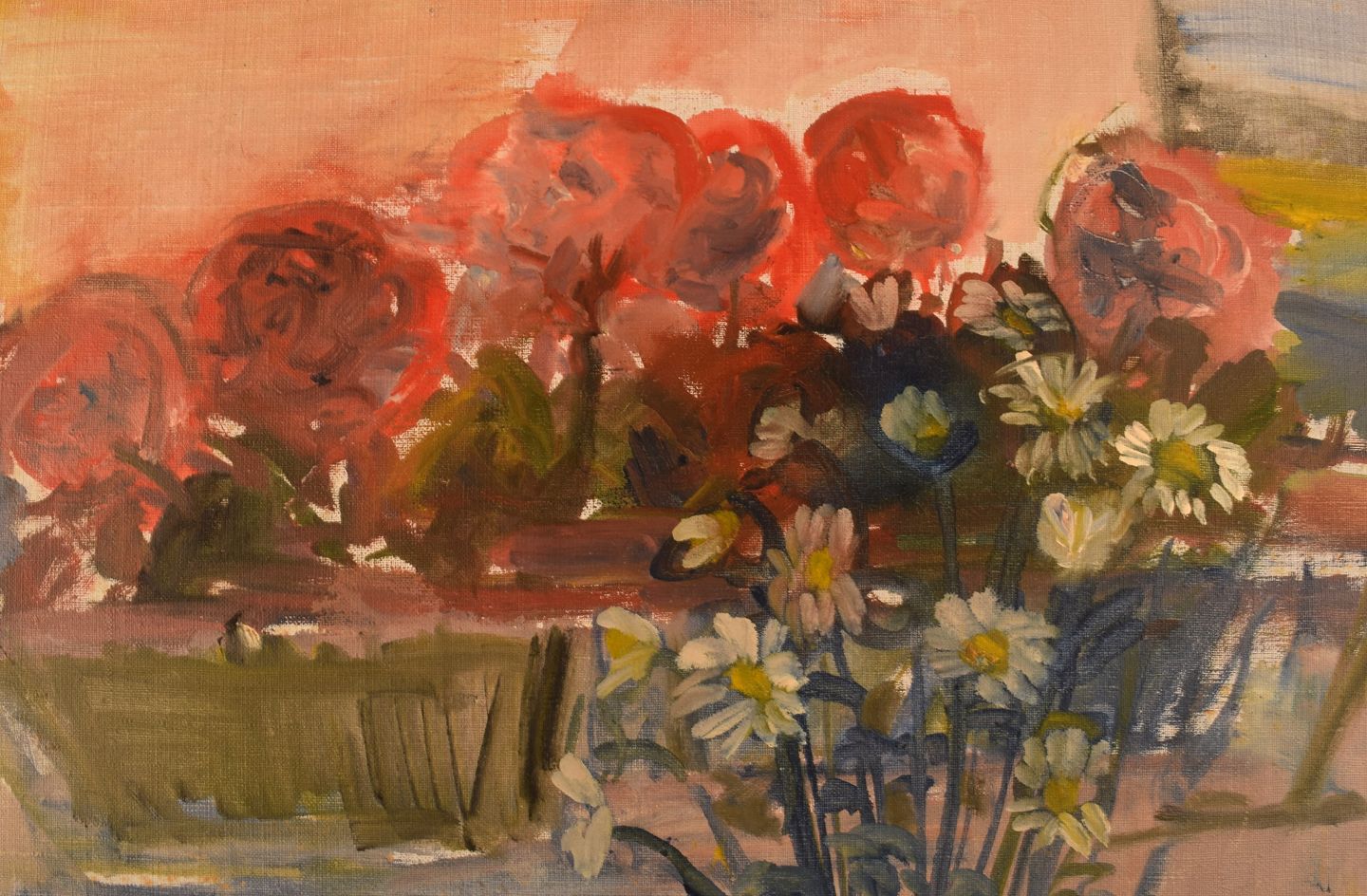 Arthur Y. Nilsson (f. 1923), svensk kunstner. Olie på lærred. Opstilling med blomster. Midt 1900-tallet.