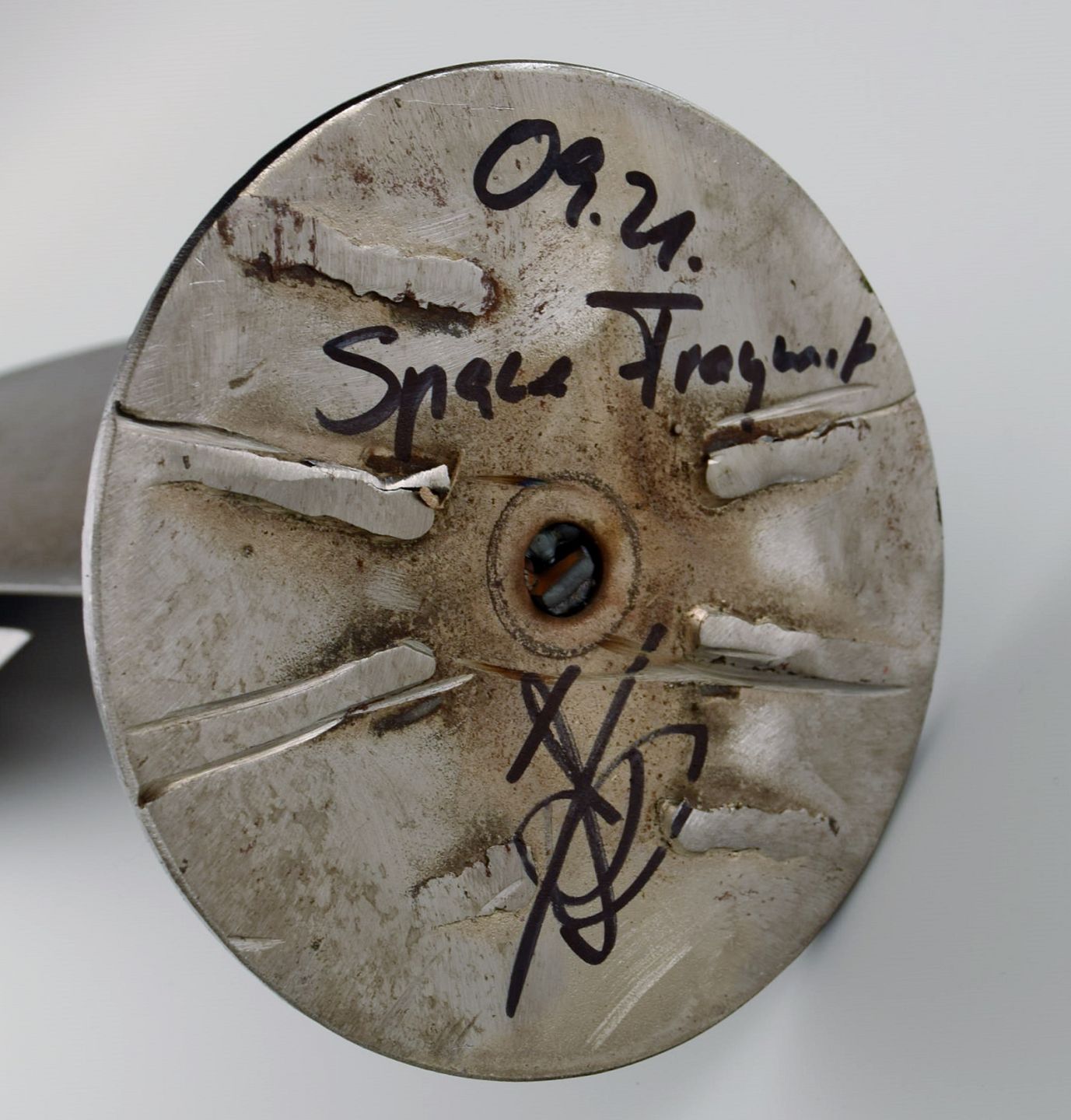 Andreas Brüggemann (f. 1983), tysk upcycling samtidskunstner. Kolossal skulptur i stål. "Space fragment". Dateret 2021. Måler: 61 x 16 cm. I flot stand. Signeret og dateret.