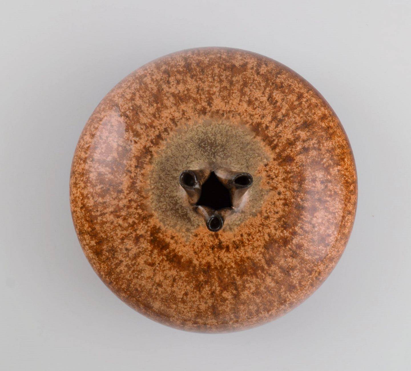 Körting Ceramics. Round unique vase in glazed stoneware. Beautiful glaze in reddish brown shades. Germany, mid-20th century.