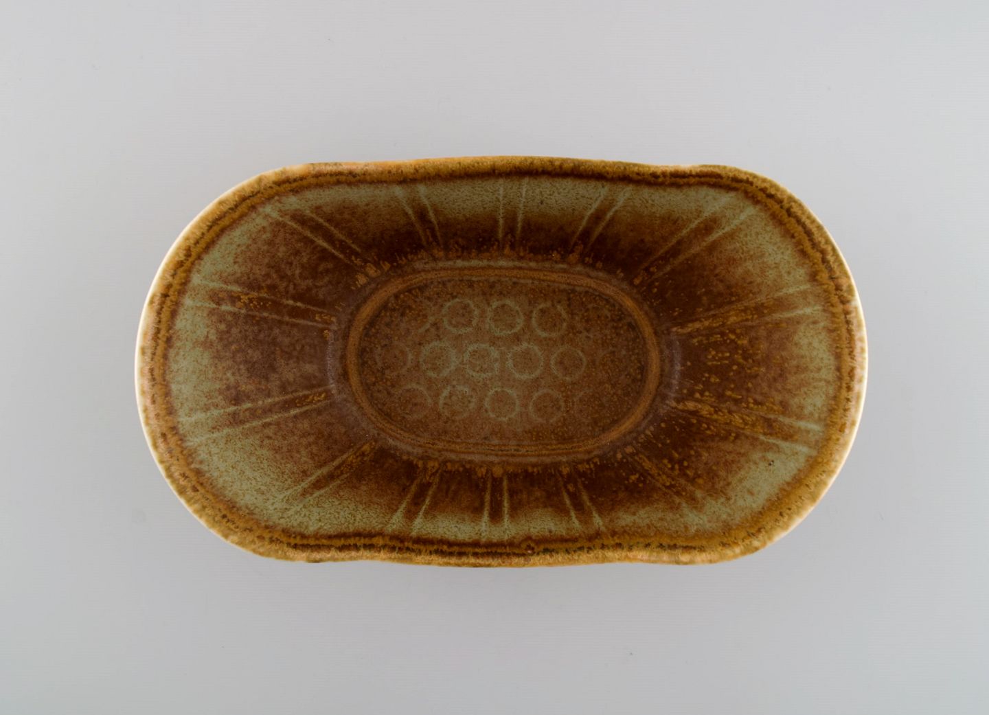 Gunnar Nylund (1904-1997) for Rörstrand. Skål i glaseret keramik. Smuk glasur i jordnuancer. Midt 1900-tallet. Måler: 19 x 6,5 cm. I flot stand. Signeret. 1. Sortering.