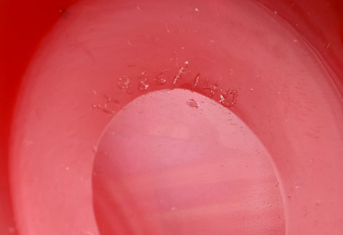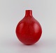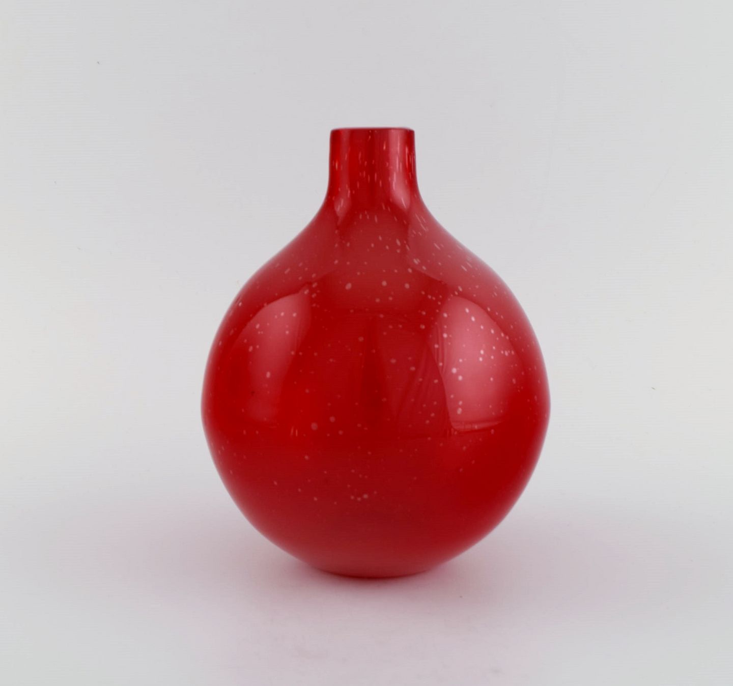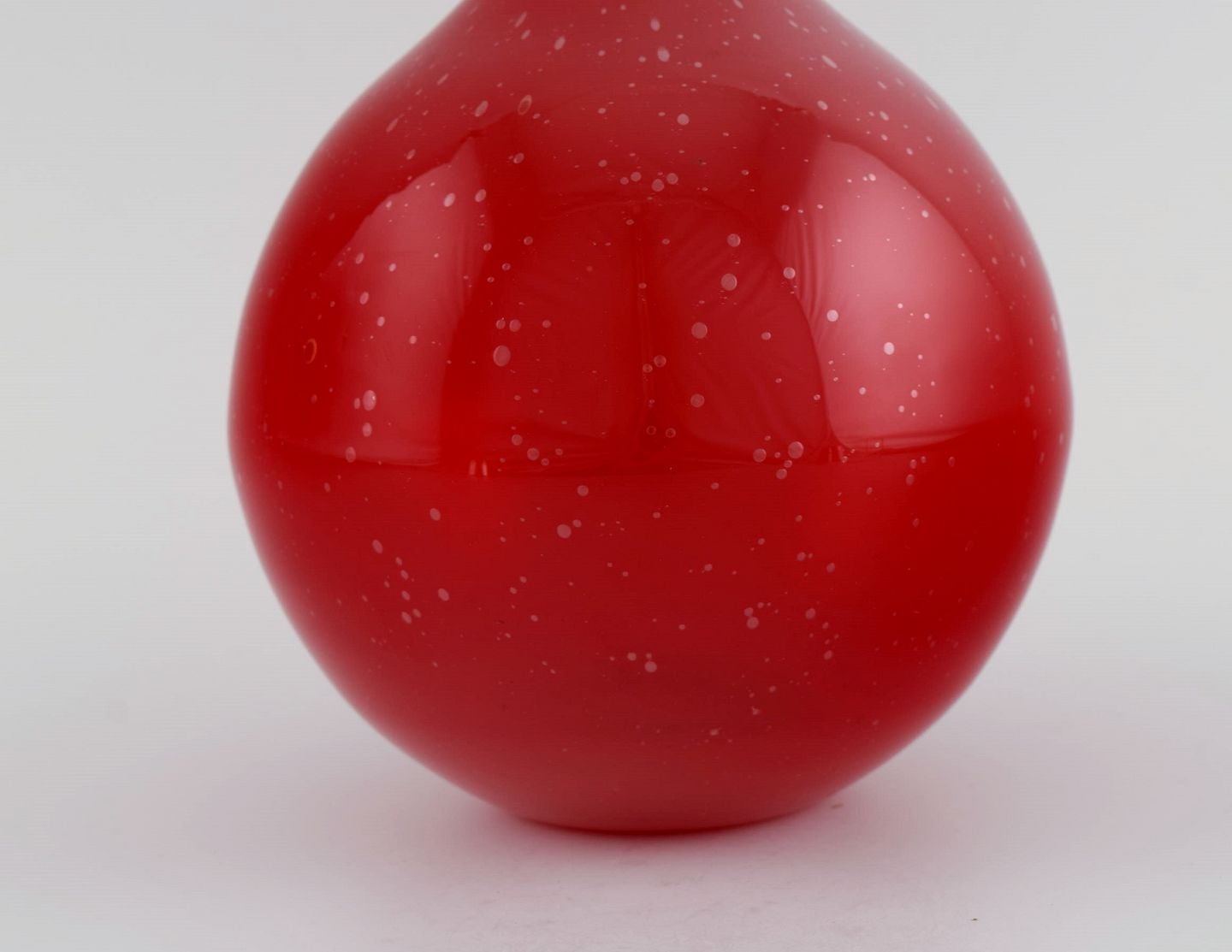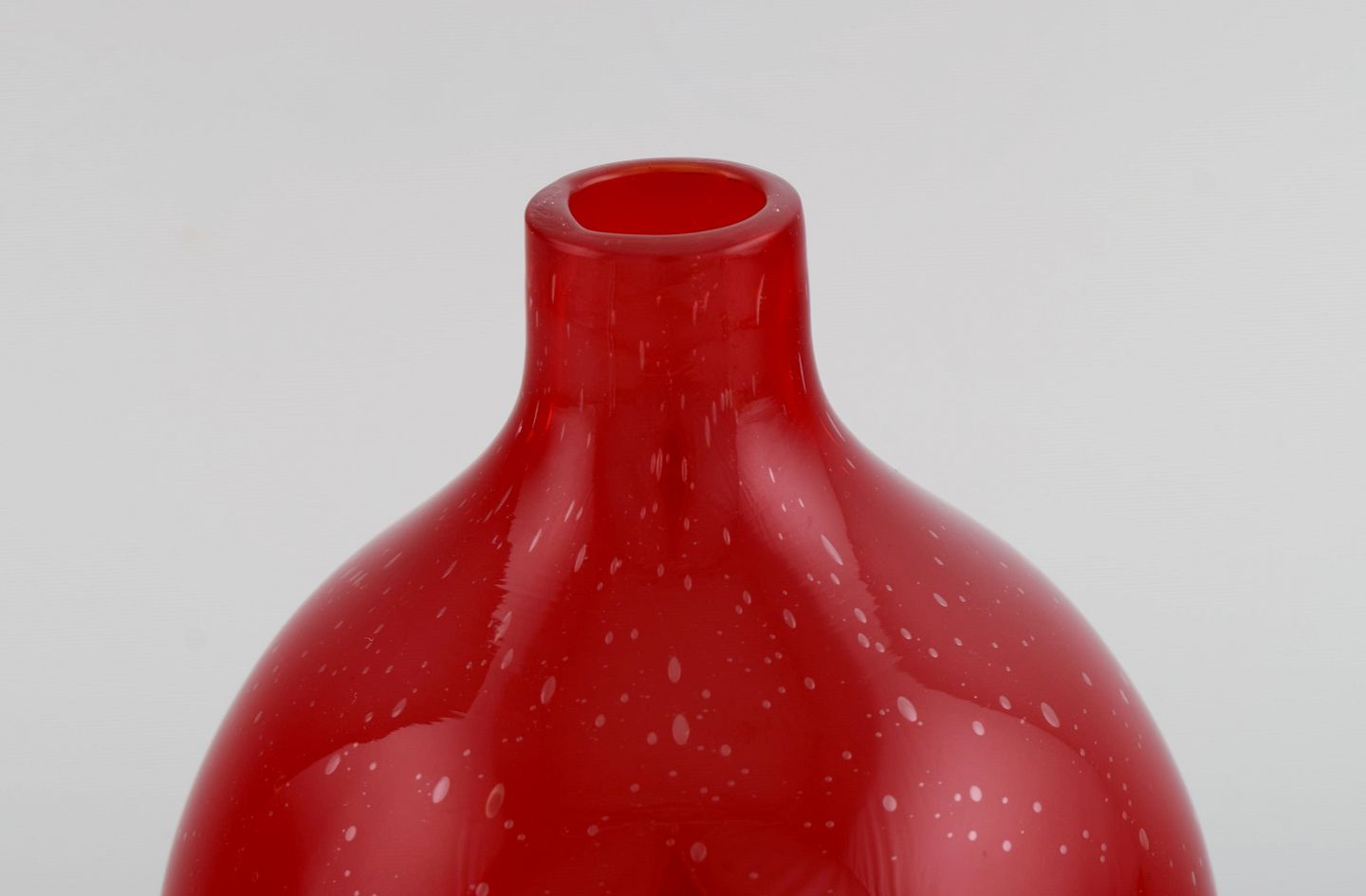 Scandinavian glass artist. Unique vase in red mouth-blown art glass with inlaid bubbles. Late 20th century. Measures: 17 x 14 cm. In excellent condition. Signed and numbered.