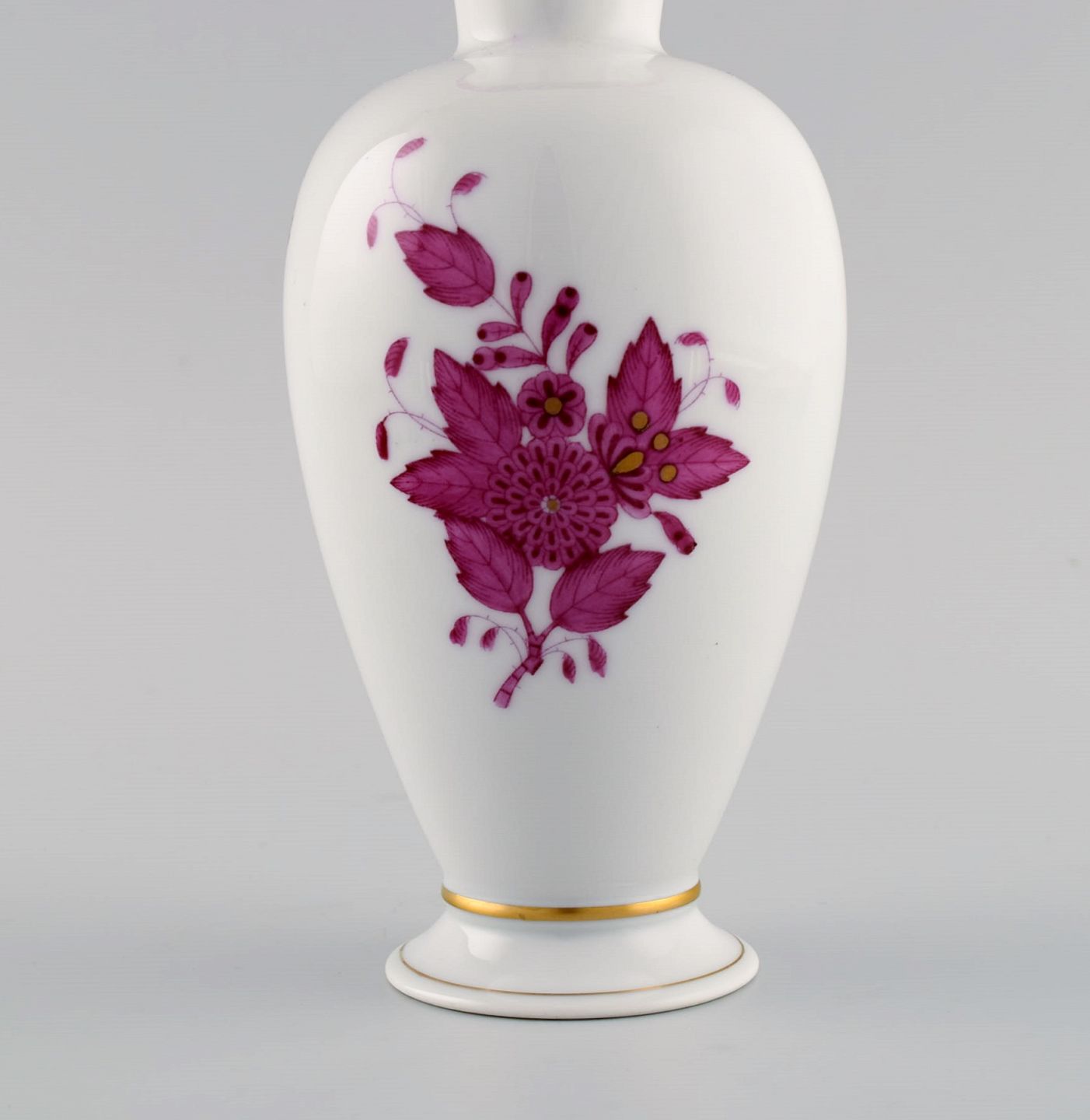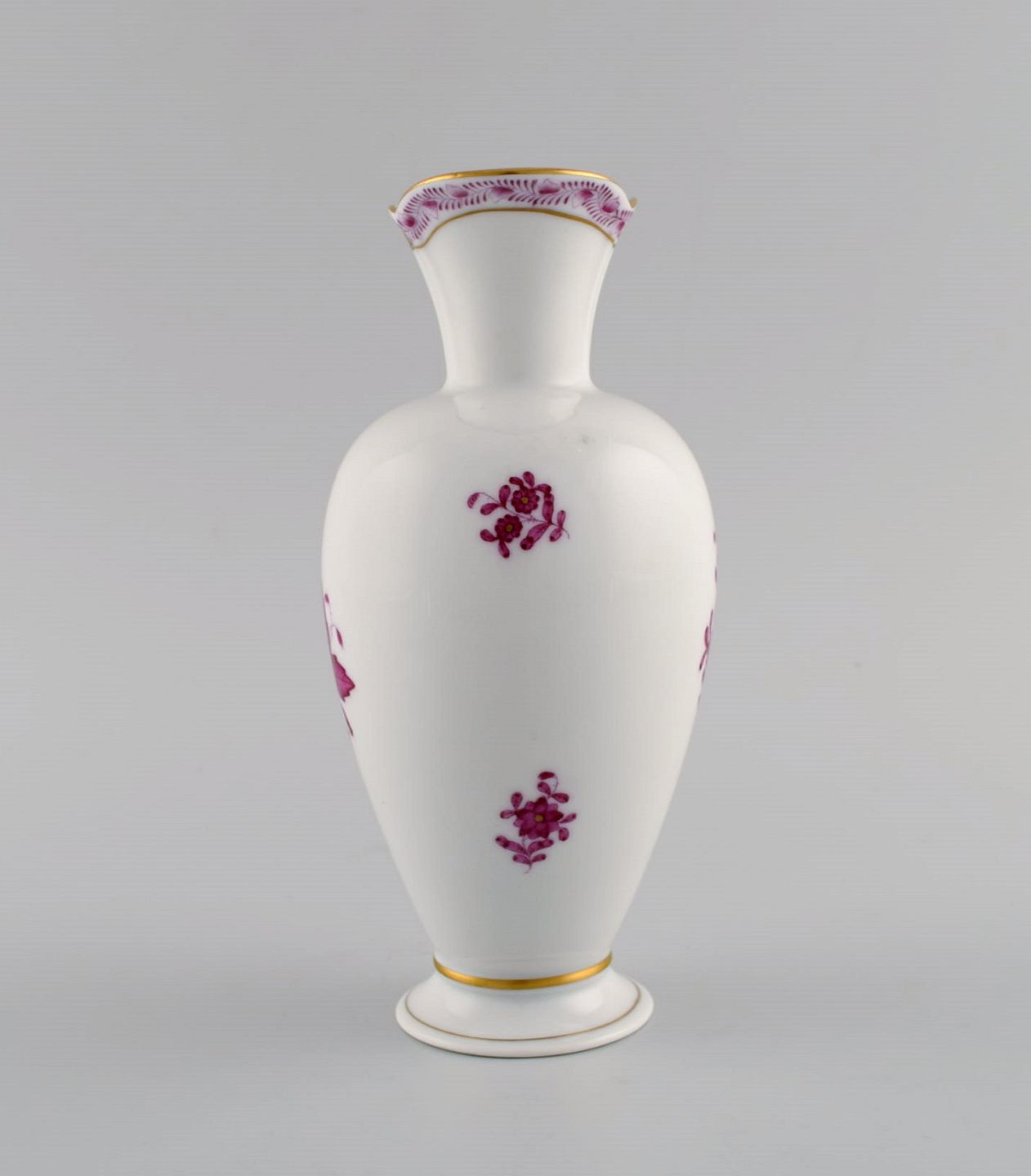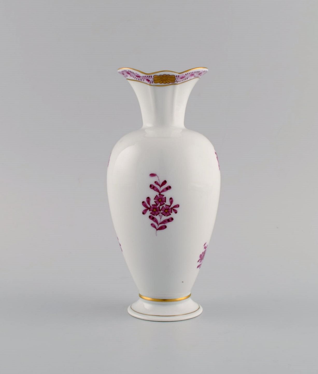 Herend Chinese Bouquet Raspberry vase in hand-painted porcelain. Pink flowers and gold decoration. Mid-20th century. Measures: 19 x 9 cm. In excellent condition. Stamped.