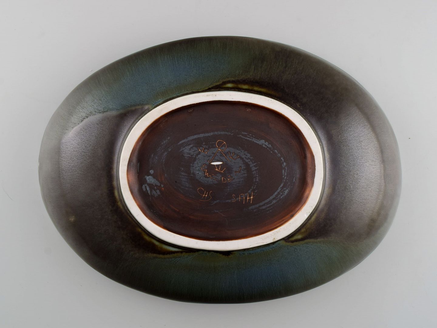 Carl Harry Stålhane (1920-1990) for Rörstrand. Organisk formet skål i glaseret keramik. Smuk glasur i brune nuancer. Midt 1900-tallet. Måler: 28 x 7 cm. I flot stand. Stemplet. 2. Sortering.