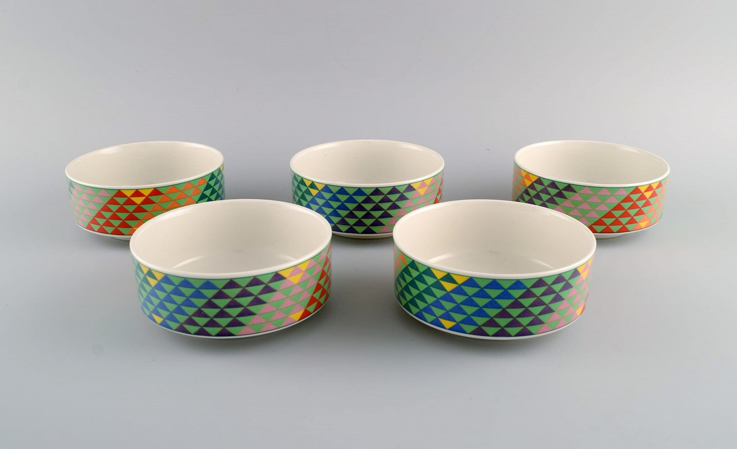 Gallo Design, Tyskland. Fem Pamplona porcelænsskåel. Farverig dekoration. Sent 1900-tallet. Måler: 12 x 5,3 cm. I flot stand. Stemplet.