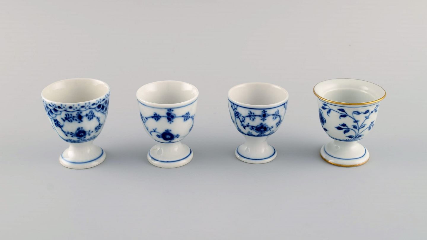 Royal Copenhagen og Bing & Grøndahl. Fire æggebægre i håndmalet porcelæn. 1920/30'erne. Største måler: 6,2 x 5,5 cm. I flot stand. Stemplet. 1. Sortering.