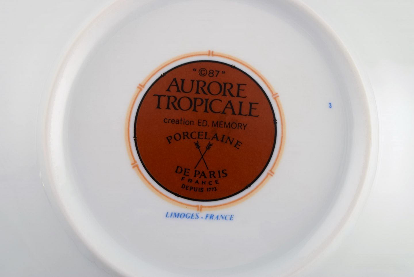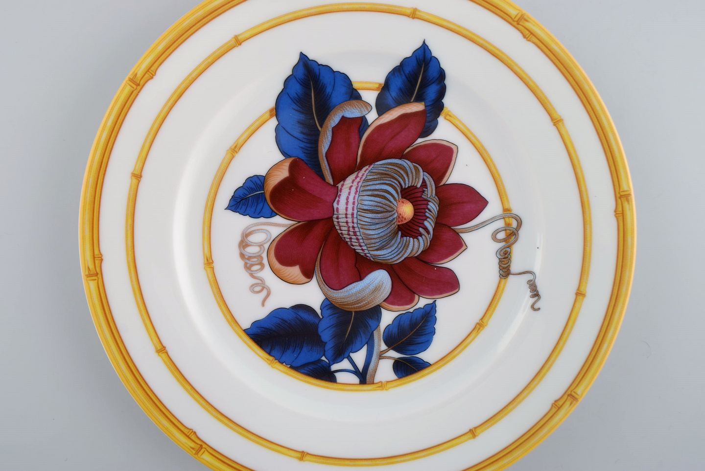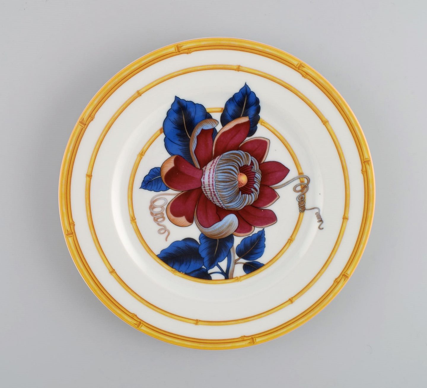 Porcelain of Paris. "Tropical Aurore". 12 porcelain lunch plates decorated with flowers and bamboo. 1980s. Diameter: 18.3 cm. In excellent condition. Stamped.