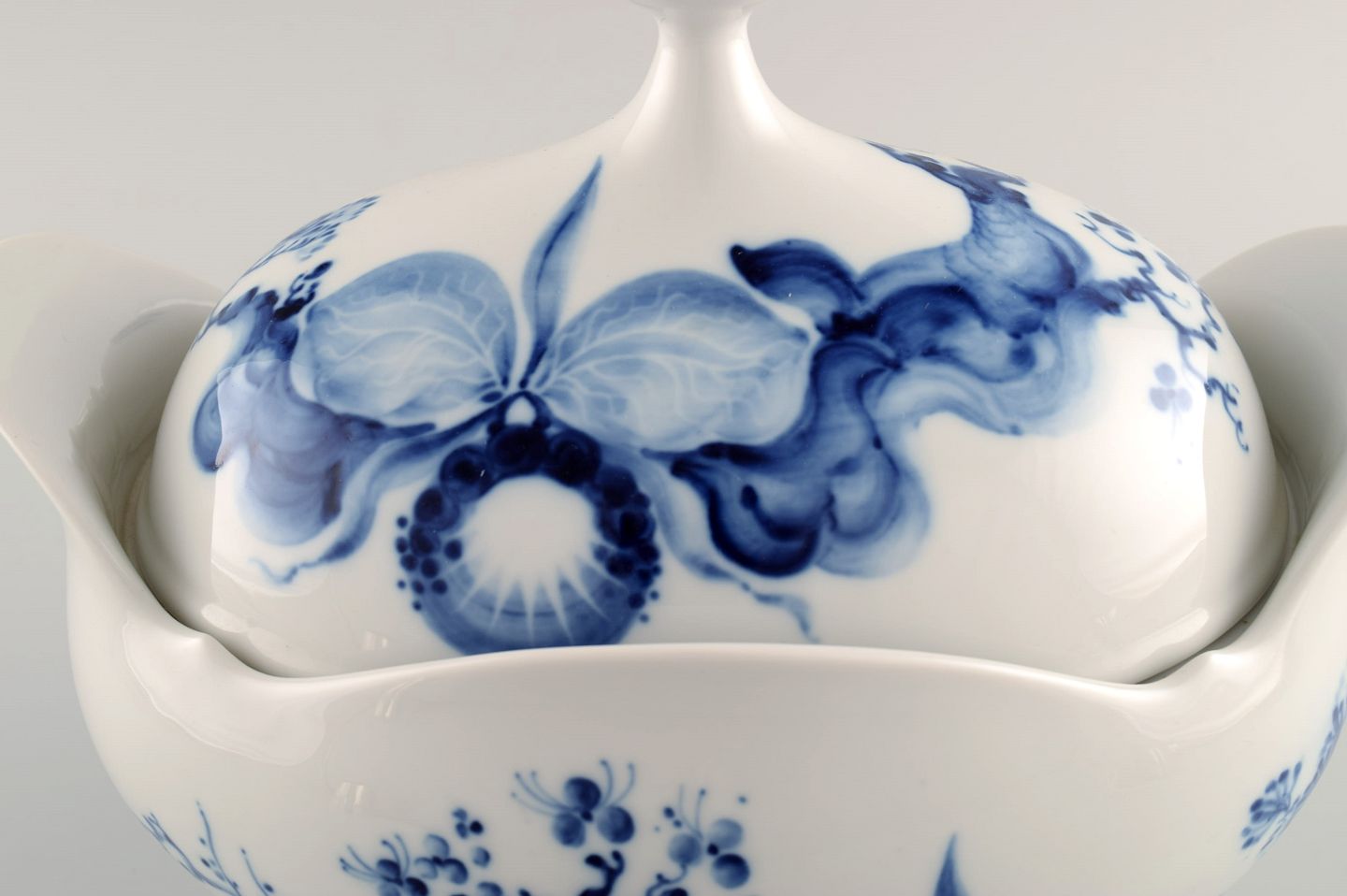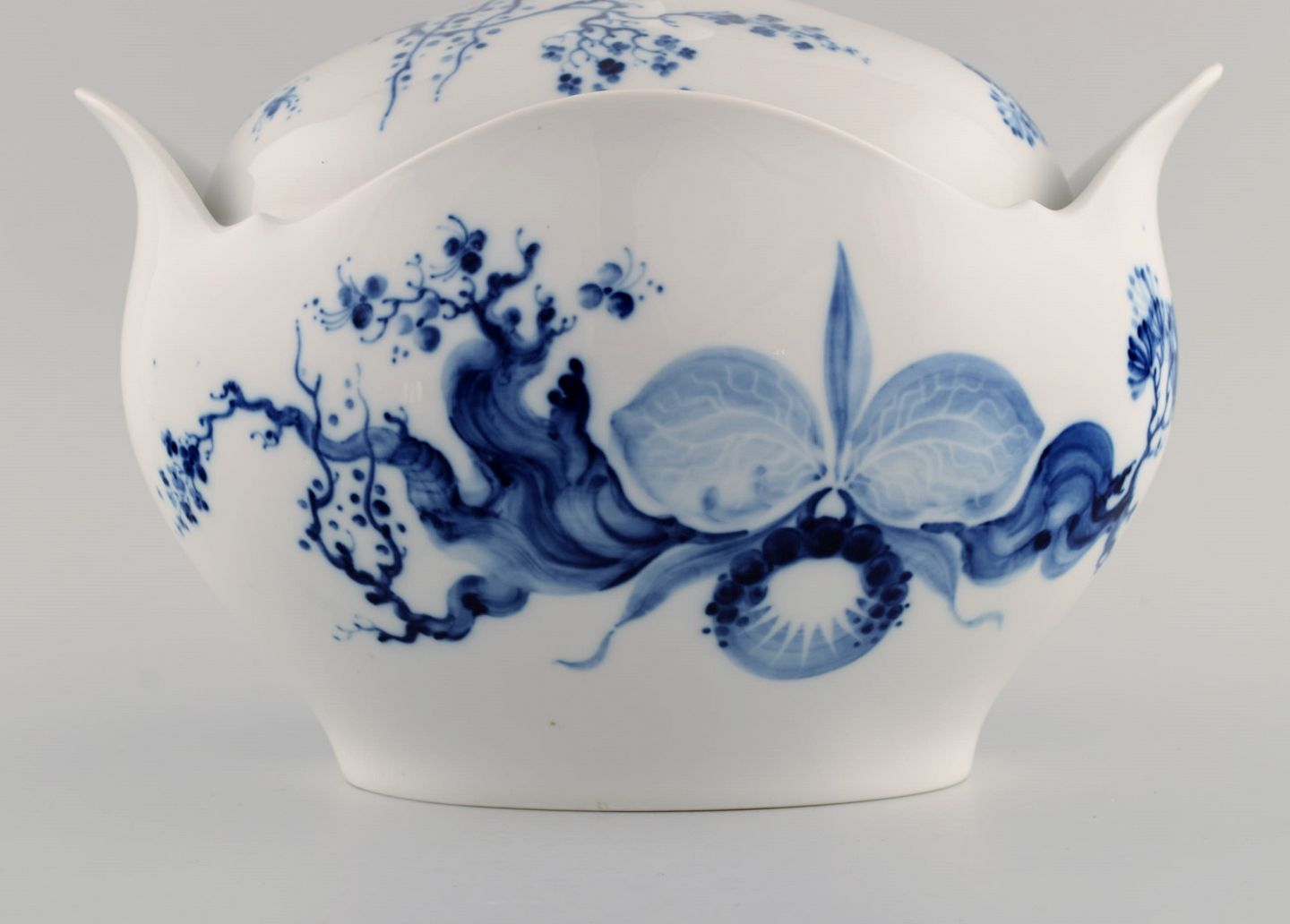Meissen Blue Orchid. Art deco soup tureen in hand-painted porcelain. Mid-20th century. Measures: 26 x 22 cm. In excellent condition Stamped. 1st factory quality.