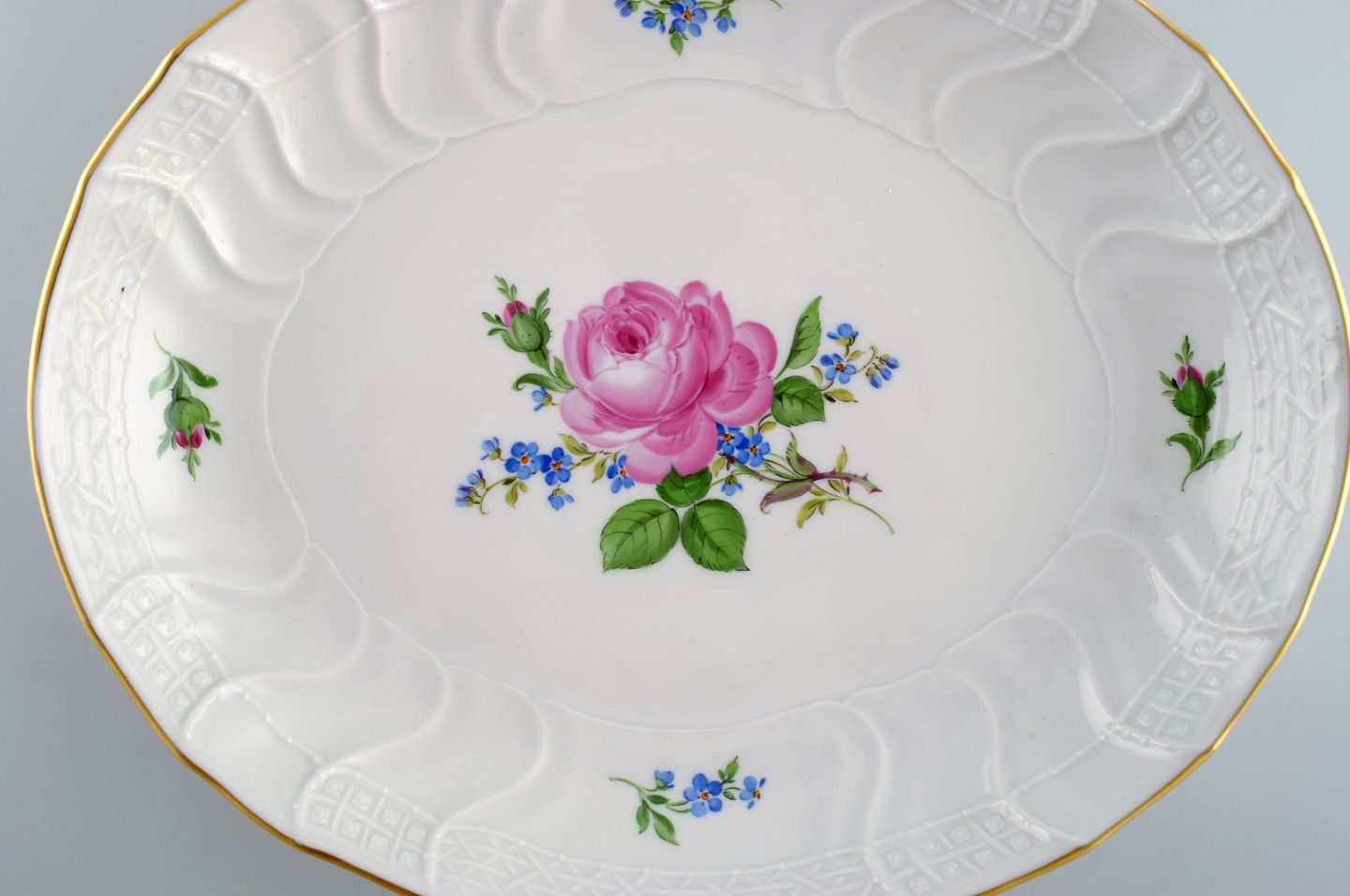 Oval Meissen Pink Rose bowl in hand-painted porcelain with gold edge. Early 20th century. Measures: 23.5 x 19.5 x 4 cm. In excellent condition. Stamped. 1st factory quality.
