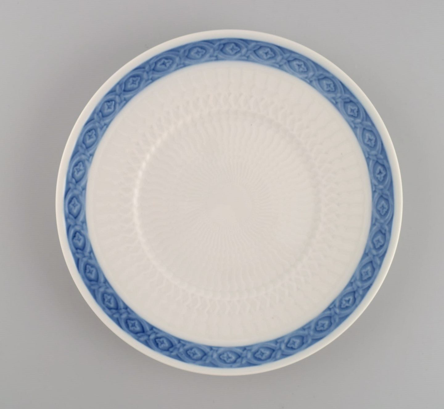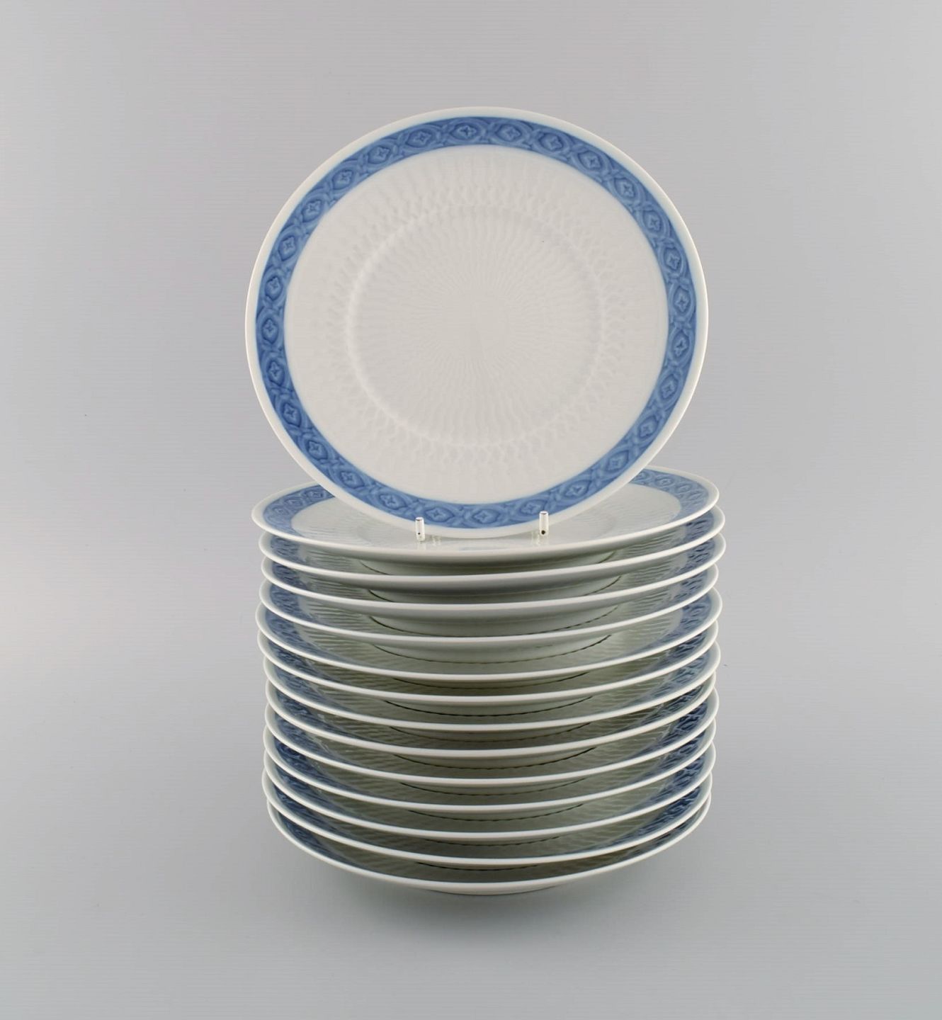 14 Royal Copenhagen Blå Vifte frokosttallerkener. 1960/70'erne. Modelnummer 1212/11521. Designet af Arnold Krog i 1909. Diameter: 20 cm. I flot stand. Stemplet. 1. Sortering.