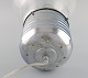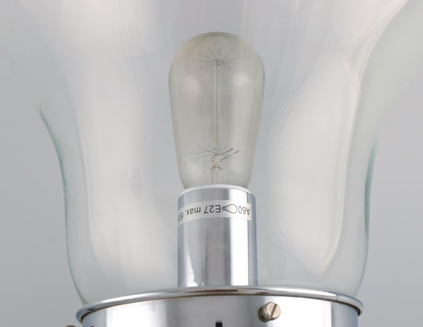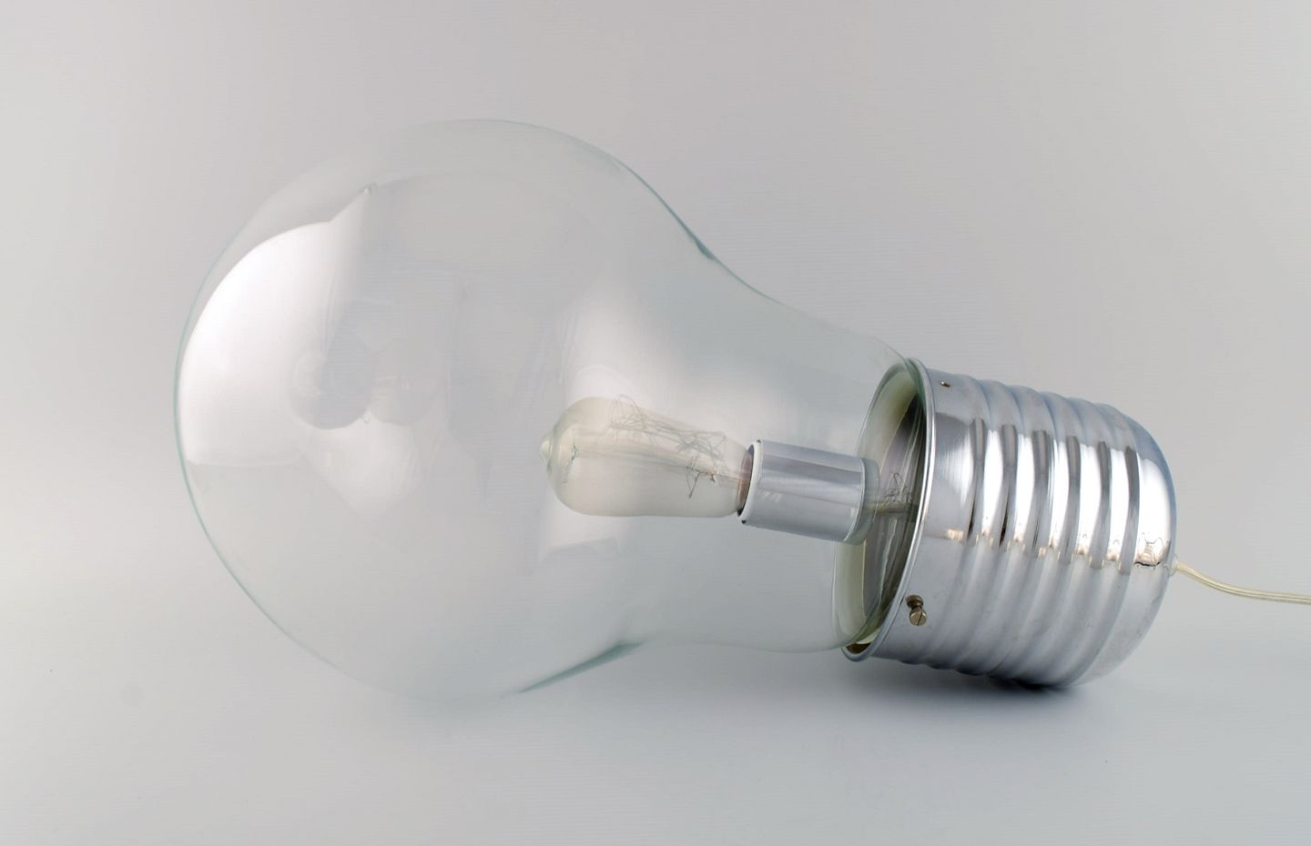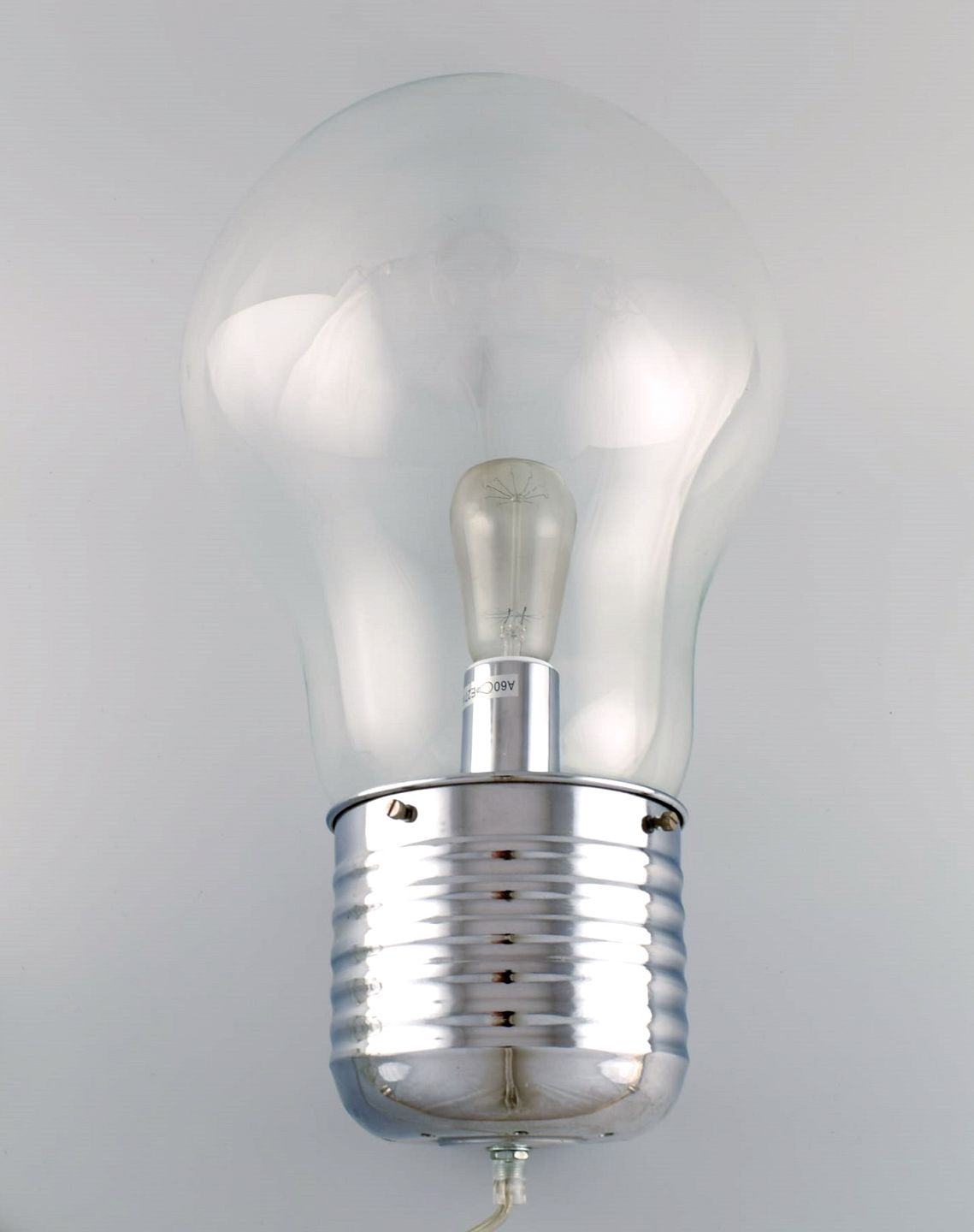 Elpære formet gulvlampe i glas og forkromet metal. Ingo Maurer stil. Sent 1900-tallet. Måler: 49 x 25 cm. I flot stand.