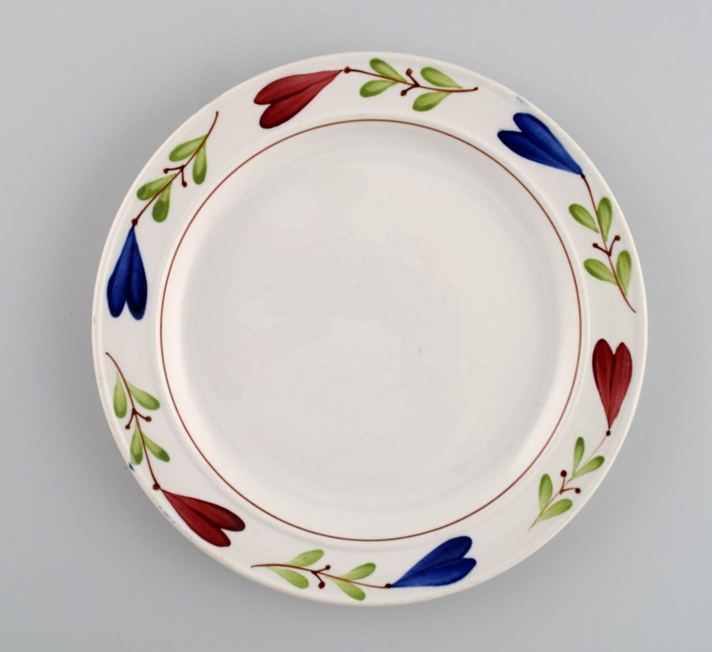 Stig Lindberg (1916-1982) for Gustavsberg. Tre Ranka porcelænstallerkener med håndmalede blomster og bladværk. Midt 1900-tallet. Diameter: 17,5 cm. I flot stand. Signeret.