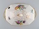 Royal Copenhagen Saksisk Blomst speciel version. Stor og sjælden lågterrin med underfad. Låg og hanke modelleret som bladværk. Håndmalede blomster og gulddekoration. Ca. 1900.