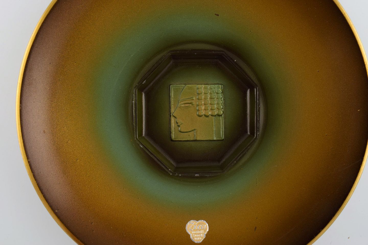 Zicu, Sverige. To art deco fade / skåle i patineret metal med ansigter i relief. Midt 1900-tallet. Måler: 22 x 4 cm. I flot stand. Mærkat.