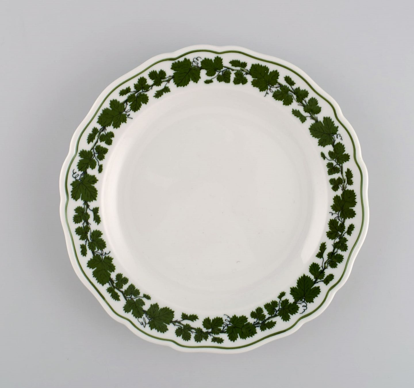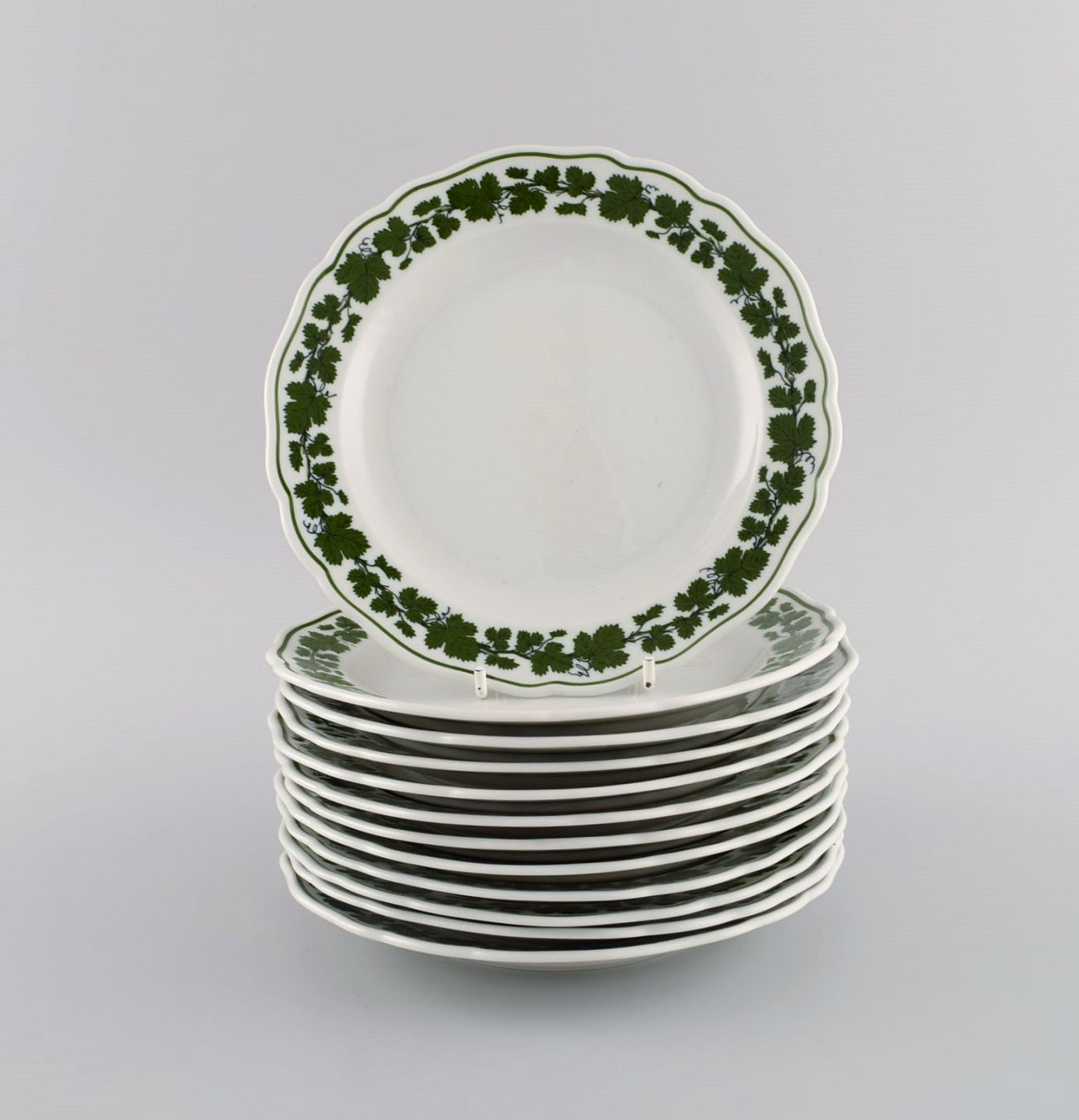 Tolv Meissen Green Ivy Vine tallerkener i håndmalet porcelæn. 1940'erne.