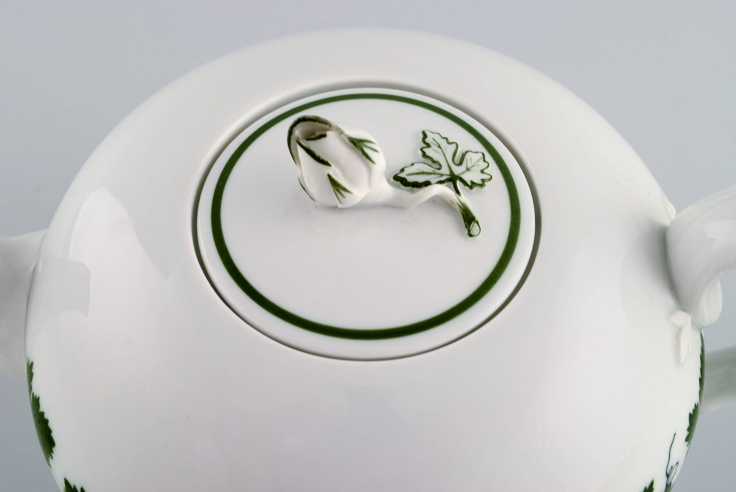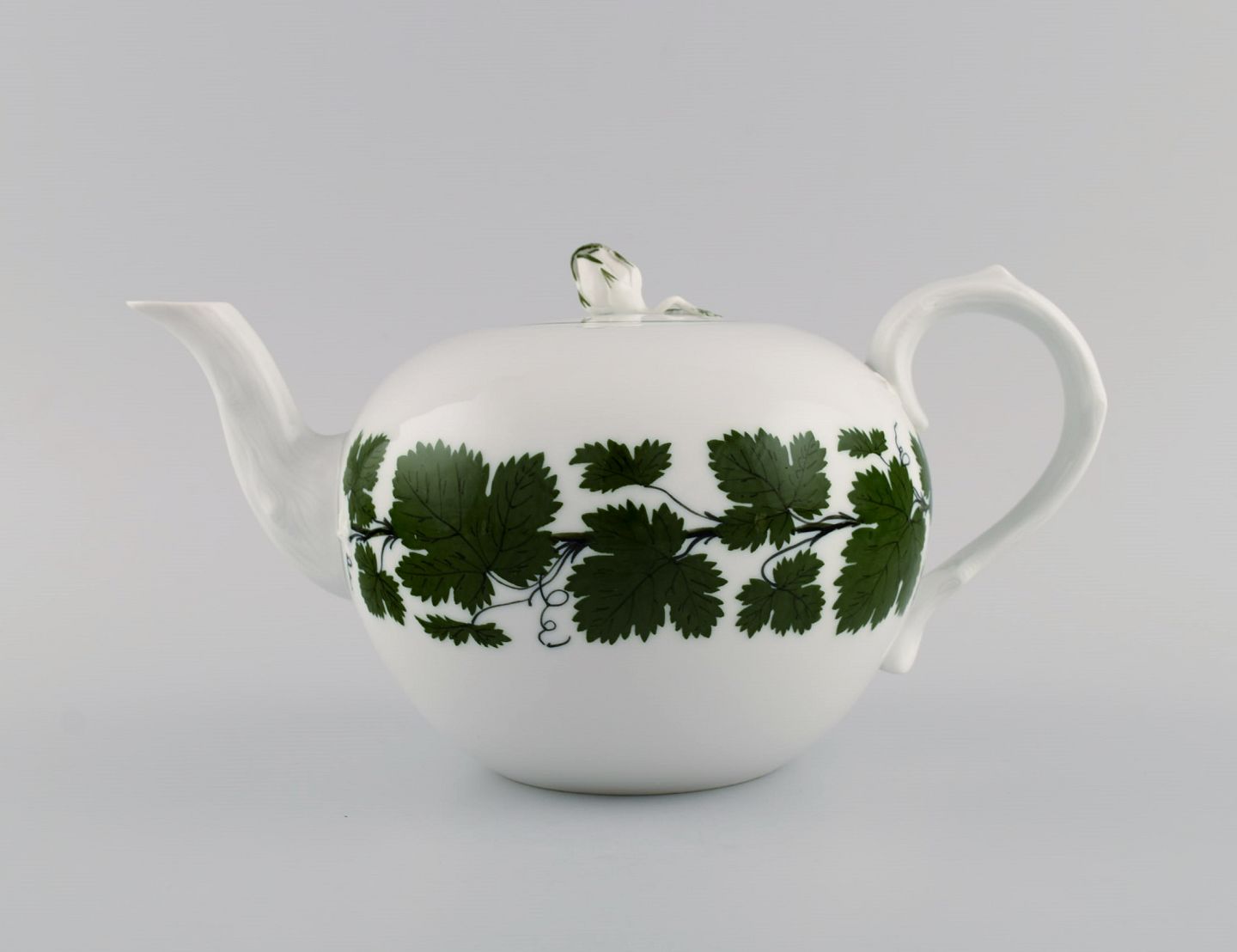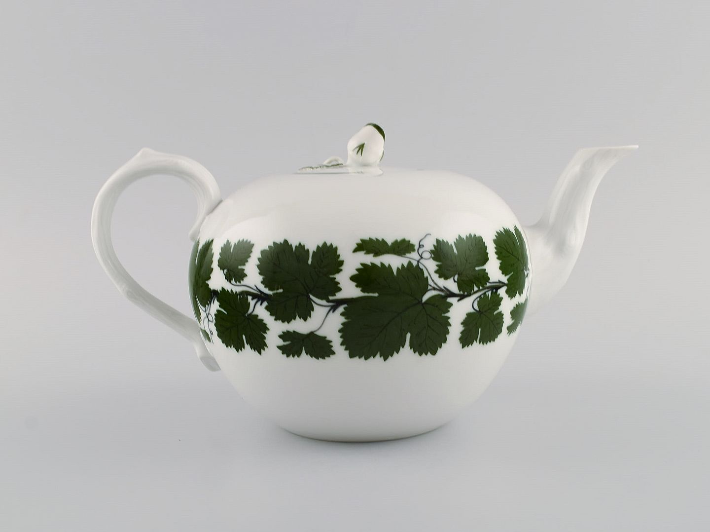 Meissen Green Ivy Vine tekande i håndmalet porcelæn. Låg modelleret med rosenknop. 1940'erne. Måler: 23 x 13 cm. I flot stand. Stemplet. 1. Sortering.