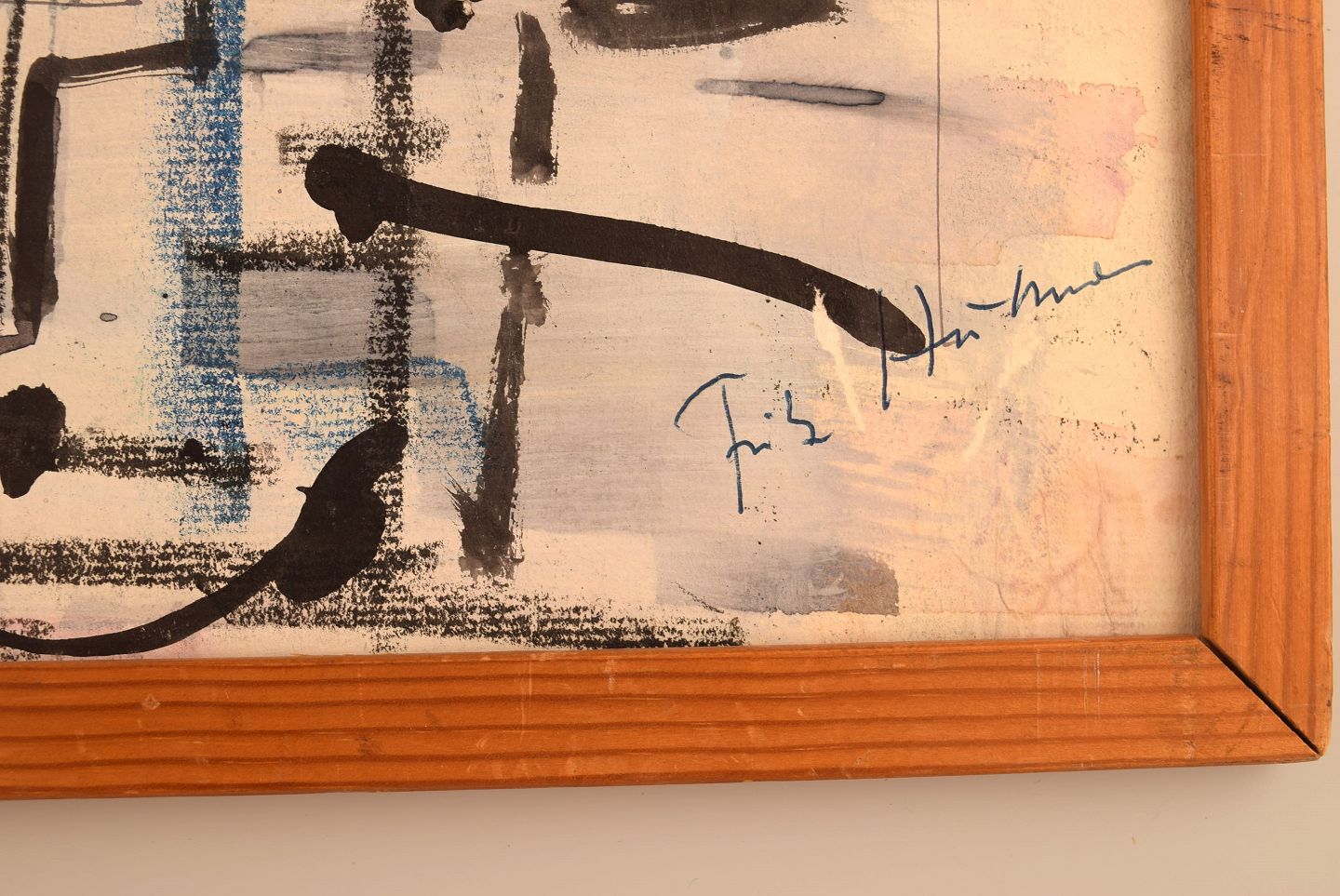 Fritz Huhnen (1895-1981), tysk kunstner. Mixed media på lærred. Fem personer. Midt 1900-tallet. Lærredet måler: 60 x 49 cm. Rammen måler: 1,5 cm. I flot stand. Signeret.