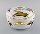 Royal Worcester, England. Stor Evesham lågterrin i porcelæn dekoreret med frugter og guldkant. 1980'erne. Måler: 25 x 13,5 cm. I flot stand. Stemplet.