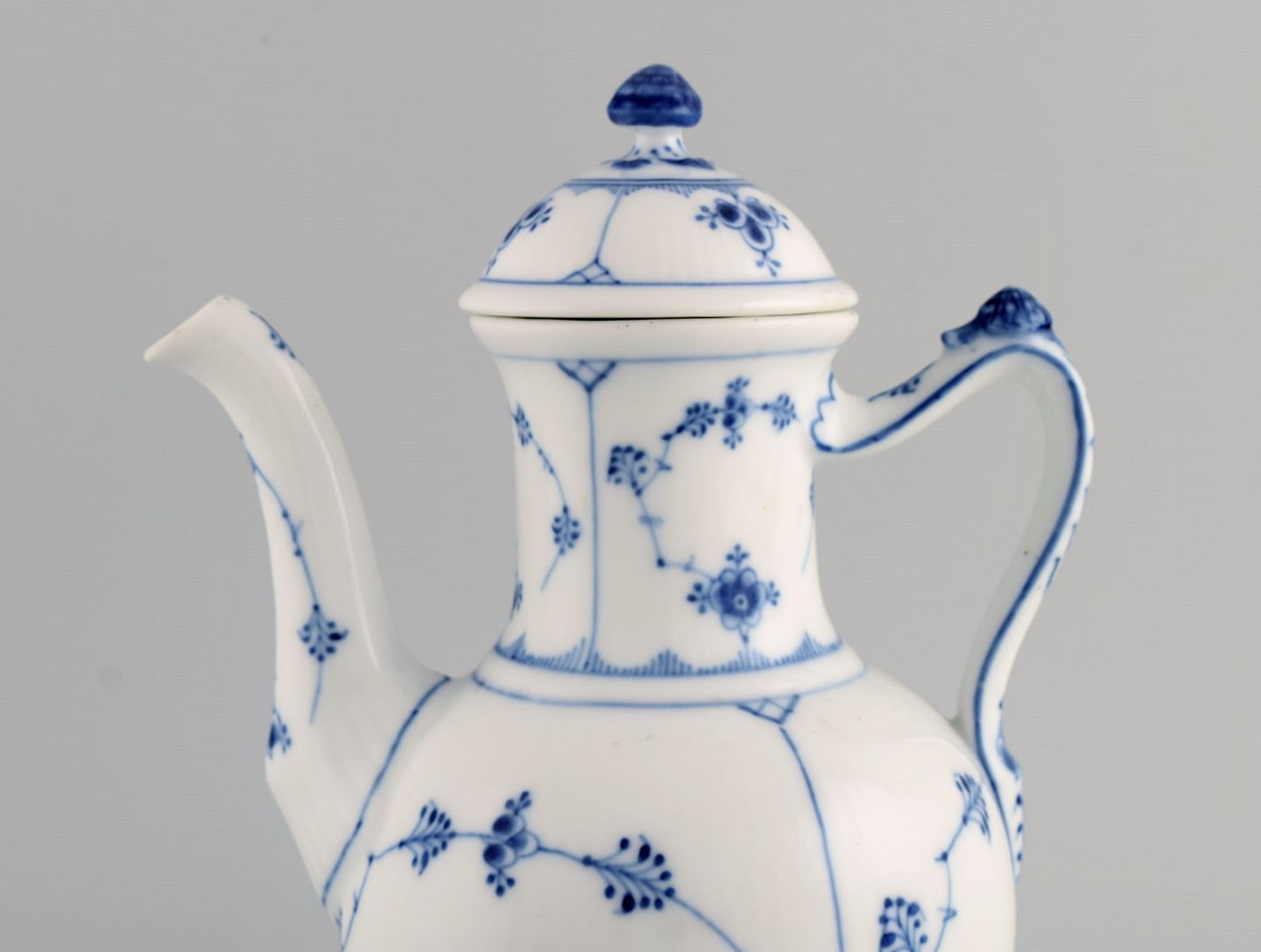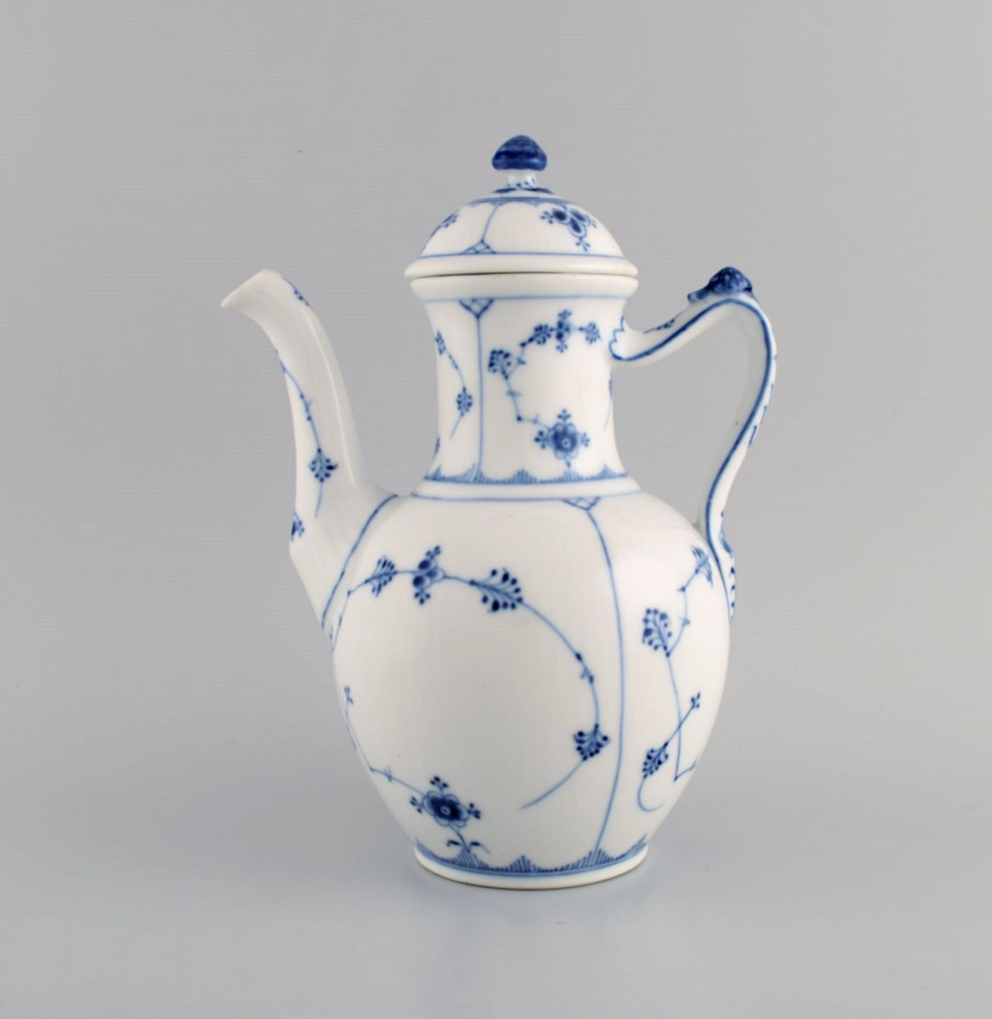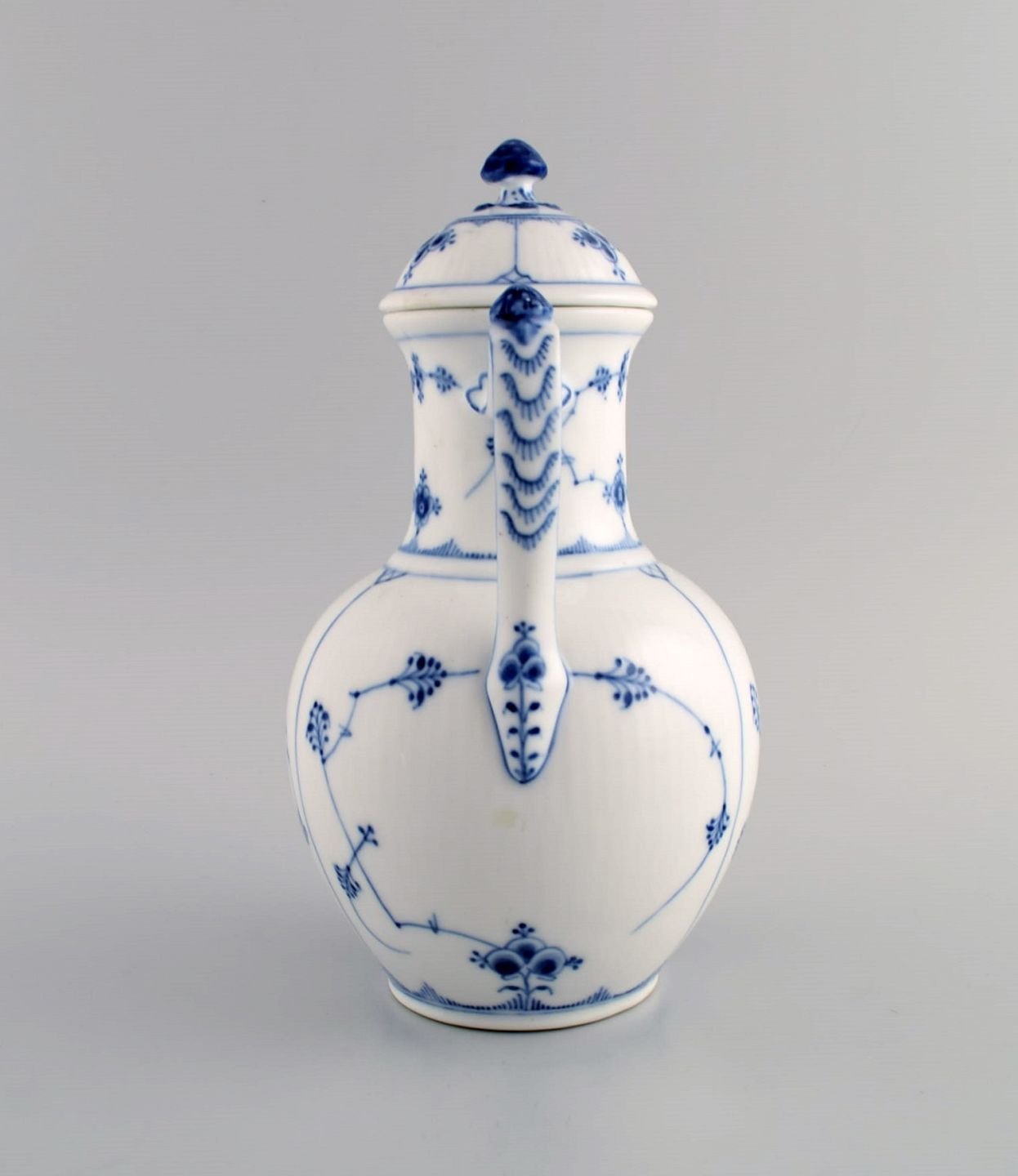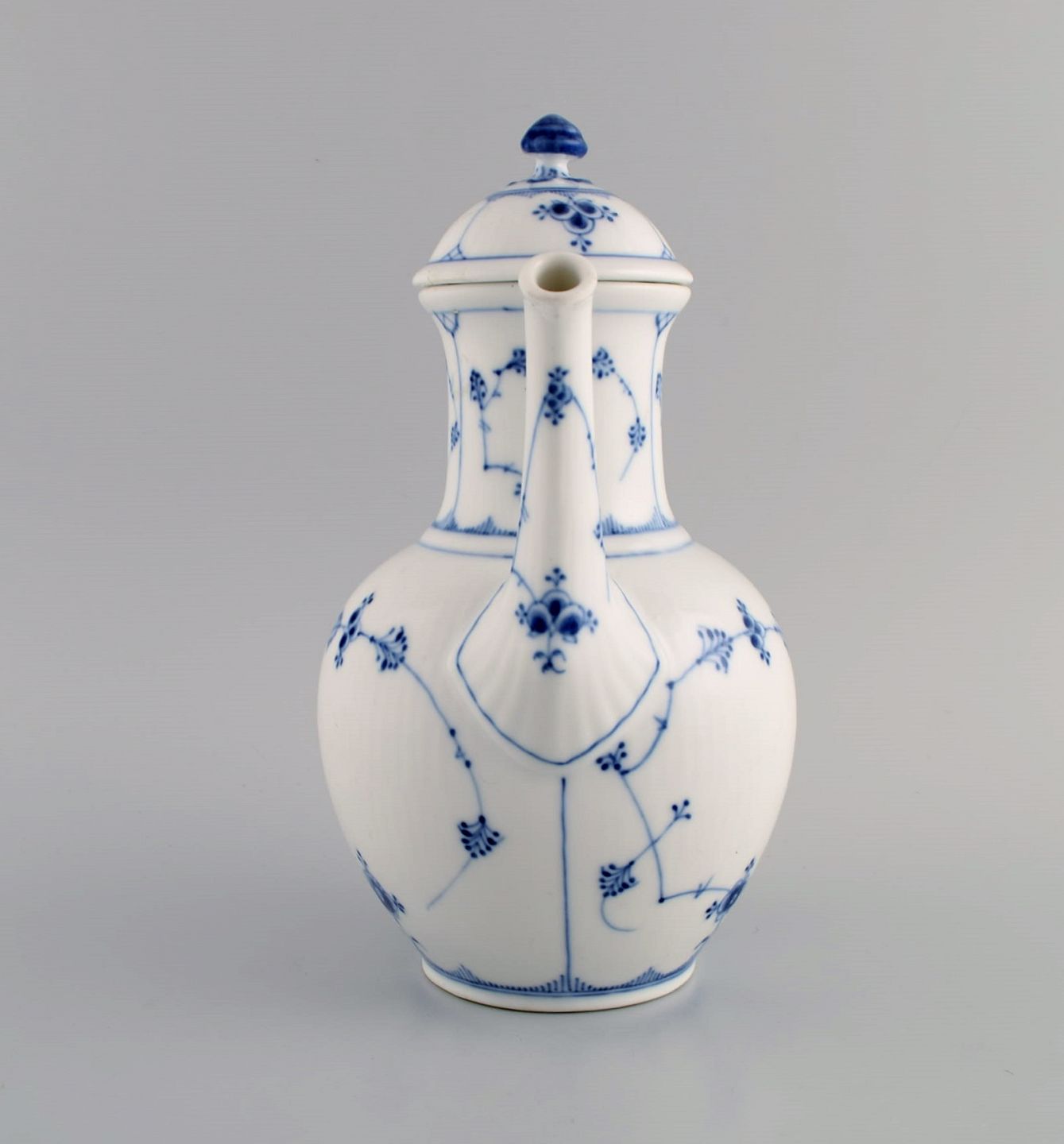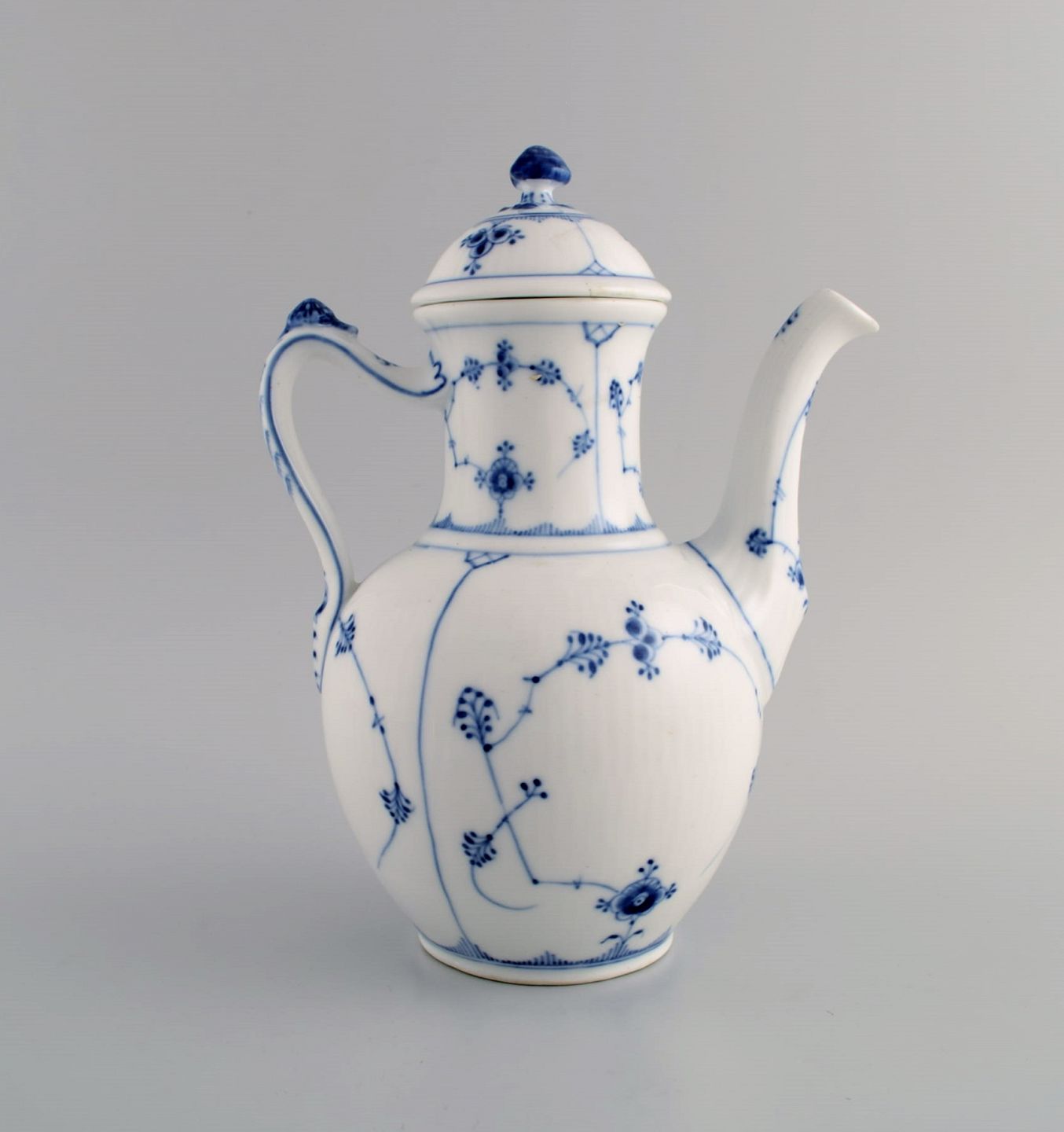 Antik Royal Copenhagen Musselmalet Riflet kaffekande. Modelnummer 1/48. Tidligt 1900-tallet. Måler: 24 x 18,5 cm. I flot stand. Stemplet. 1. Sortering.
