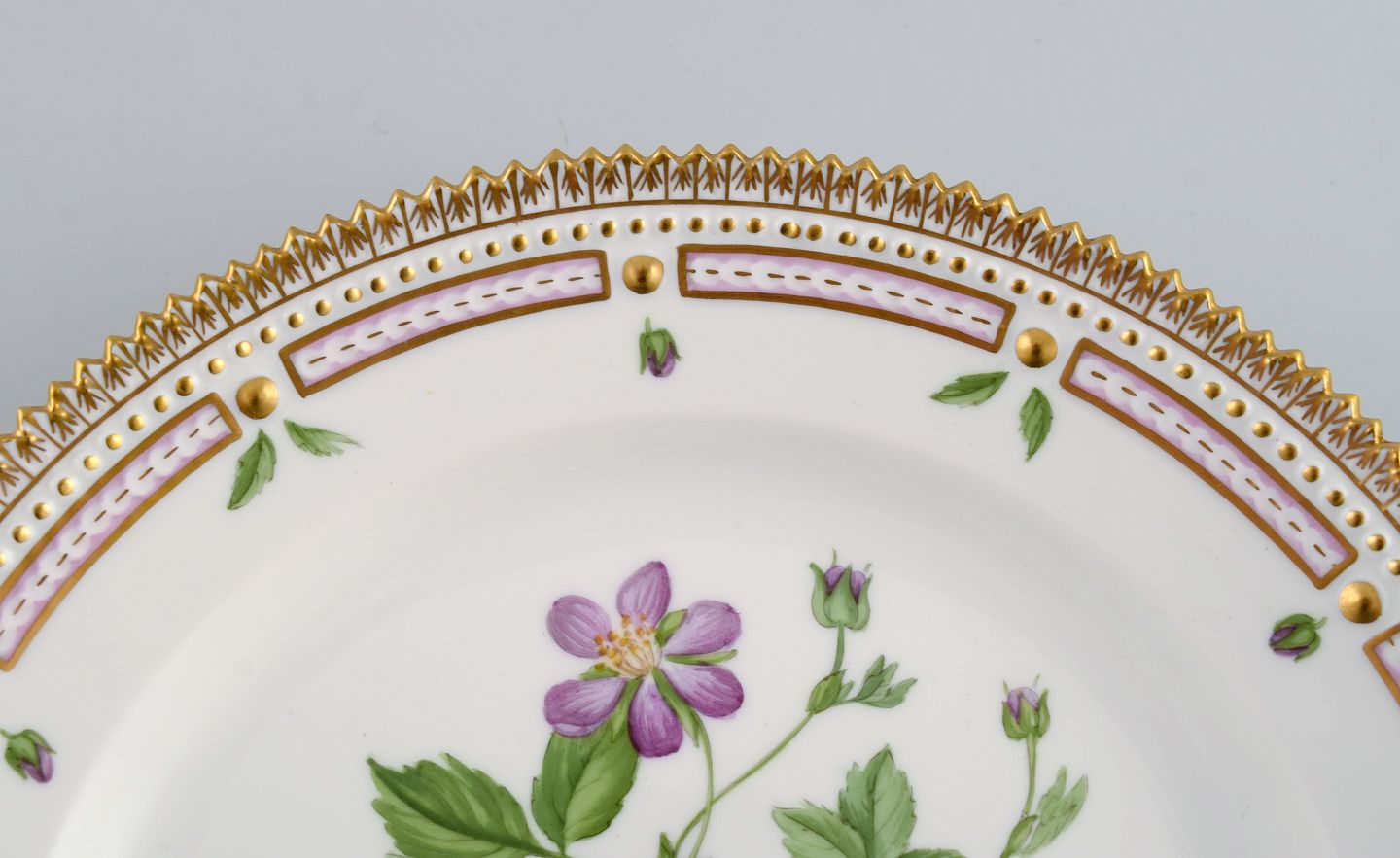 Royal Copenhagen Flora Danica frokosttallerken i håndmalet porcelæn med blomster og gulddekoration. Modelnummer 20/3550. Diameter: 22,5 cm. I flot stand. 2. Sortering. Stemplet.