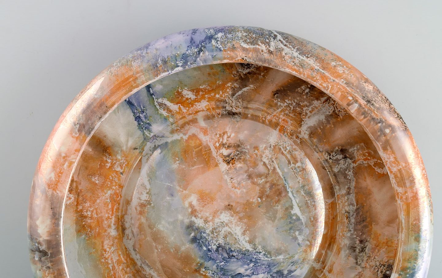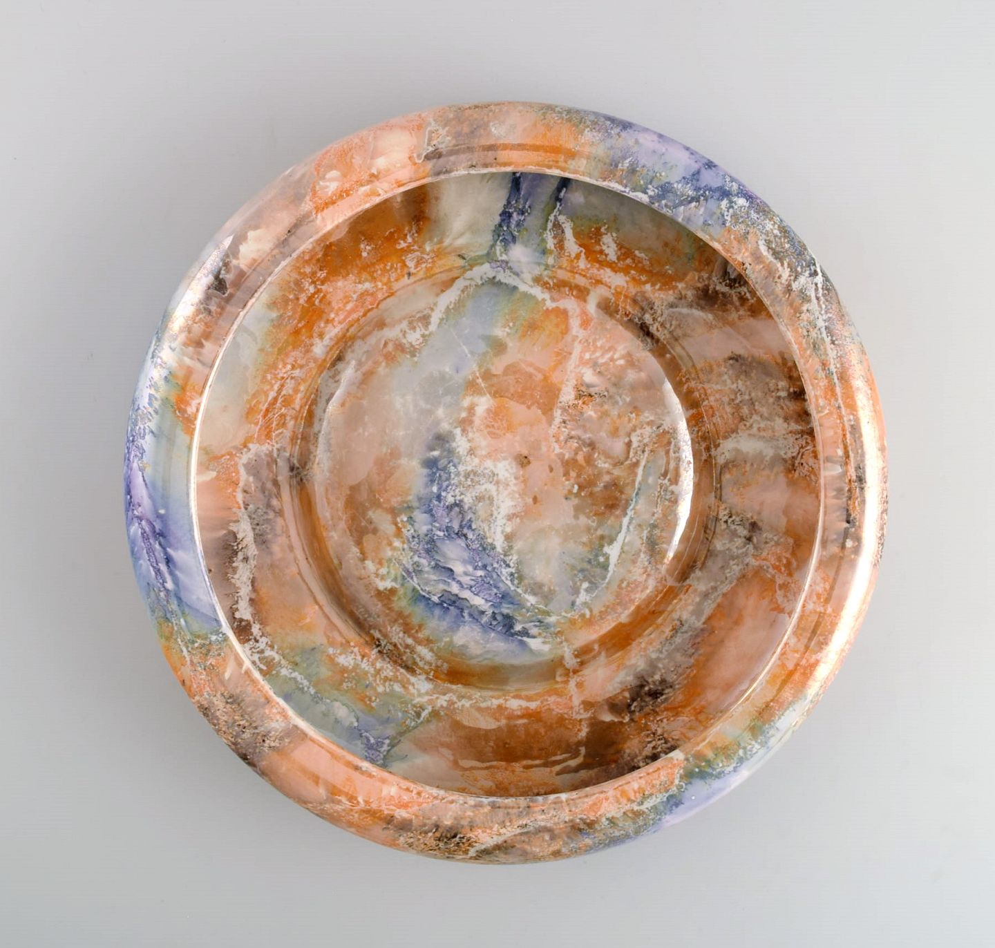 Arabia, Finland. Art deco skål i glaseret fajance. Smuk marmoreret glasur. 1920/30'erne. Måler: 27 x 5 cm. I flot stand. Stemplet.