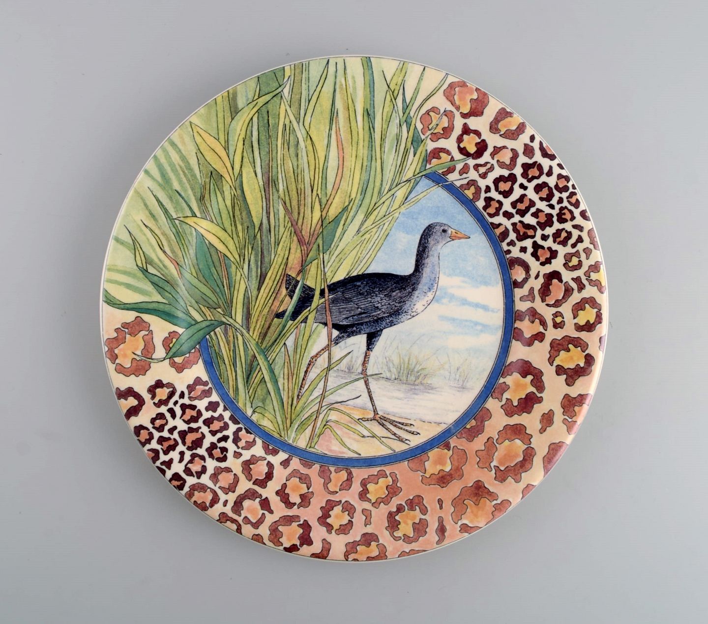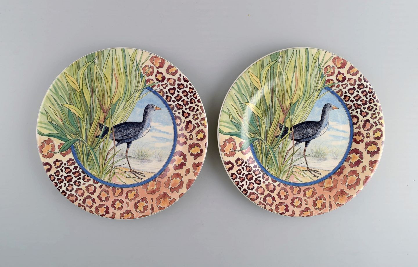 Gien, Frankrig. To Savane porcelænstallerkener med håndmalede eksotiske fugle. Sent 1900-tallet. Diameter: 22 cm. I flot stand. Stemplet.