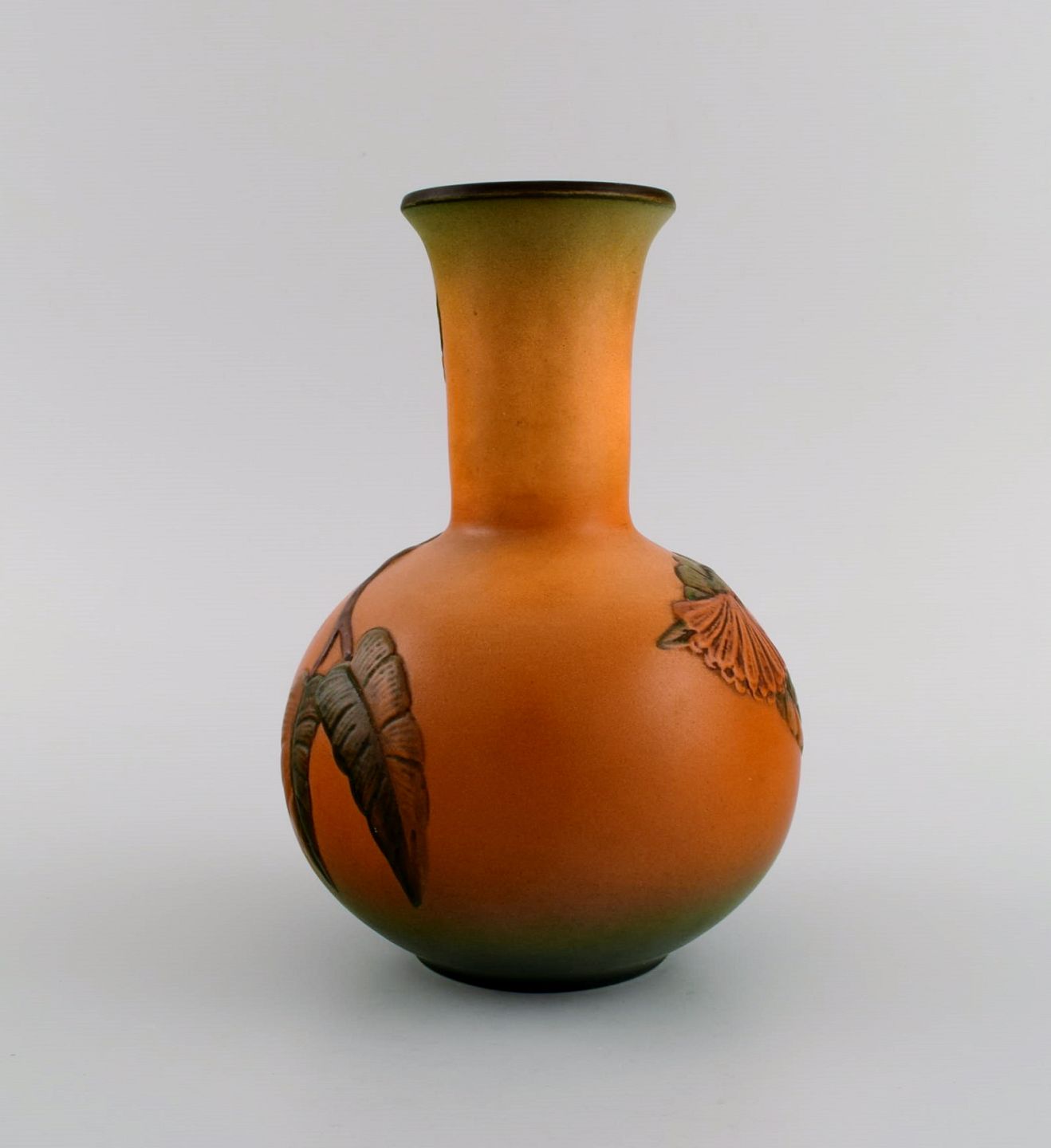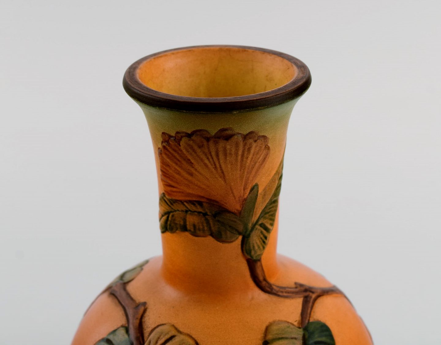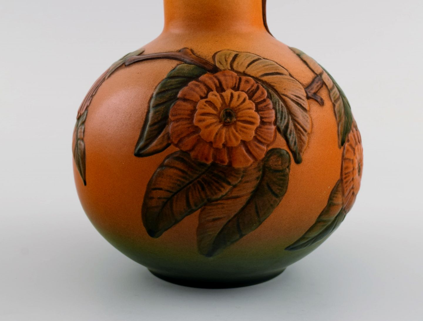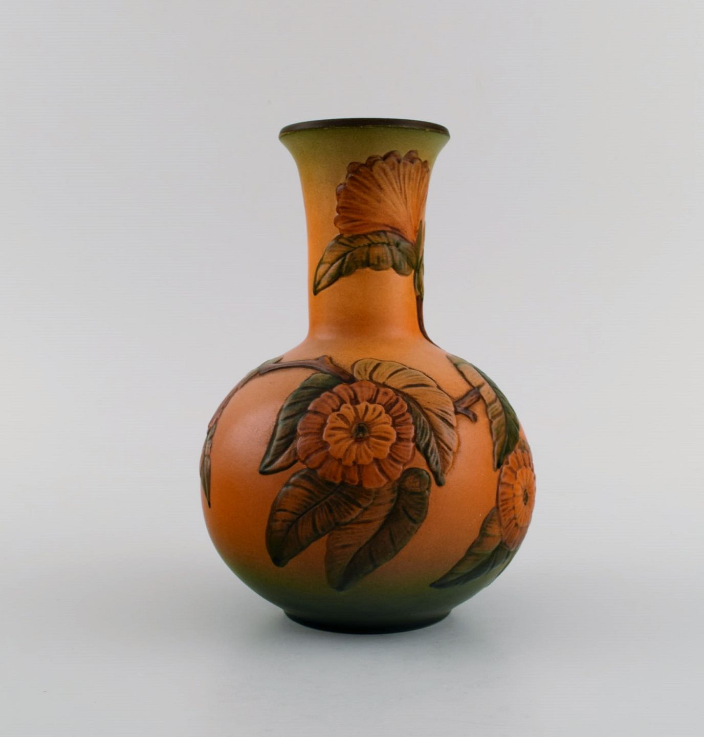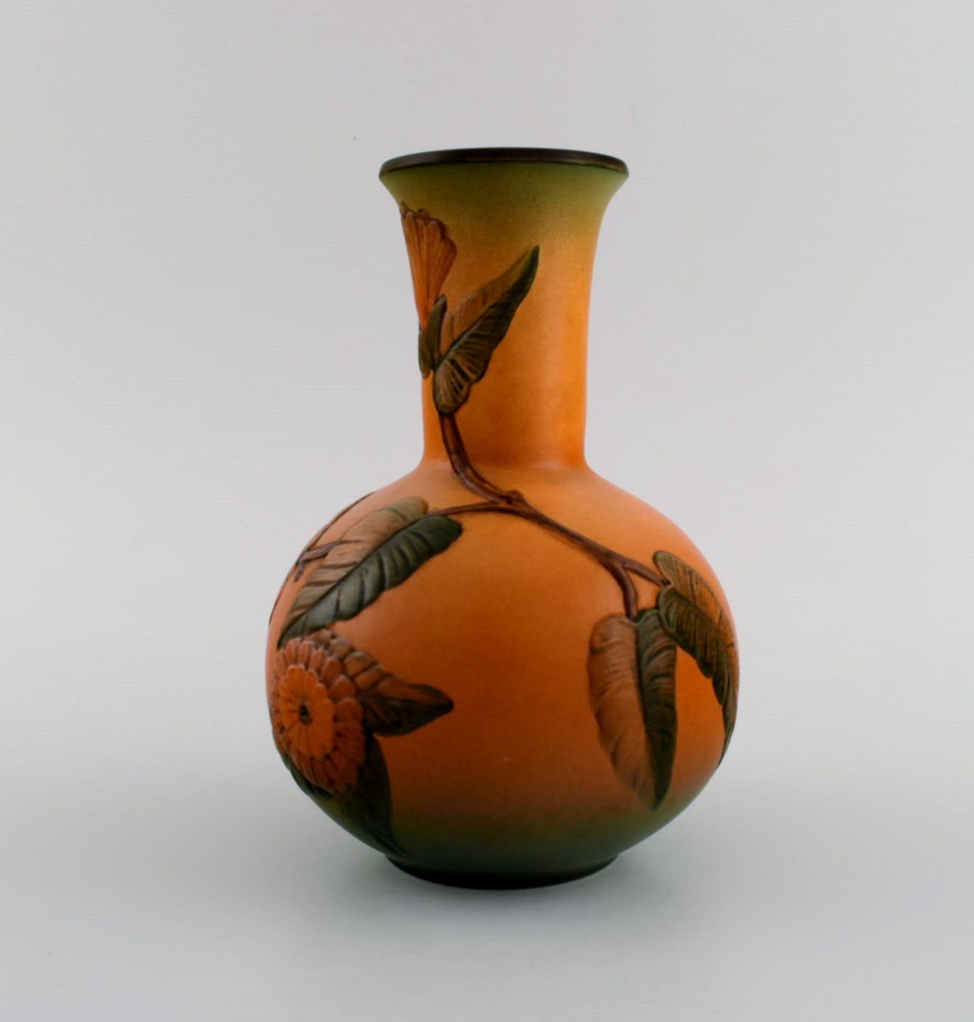 Ipsen's, Denmark. Art nouveau vase in hand-painted ceramics with flowers and foliage in relief. 1920s/30s. Model number 428.
