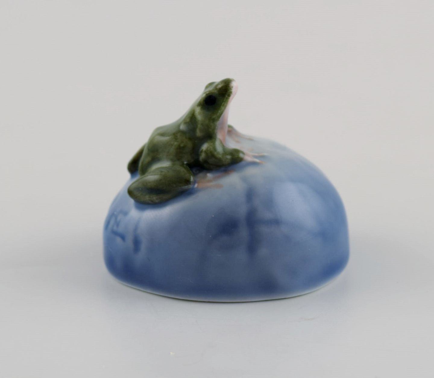 Royal Copenhagen porcelain figure. Frog on stone. Measures: 4.5 x 3.5 cm. In excellent condition. Stamped. 1st factory quality.