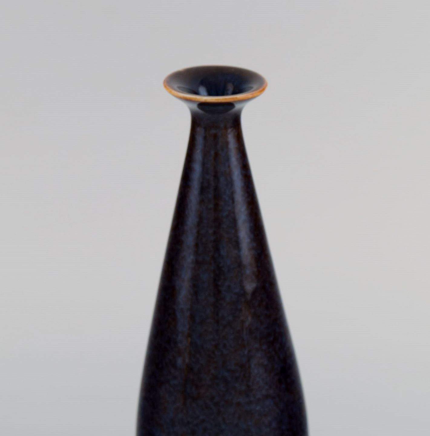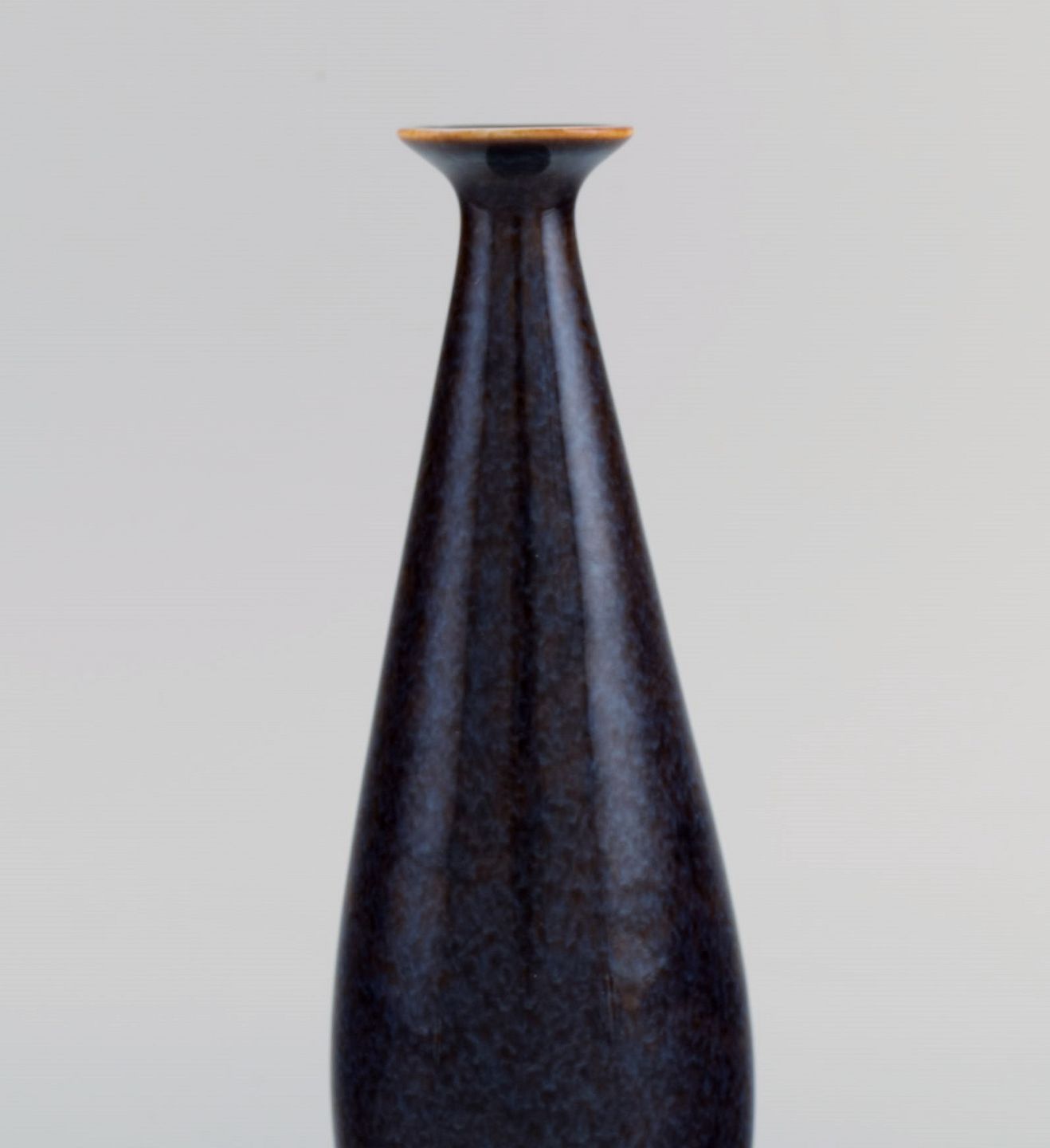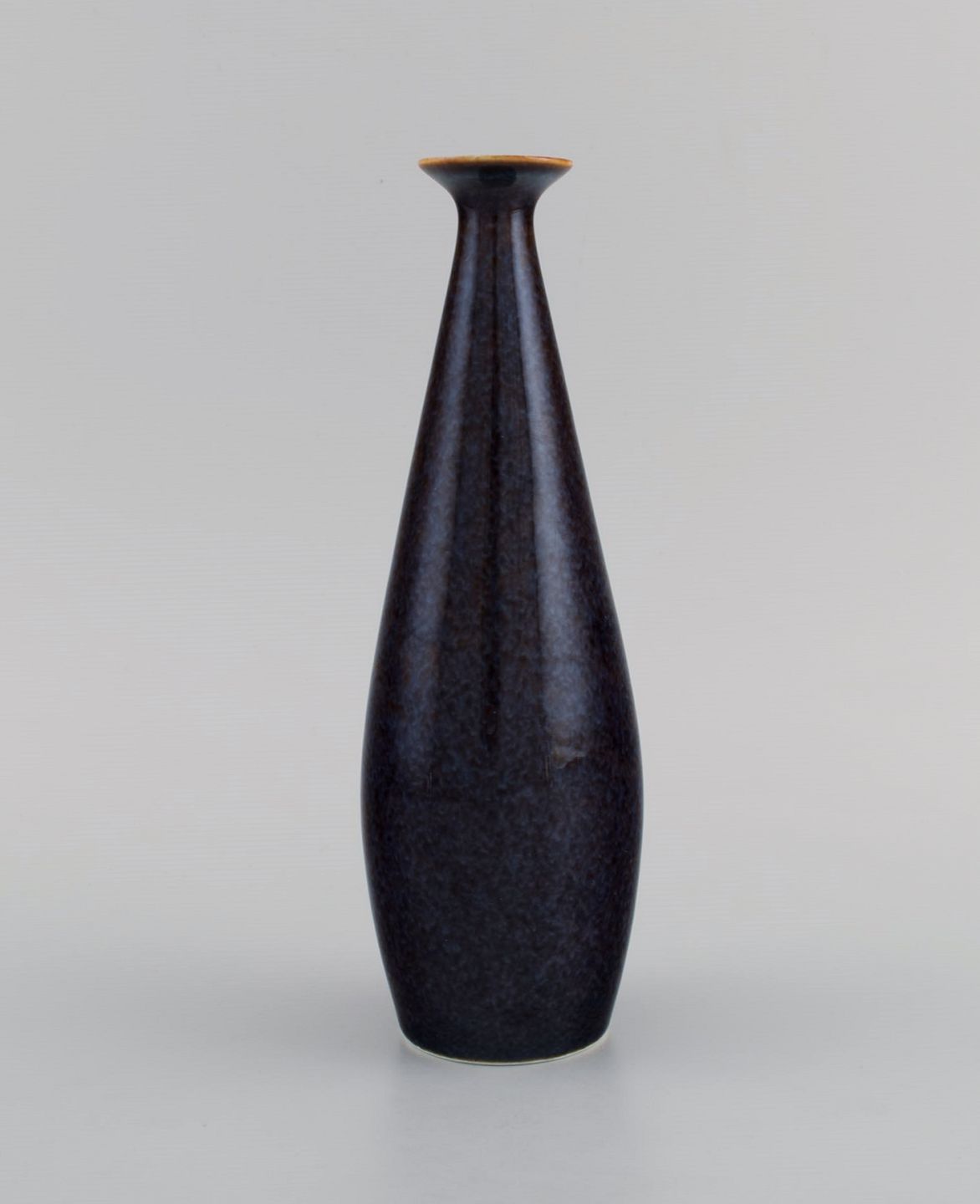 Carl Harry Stålhane (1920-1990) for Rörstrand. Vase i glaseret keramik. Smuk spættet glasur. 1960'erne. Måler: 22,5 x 7 cm. I flot stand. Signeret.