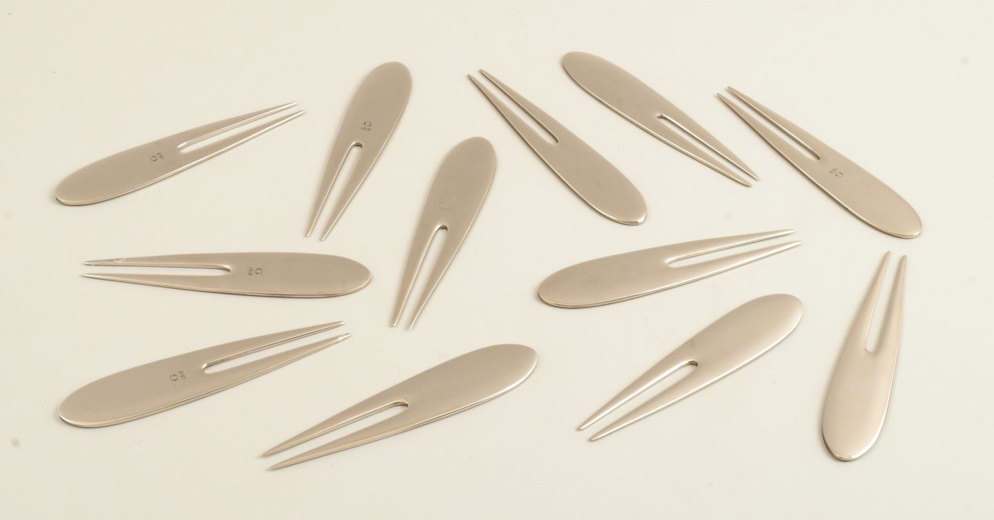 Ten hors d'oeuvre forks. 21st Century.