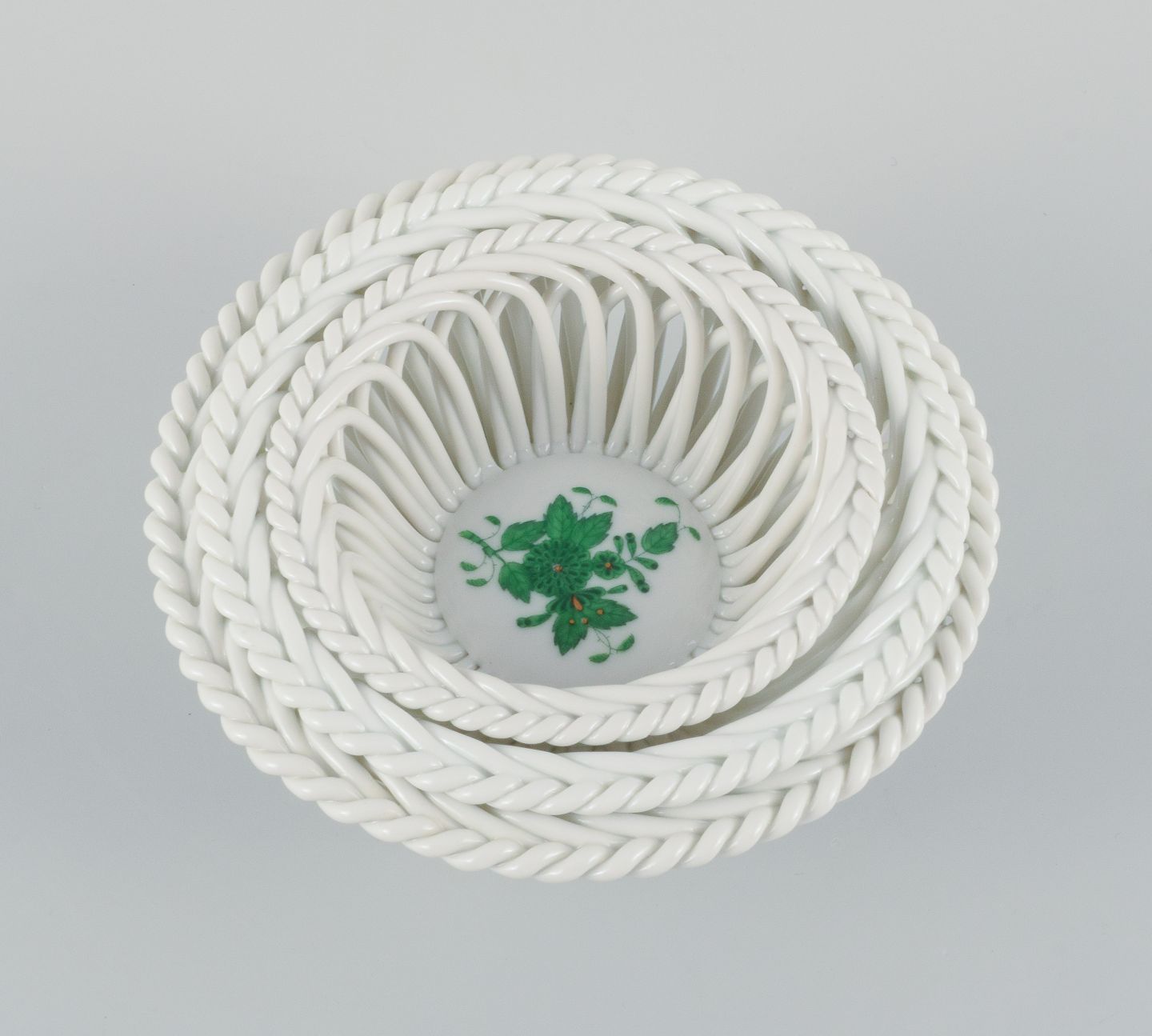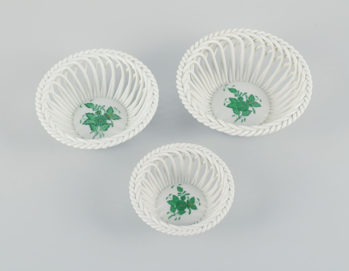 Herend Green Chinese Bouquet, tre små skåle i håndmalet porcelæn.