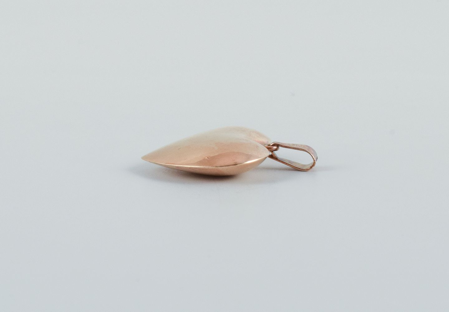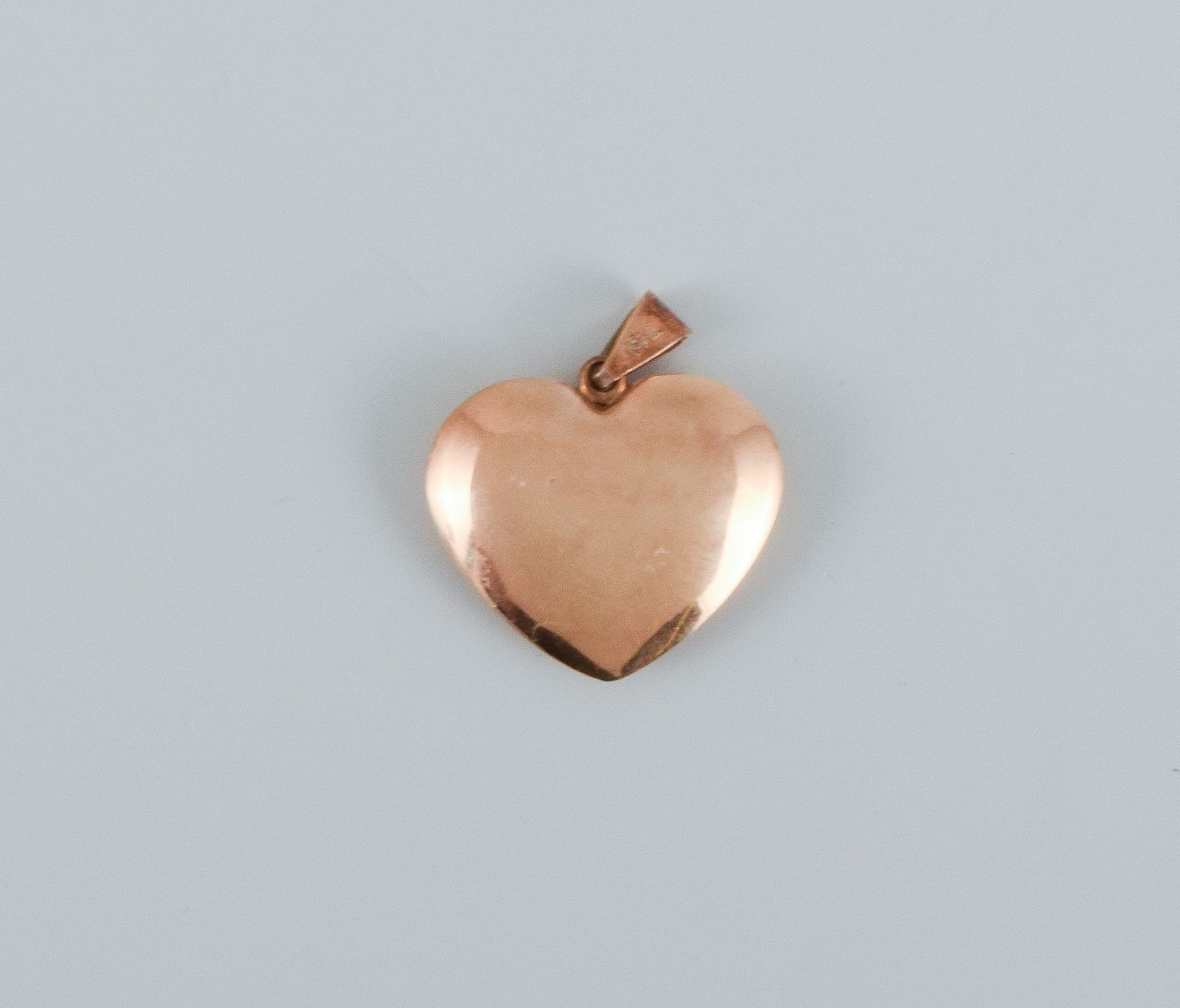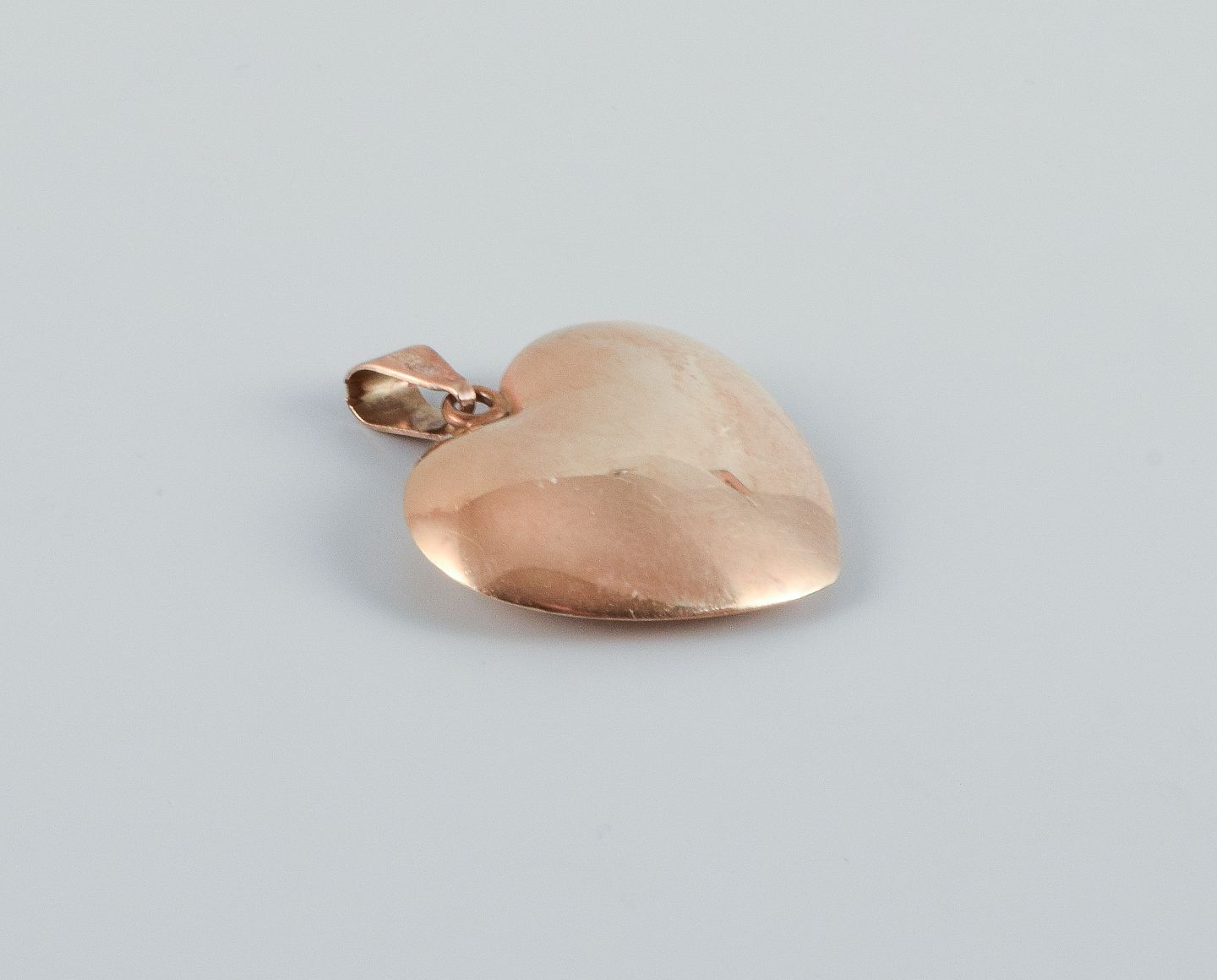 Scandinavian goldsmith, pendant in the shape of a heart. Marked with the goldsmith's initials. Measured at 14 carats. Measuring: 18 mm. x 23 mm.