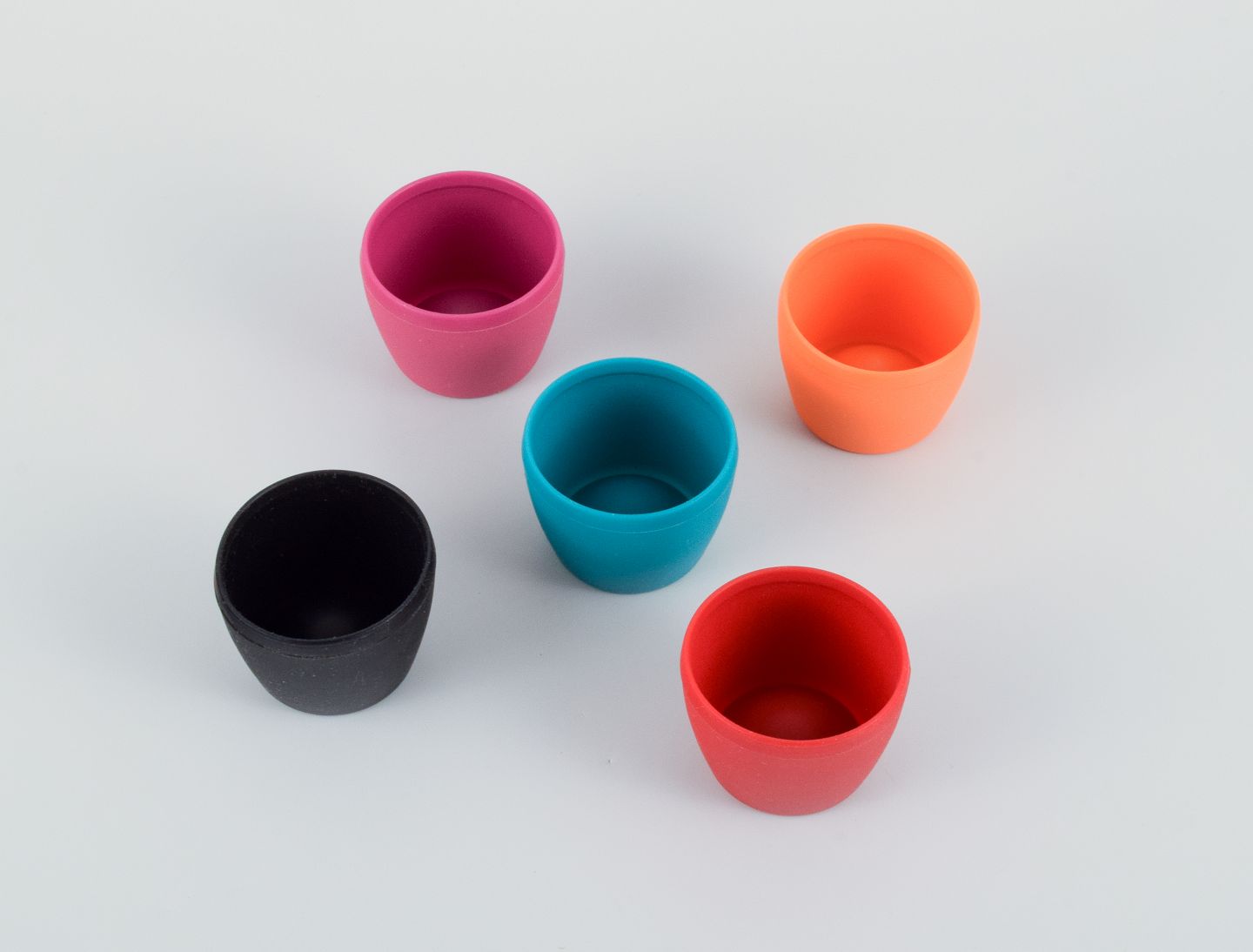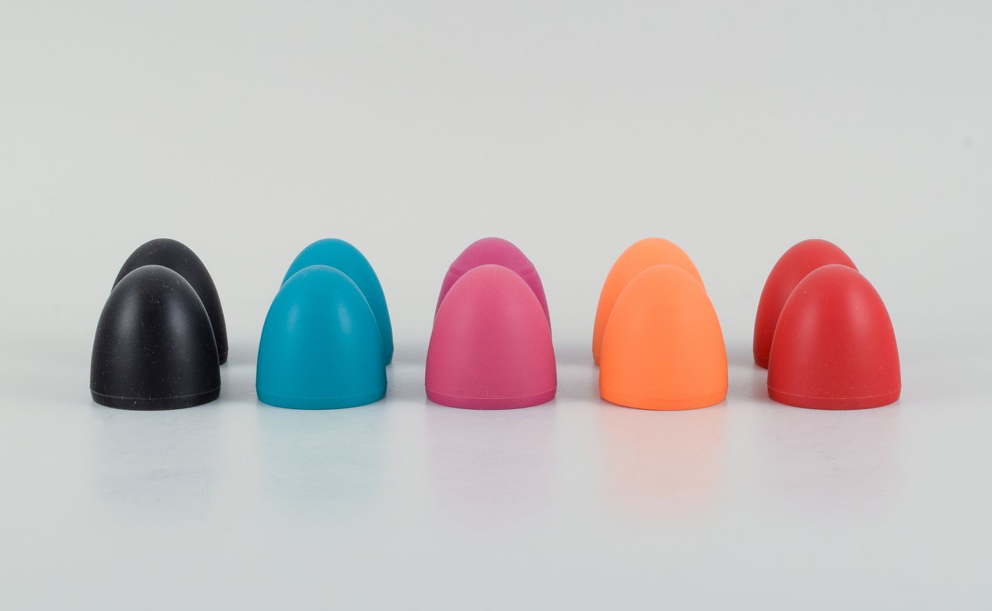 Verner Panton for MENU, ti æggebægre i forskellige farver, udført i gummi. Sent 1900-tallet. I perfekt stand. Stemplet. Måler: H 5,5 cm. x D 4,5 cm.