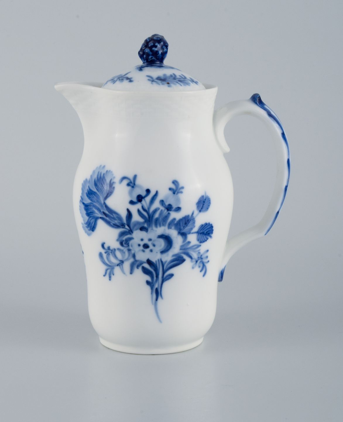 Royal Copenhagen, Blå blomst – flettet. Lille kande, sjælden model. Modelnummer 10/8044. Ca. 1920. Lille ubetydeligt skår på inderside af låget. H 17 B 12,5 (inklusiv hank).