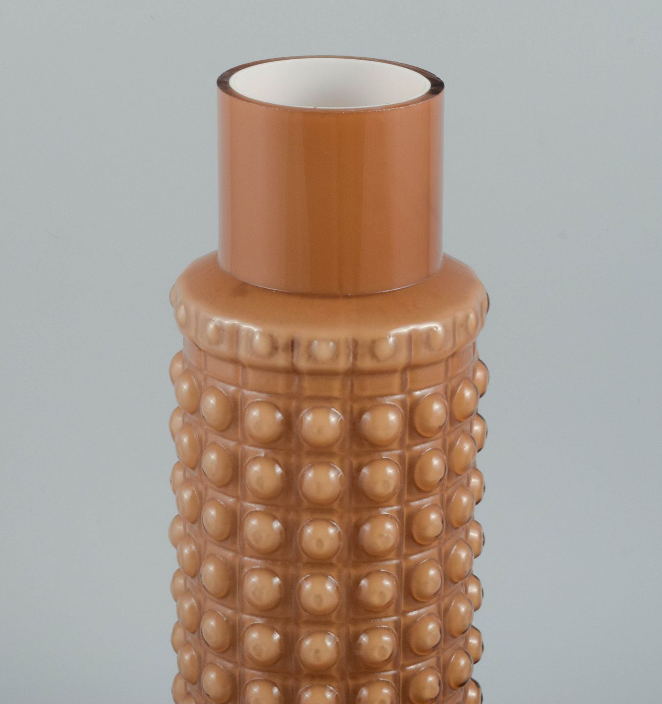 Helena Tynell, finsk glaskunstner. Stor modernistisk glasvase i okkergul kunstglas. 60/70’erne. I flot stand. H 38,0 x D 13,0 cm. Ustemplet.