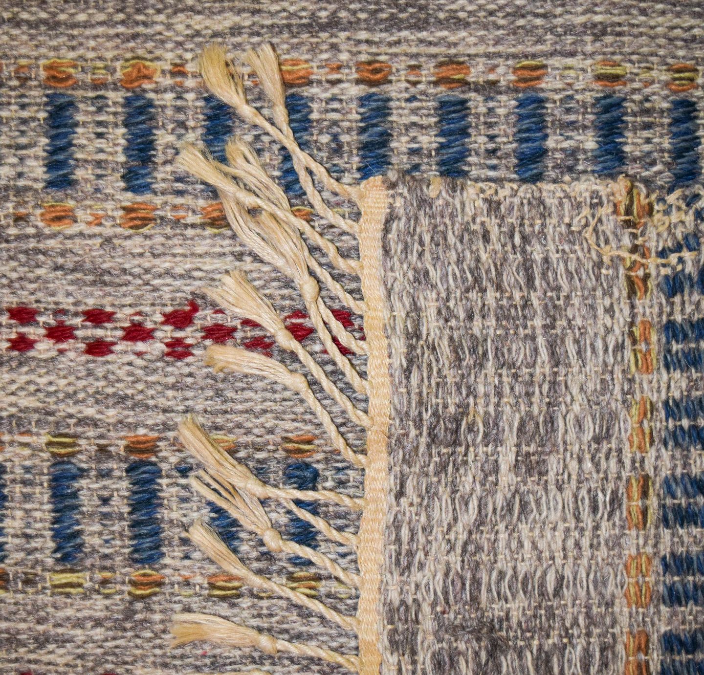 Swedish textile designer, handwoven carpet with fringes in wool.