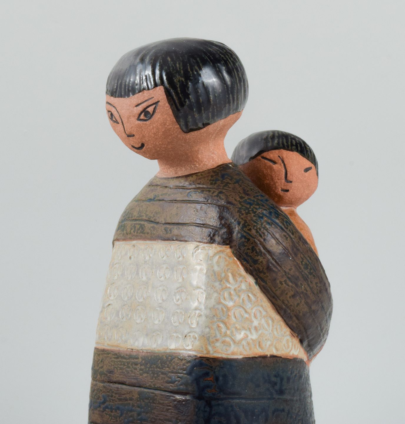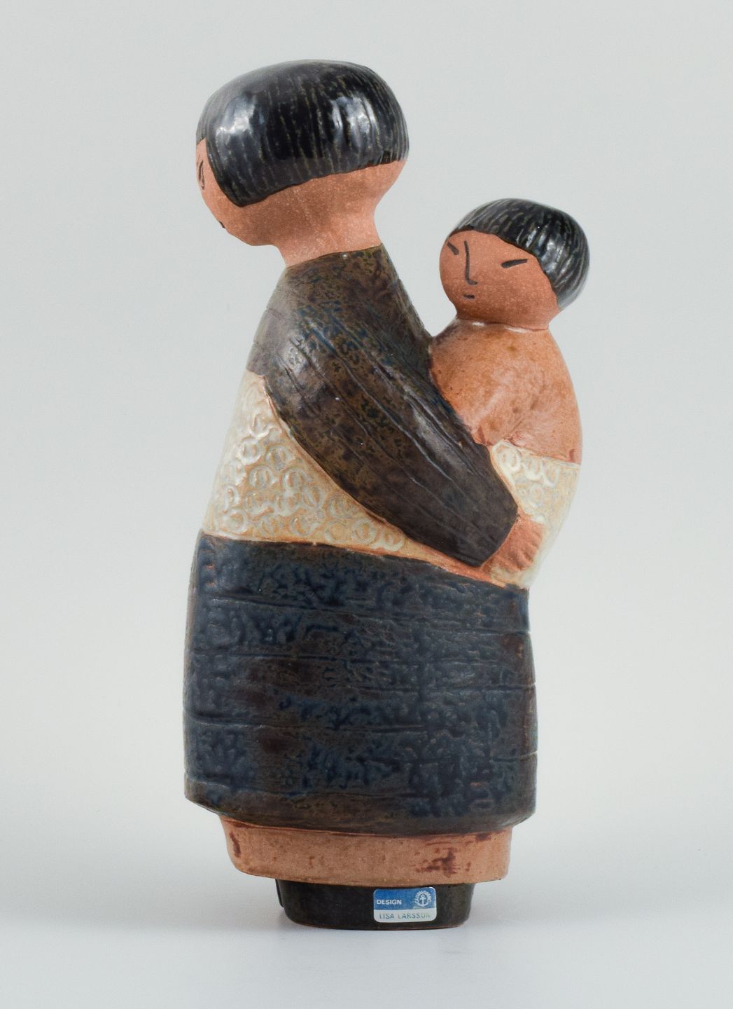 Rare Lisa Larson figure in glazed ceramics. Japanese mother with child. 1970s. Measures: 29,0 x 14,0 cm. In excellent condition. Sticker.