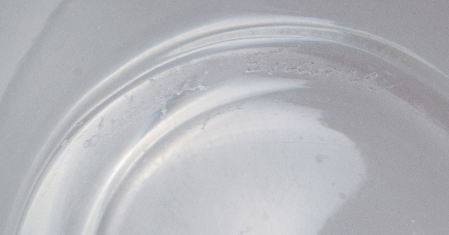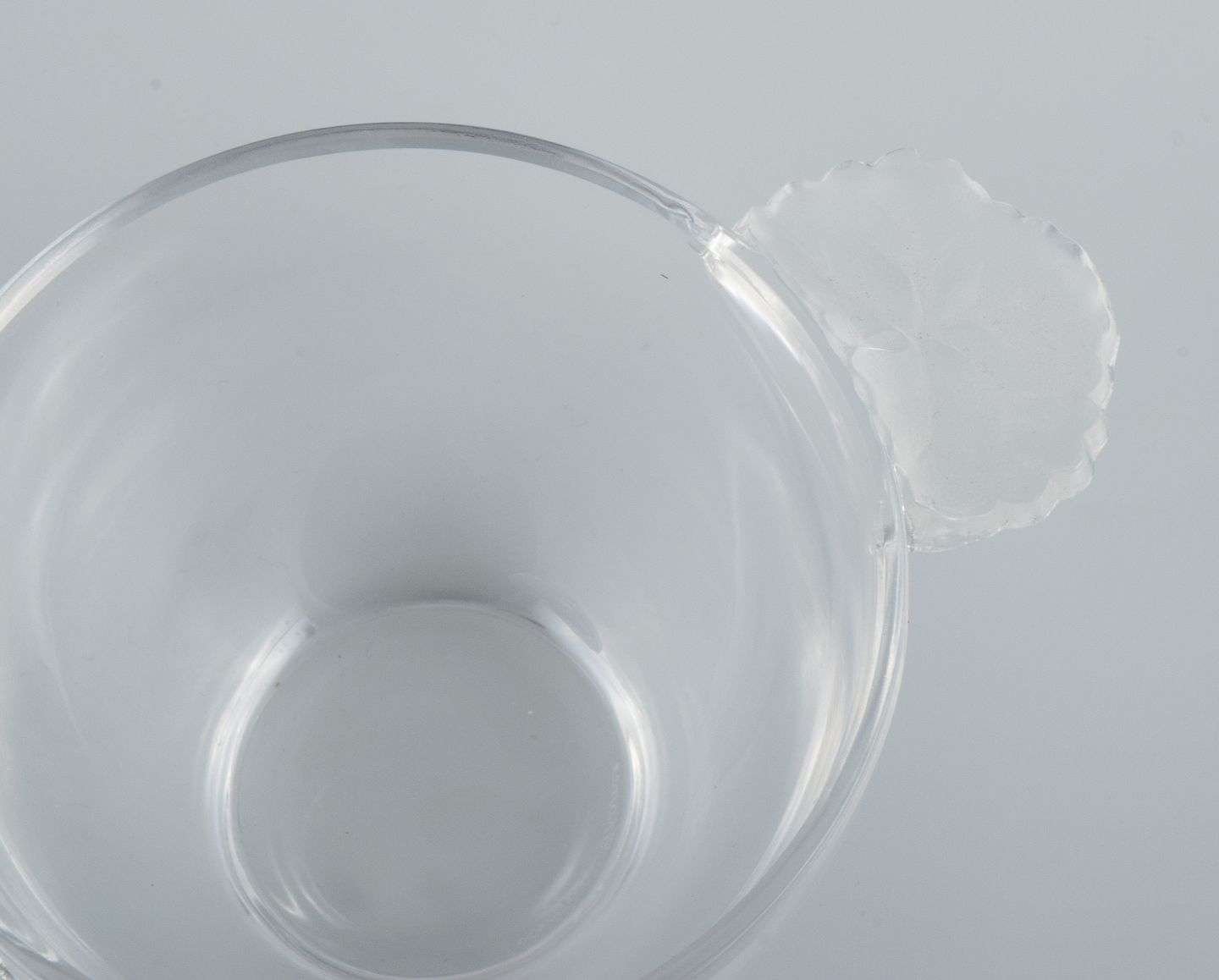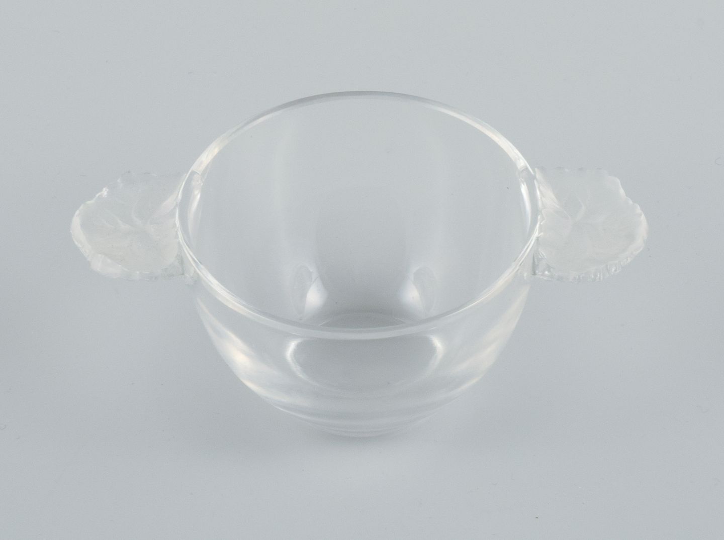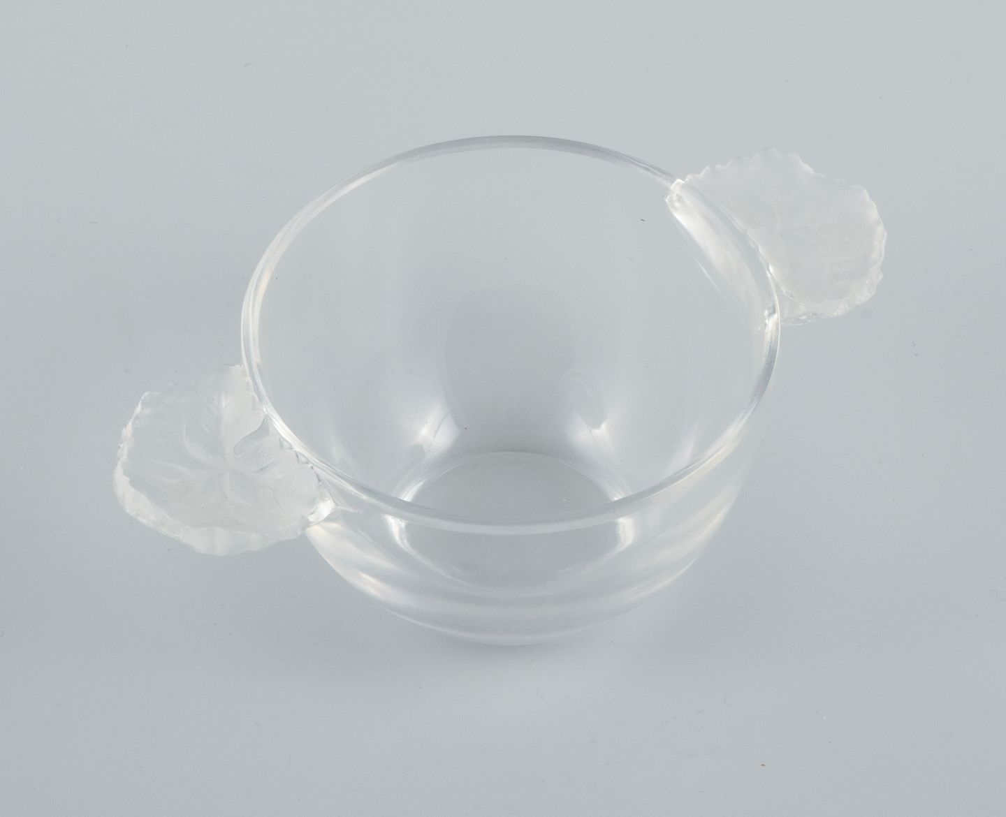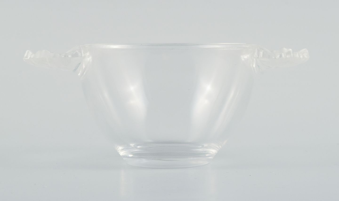Rene Lalique, lille Honfleur skål med hanke i kunstglas. Perfekt stand. 1960/70’erne. Signeret Lalique France. D inklusiv hanke 14,0 X H 6,0 cm.