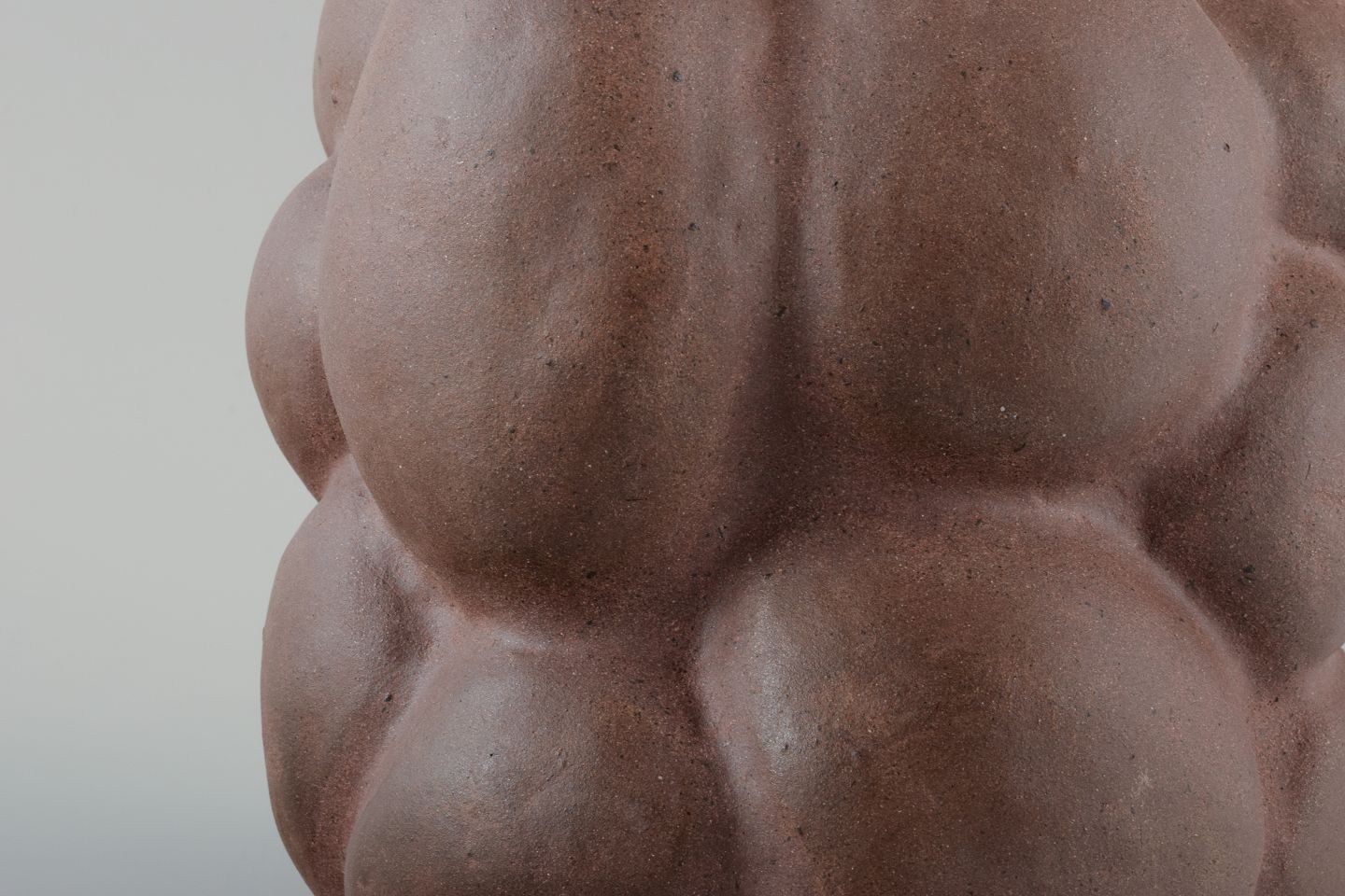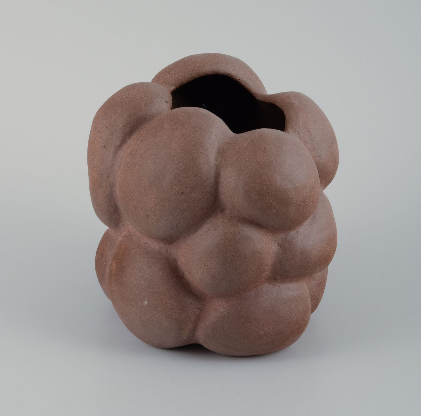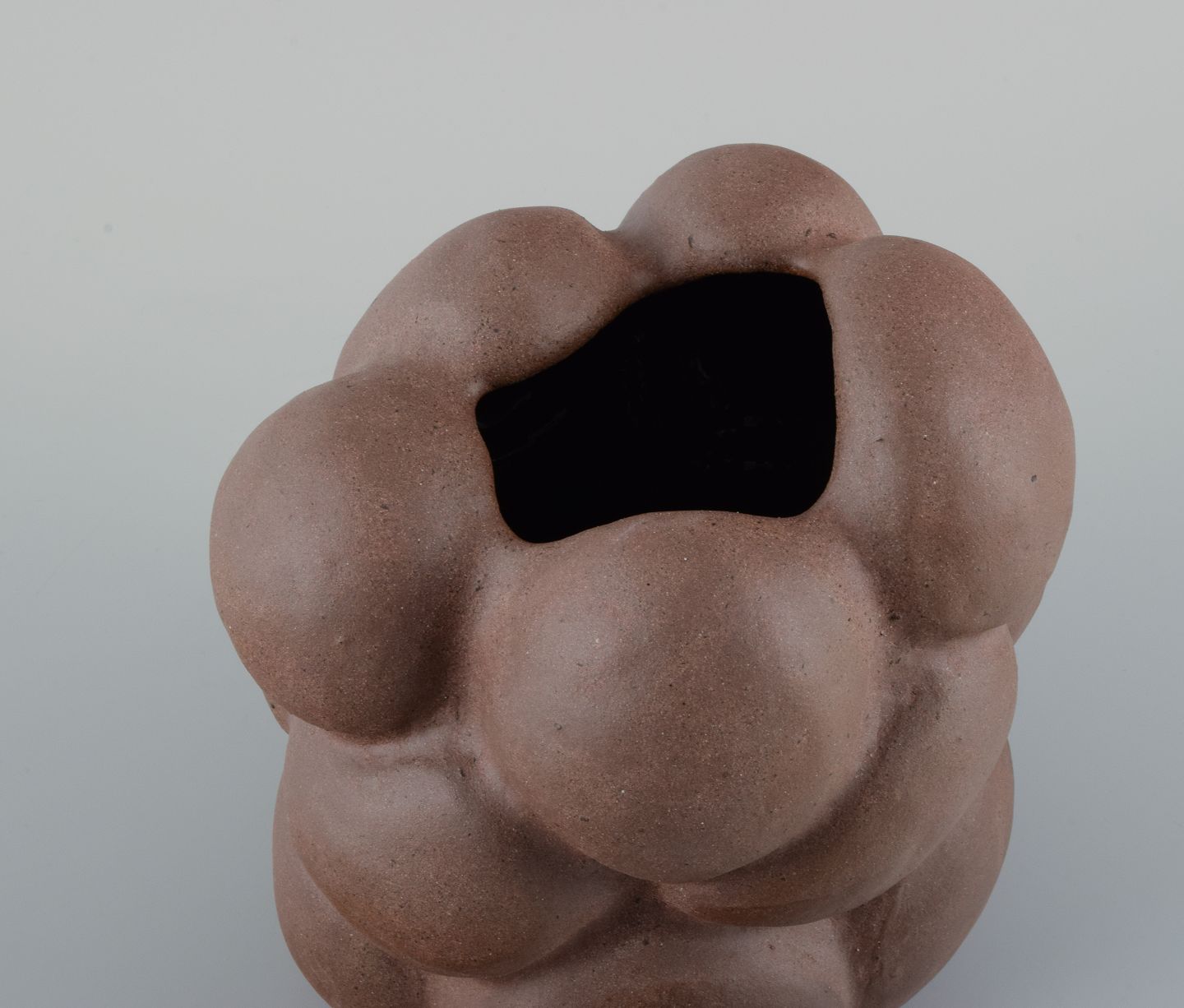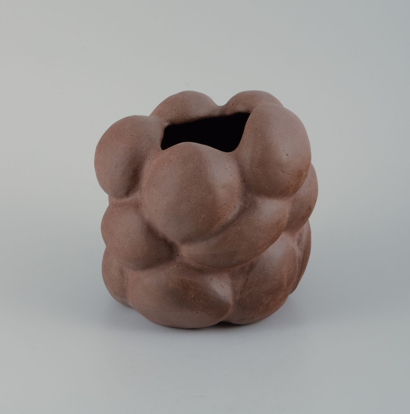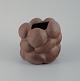 Reddish brown organically shaped stoneware vase. Clear glaze on the inside.