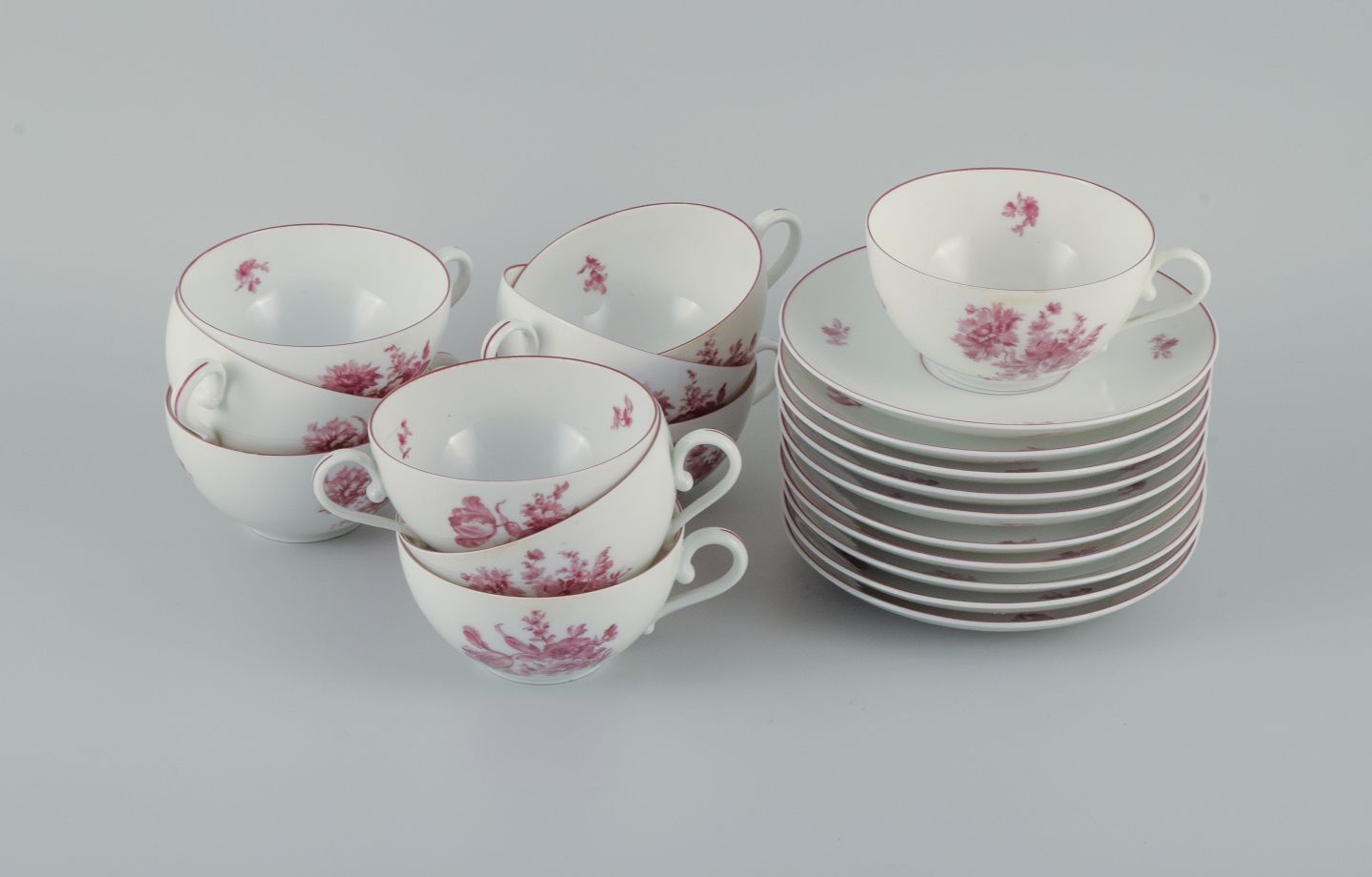 Including ten teacups with matching saucers.
