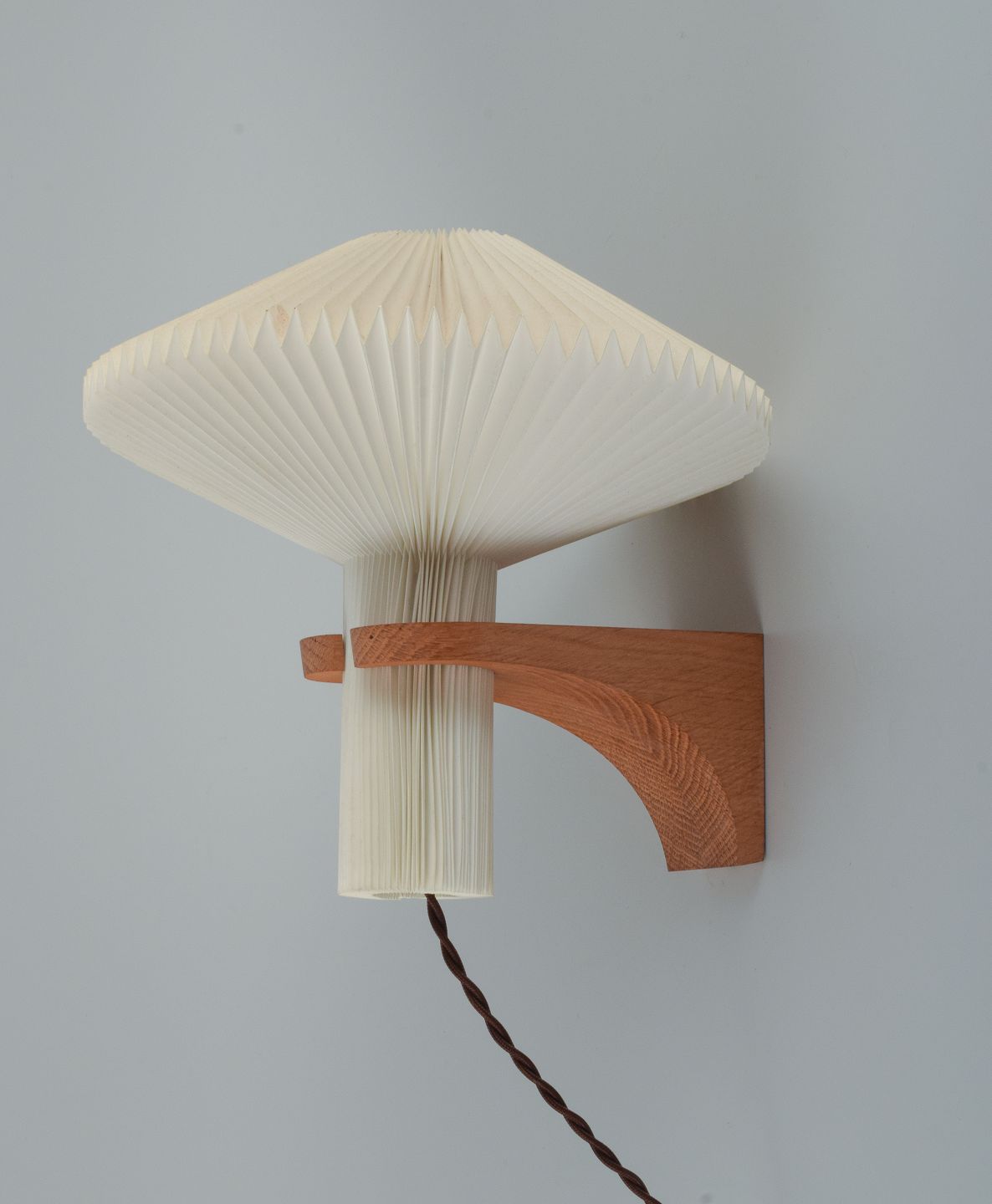 Et par Le Klint væglamper. Le Klint 204 "The Mushroom". Sent 1900-tallet. I perfekt stand. Den ene skærm trænger til rens. Mærkat. Måler: Højde 24,0 x Dybde 26,0 x Diameter 27,0 cm.