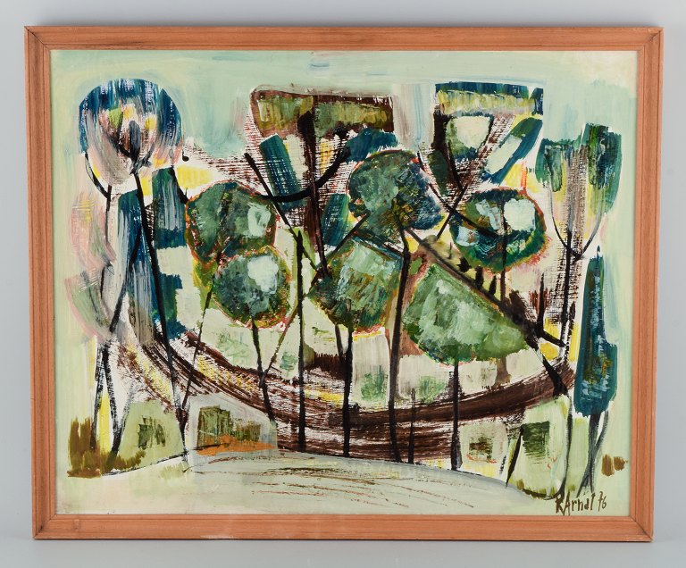 R. Arnal, unknown artist. Modernist landscape. Oil on canvas. Signed and dated 76. In perfect condition. Dimensions: 62.0 x 50,0 / Total: 65.5 x 54.0 cm. with frame.
