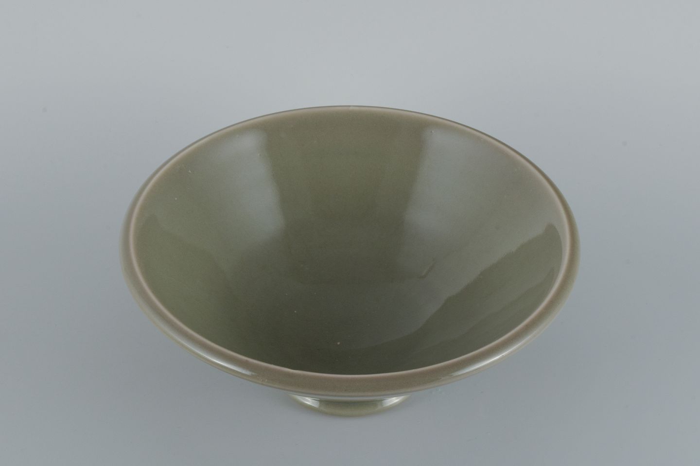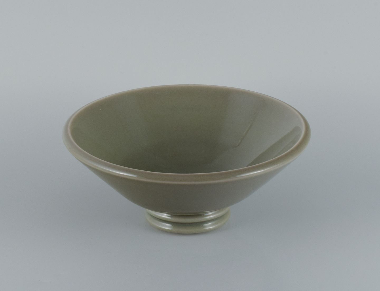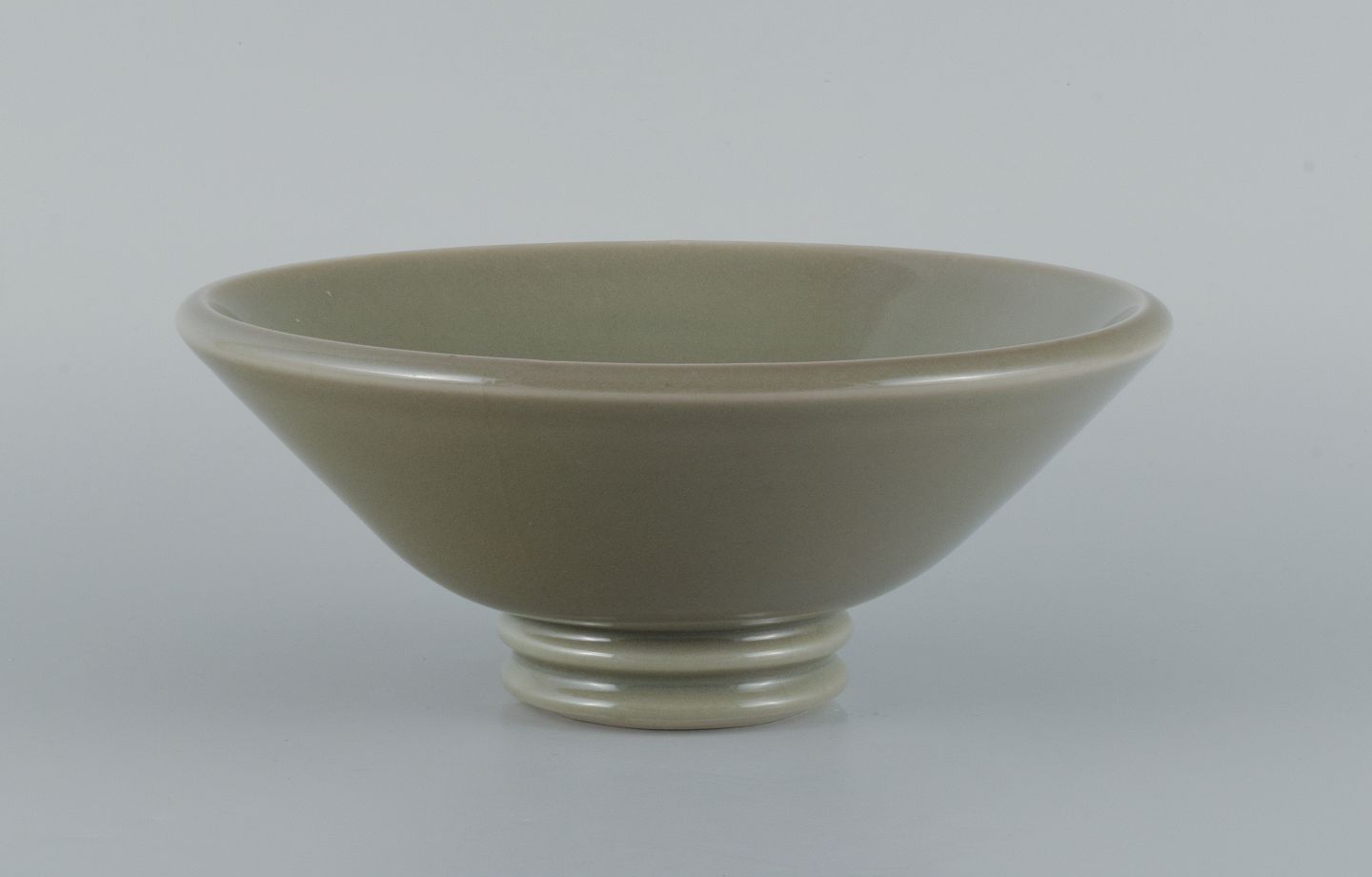 Gunnar Nylund for Rörstrand (Lidköping), skål i keramik med grågrøn glasur. 1930/40'erne. Stemplet. I flot stand. Måler: D 24,5 x H 10,5 cm.