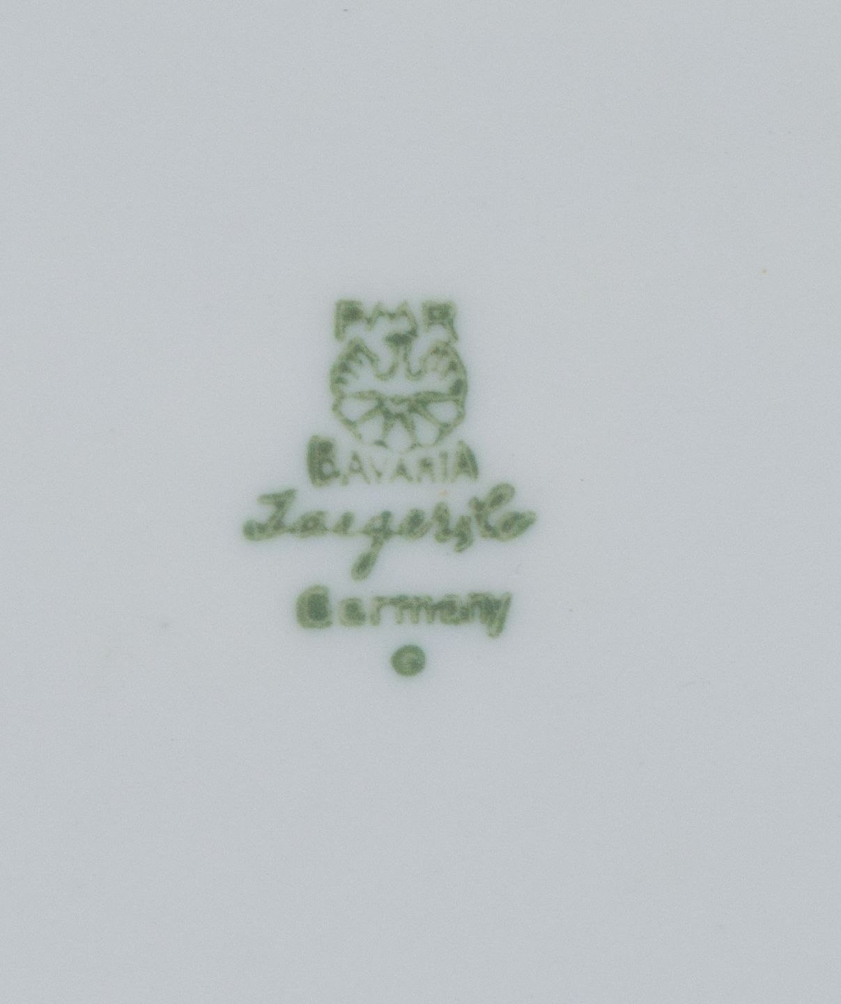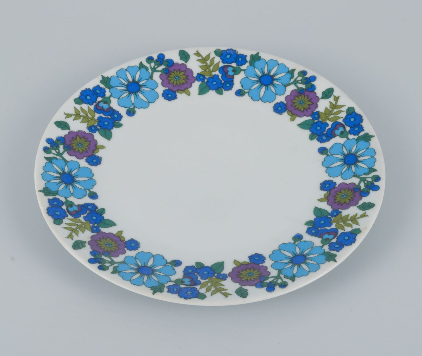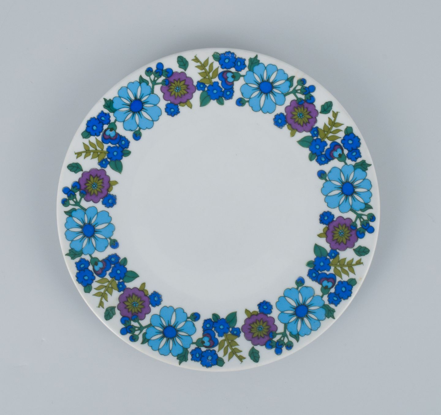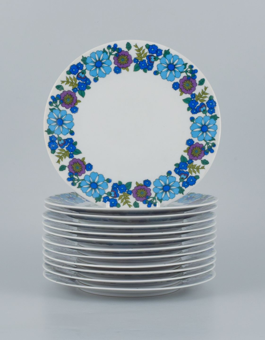 Et sæt på tolv retro tallerkner i porcelæn med blomstermotiv.