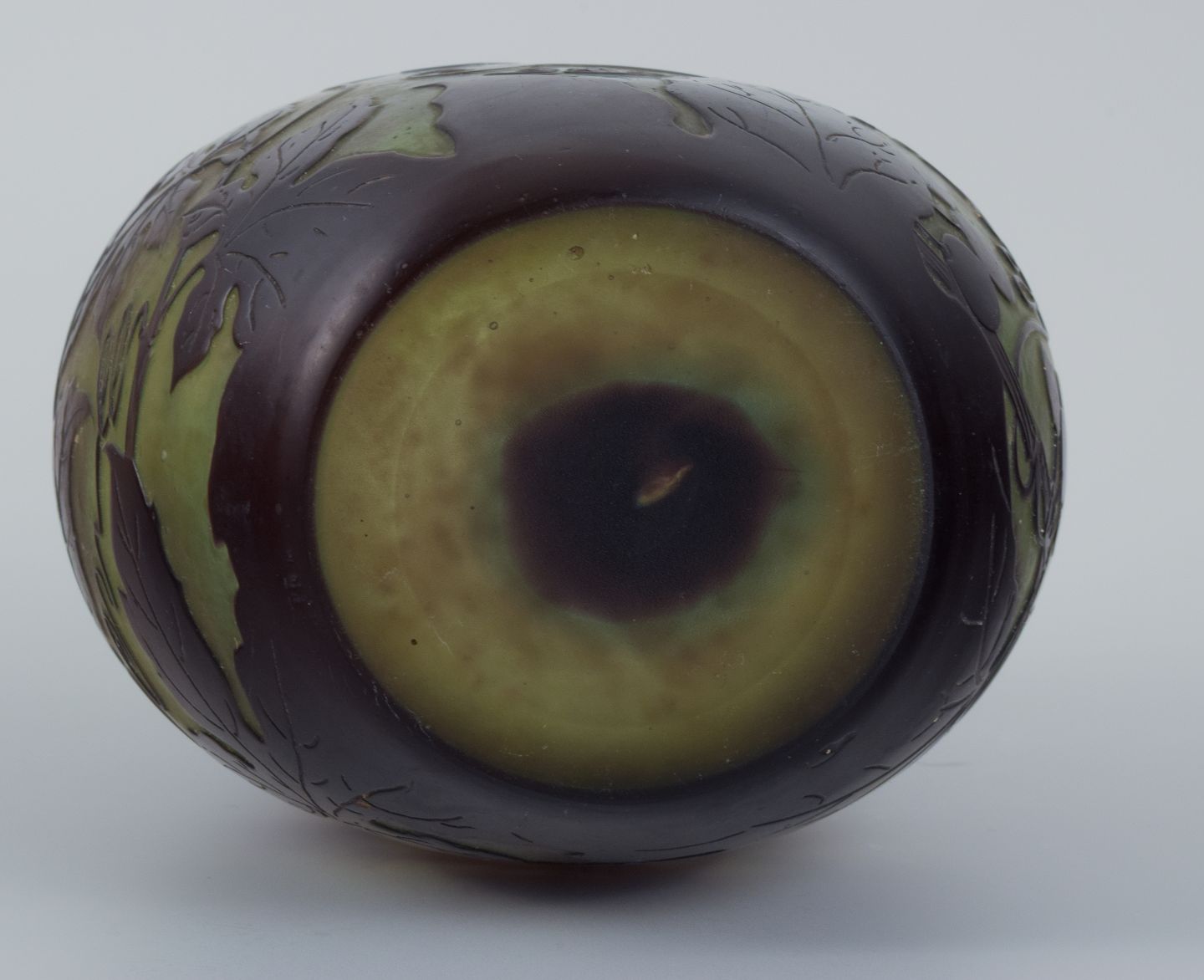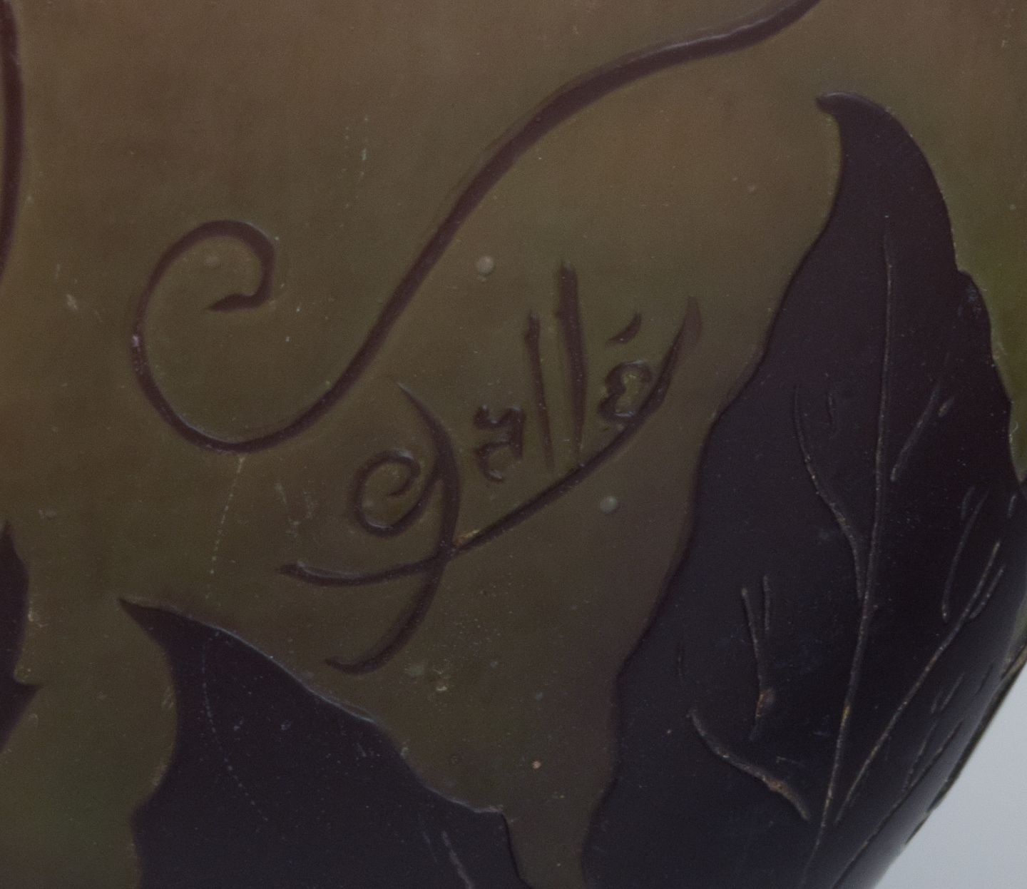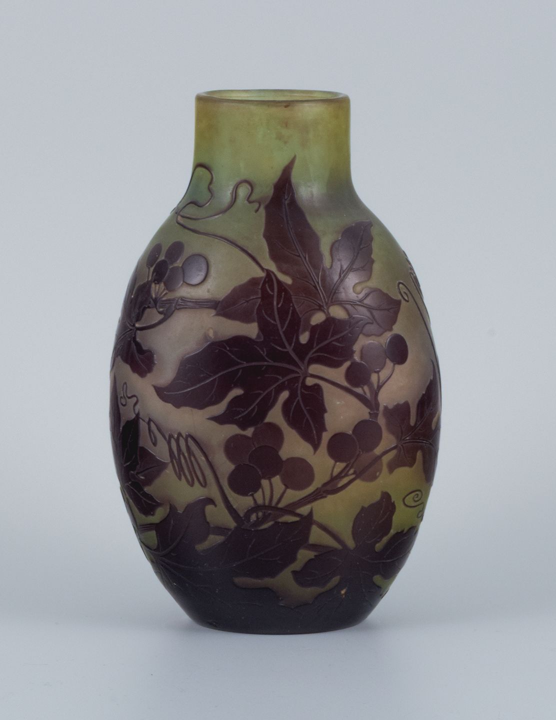Émile Gallé (1846-1904), France. Vase in mouth-blown art glass with purple foliage in relief.