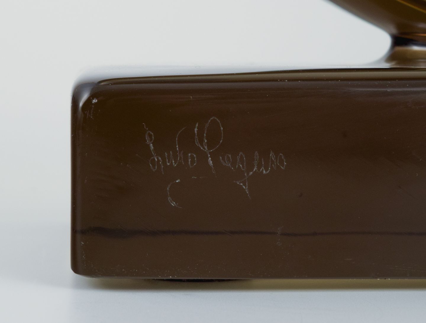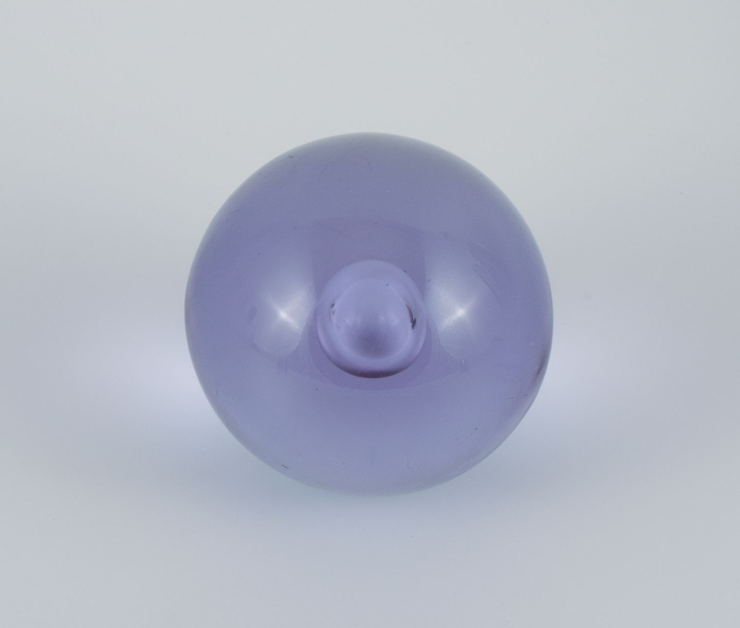 Livio Seguso, Murano, kolossal og imponerende kunstglasskulptur i røgfarvet glas på sort fod og glaskugle i lyslilla.
