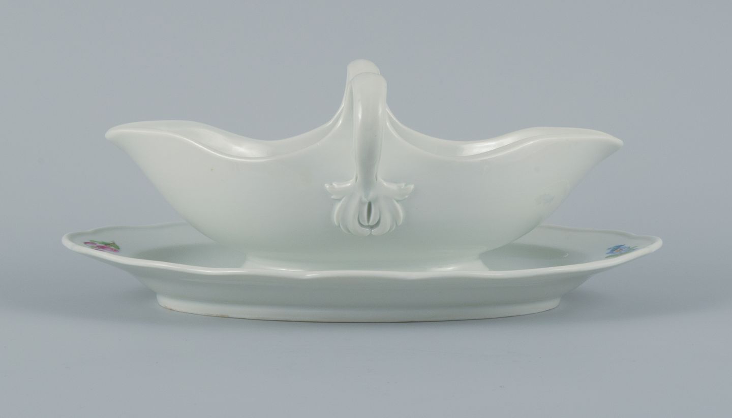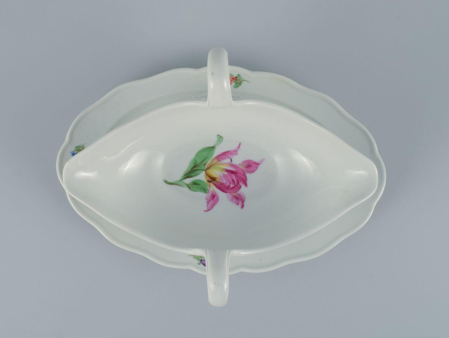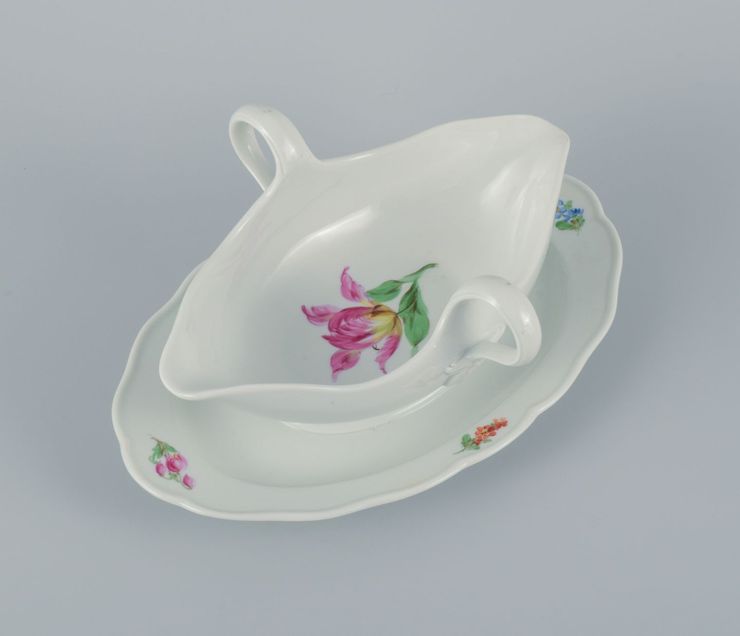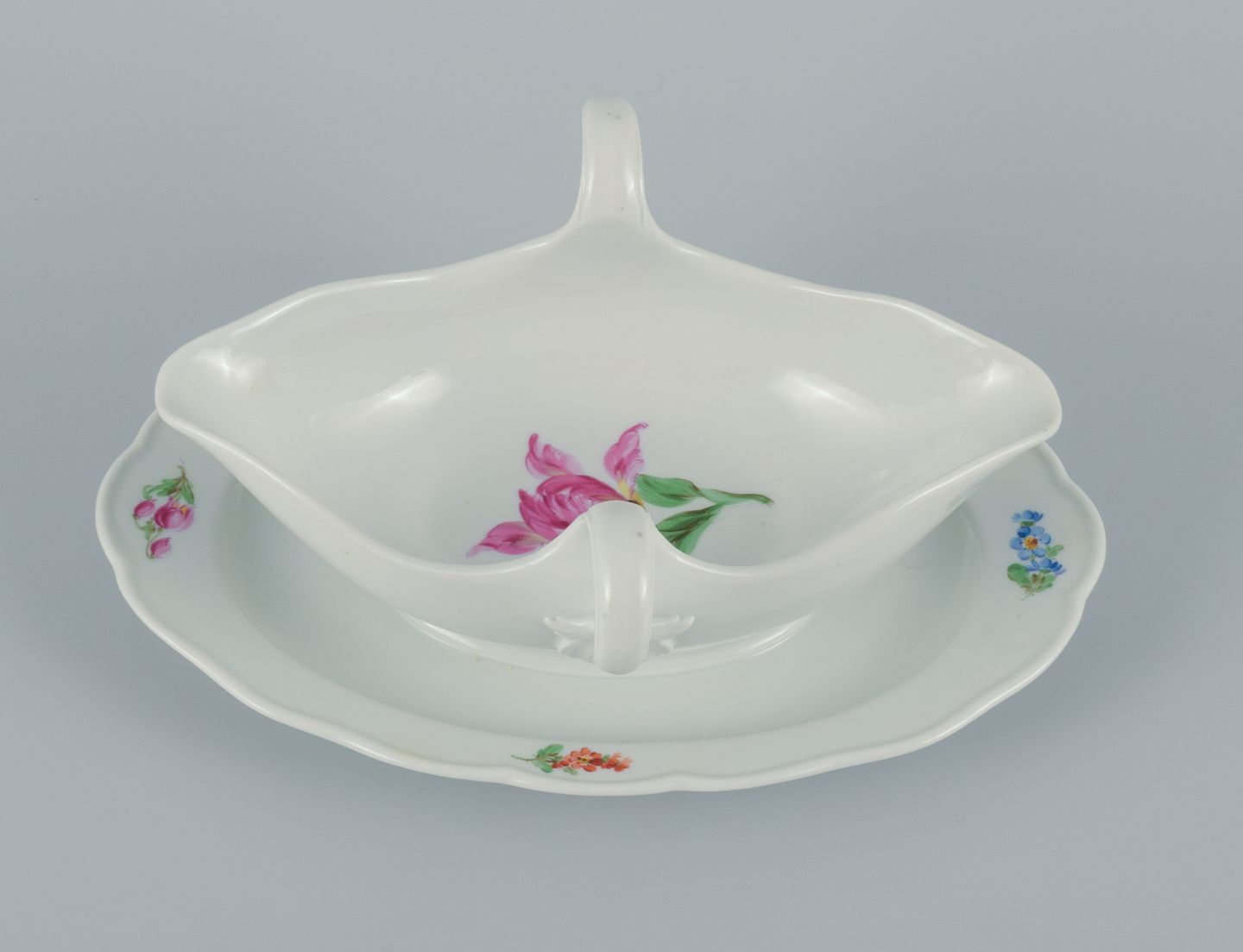 Meissen, Germany, sauce pot on foot hand painted with floral motifs in different colors.