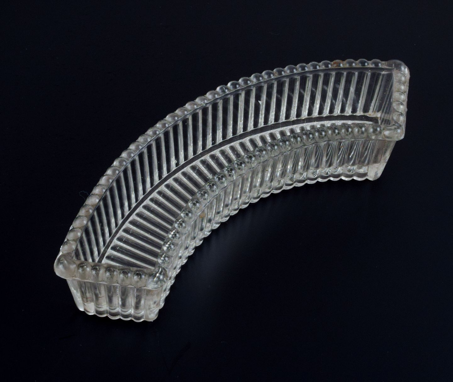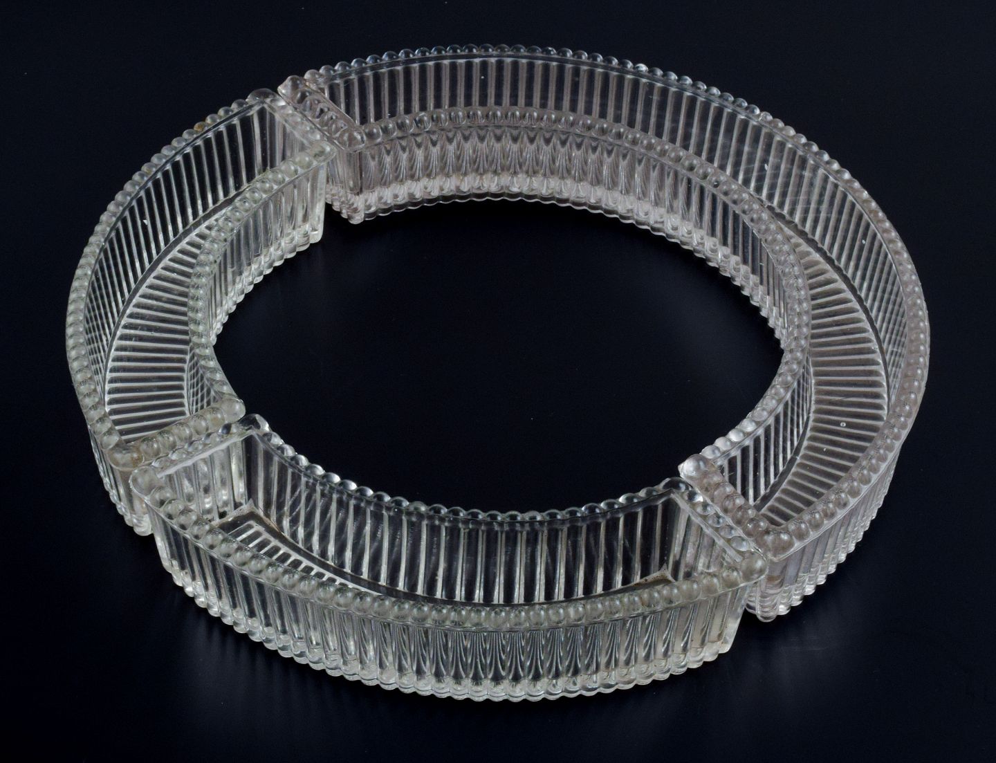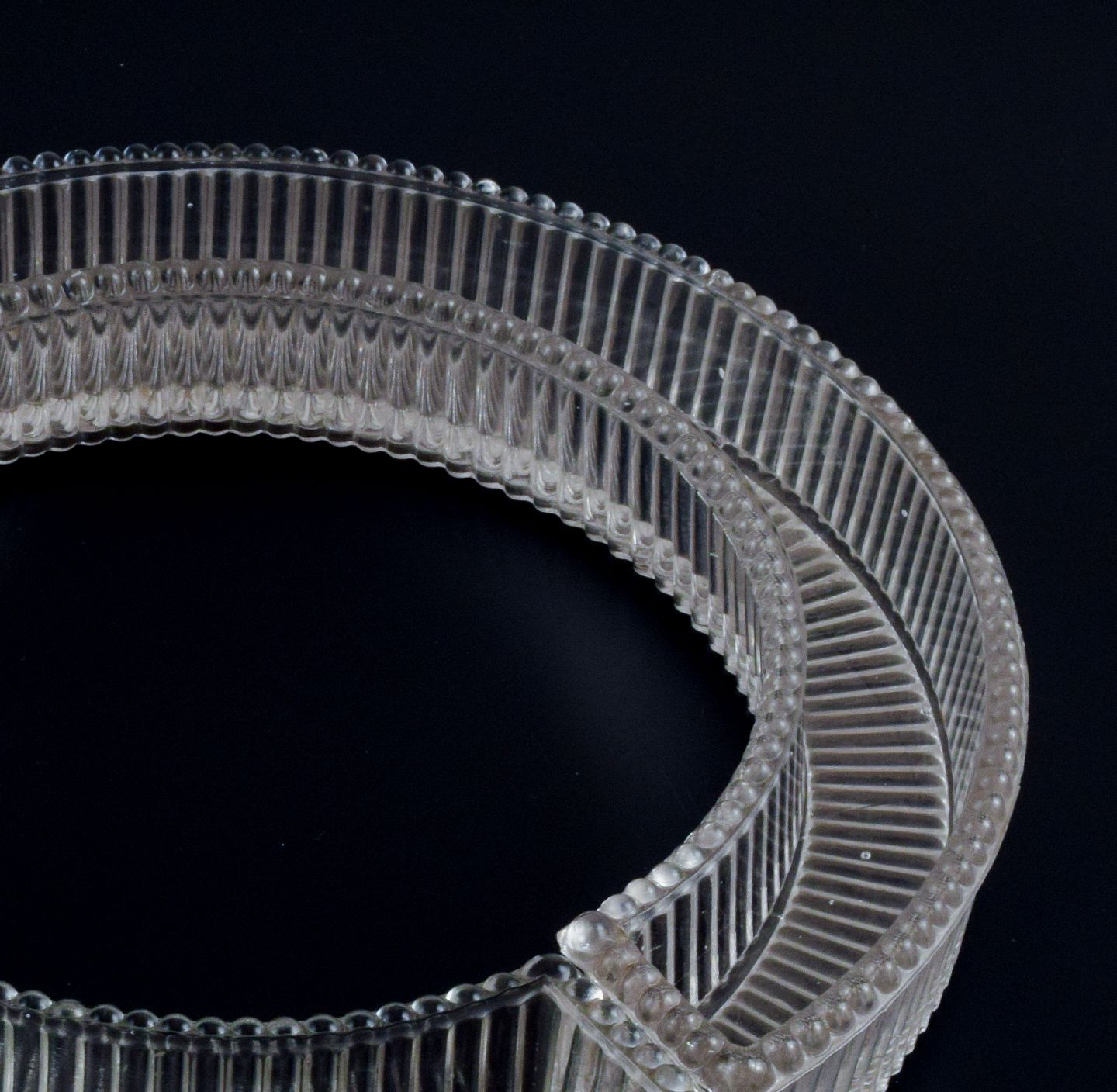 Baccarat, Frankrig, opsats / "Surtout de Table" bestående af tre dele krystalglas i rillet design. Art deco. 1930/40'erne. Diameter total: D 28,7 x H 4,3 cm.